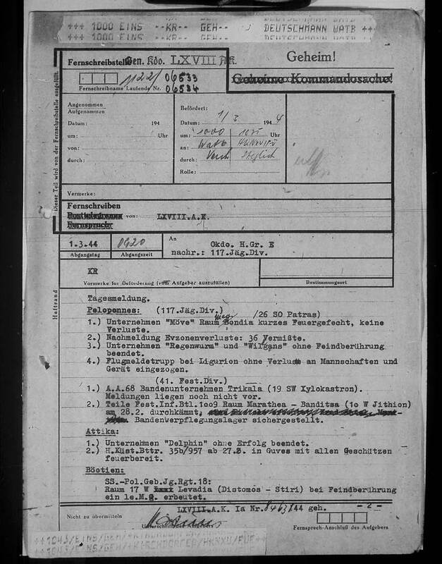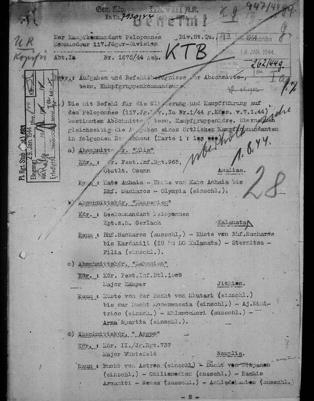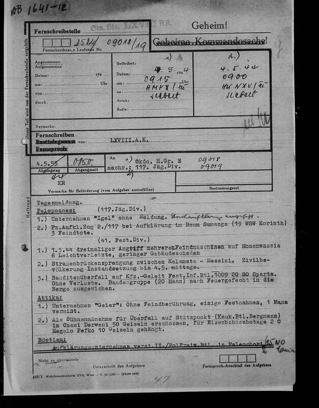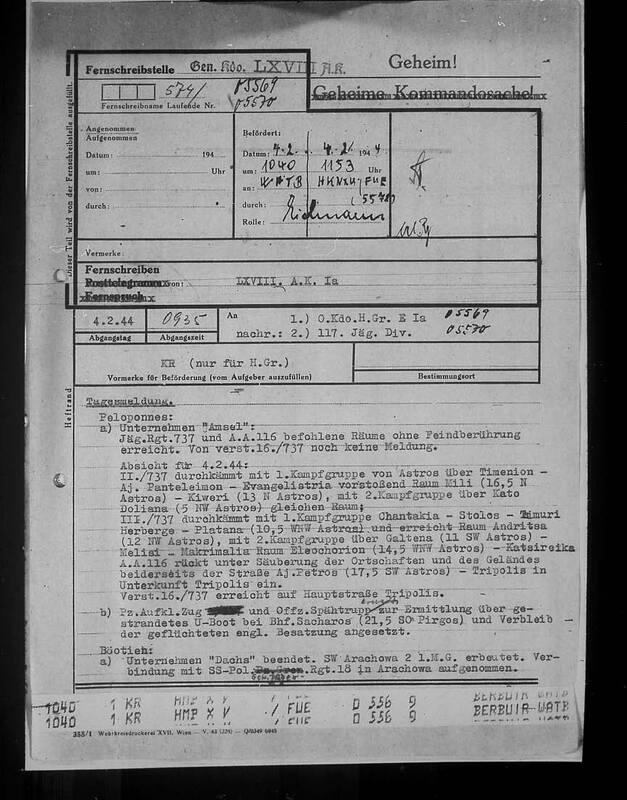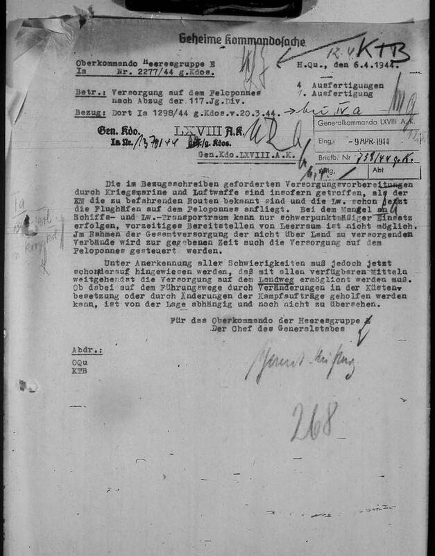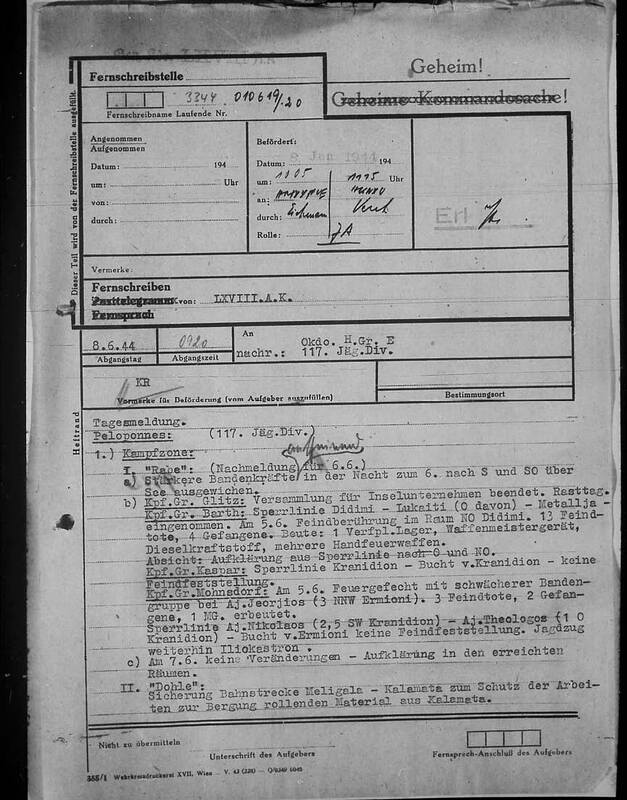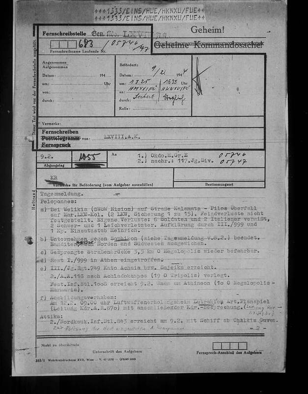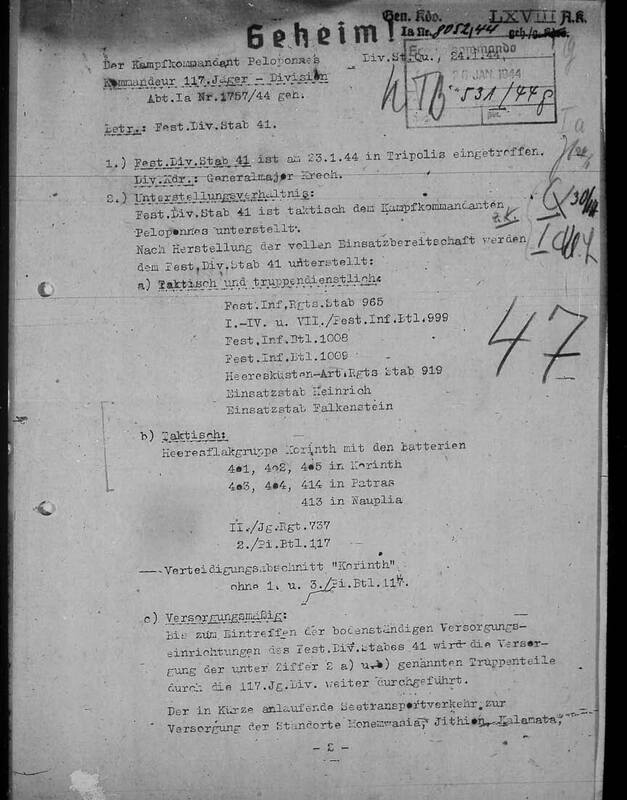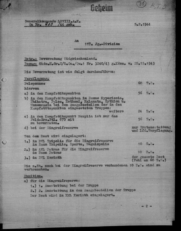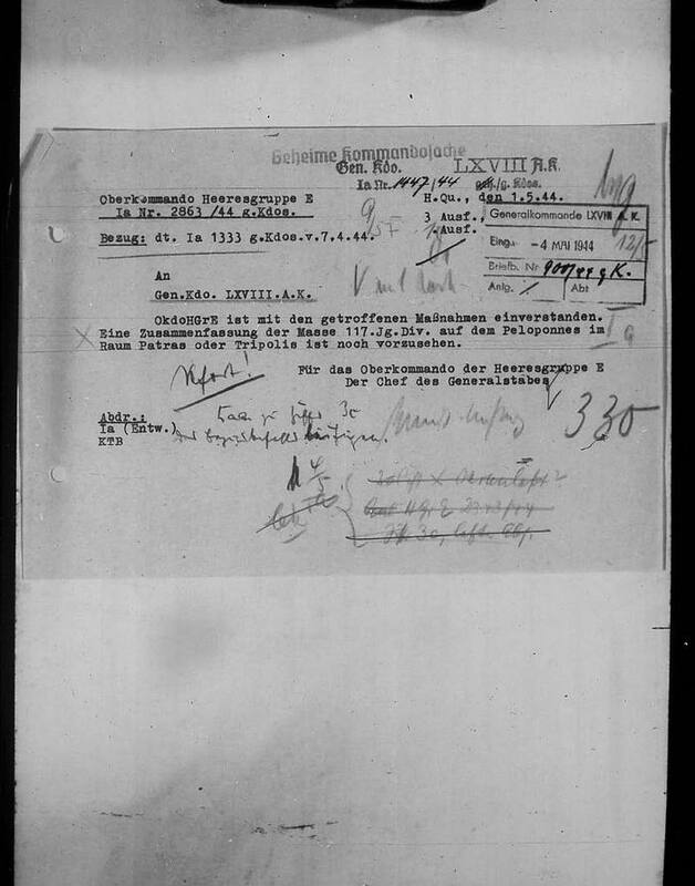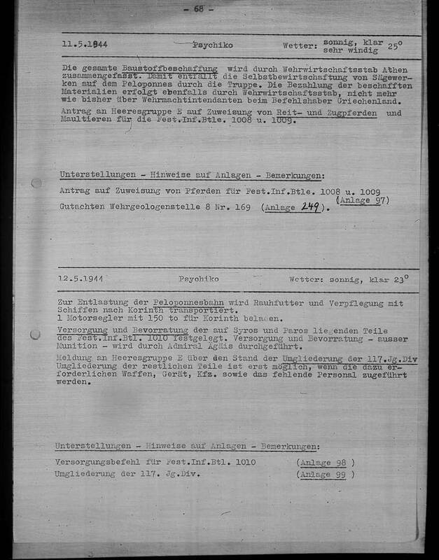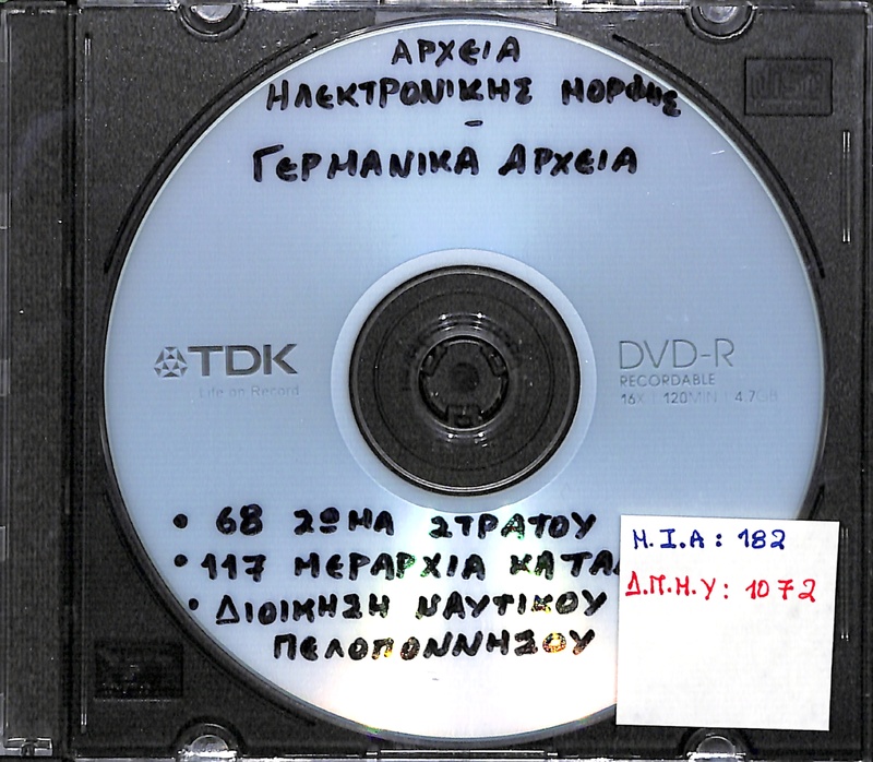 Αρχεία ηλεκτρονικής μορφής που αφορούν τα Γερμανικά Αρχεία του 68ου Σώματος Στρατού και της 117 Μεραρχίας Καταδρομών και της Διοίκησης Ναυτικού Πελοποννήσου.