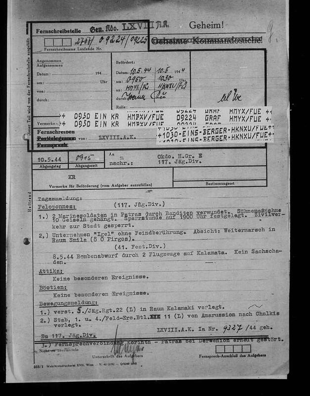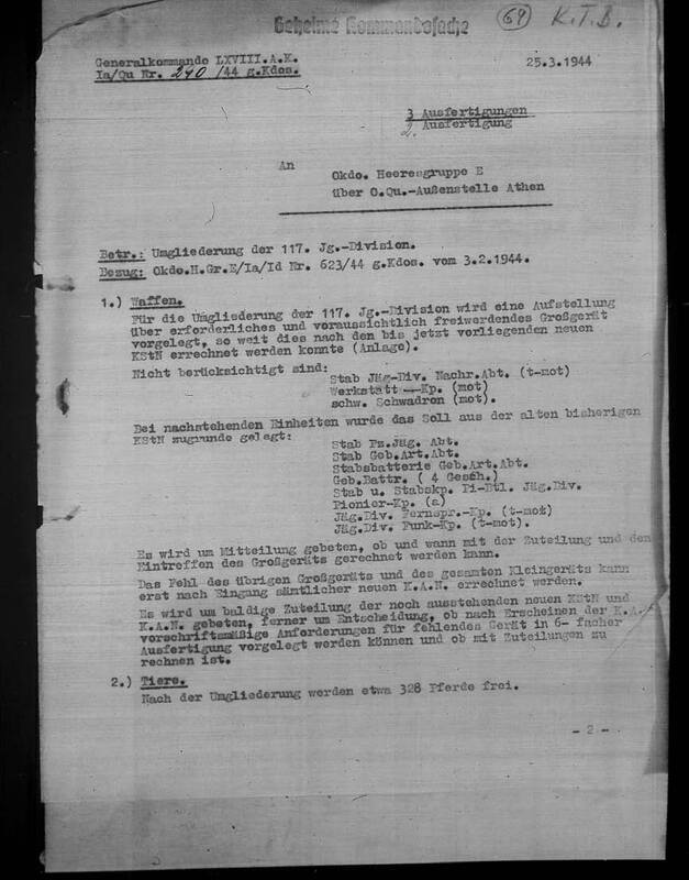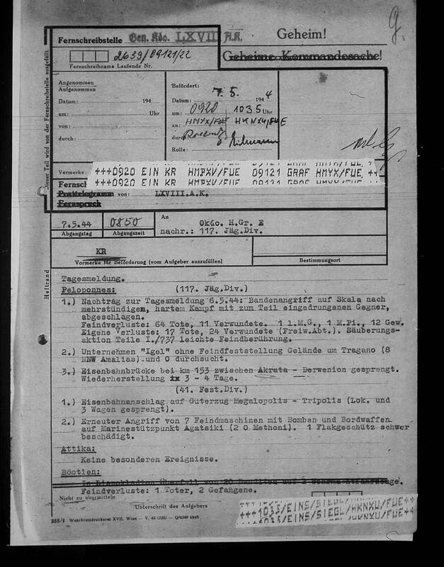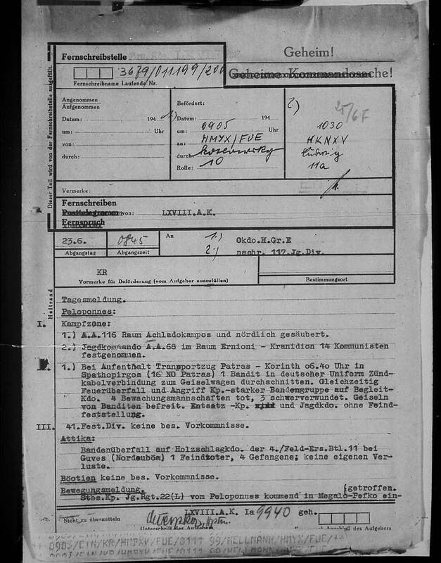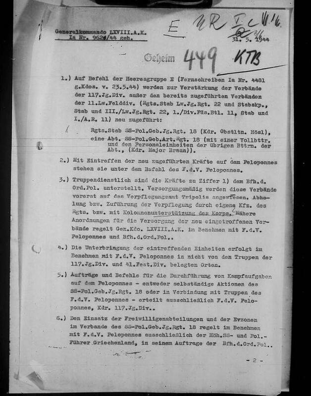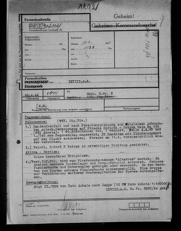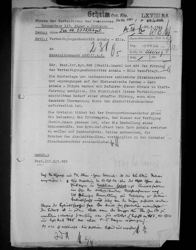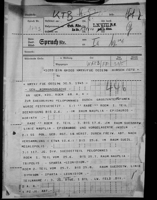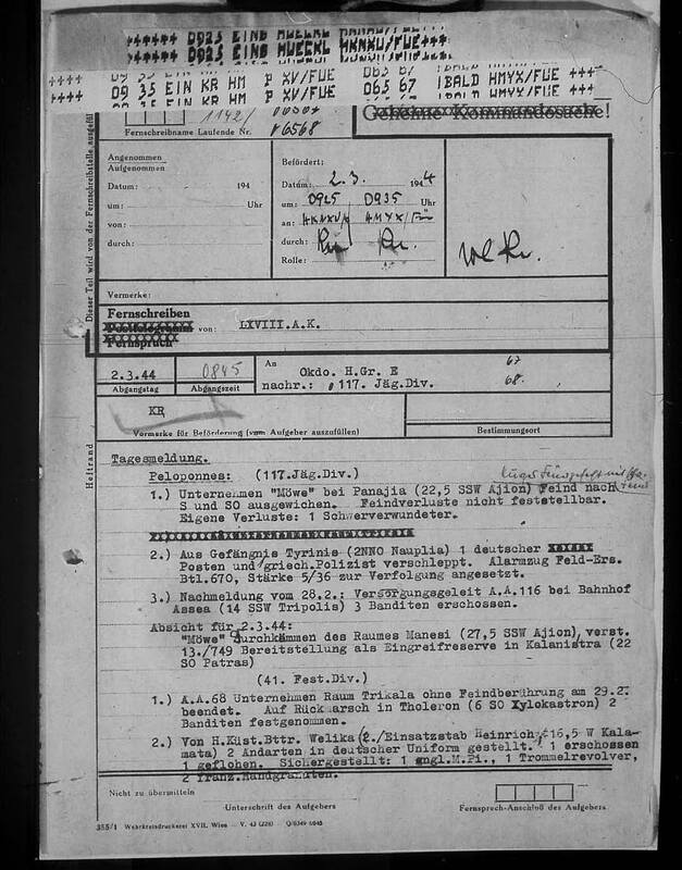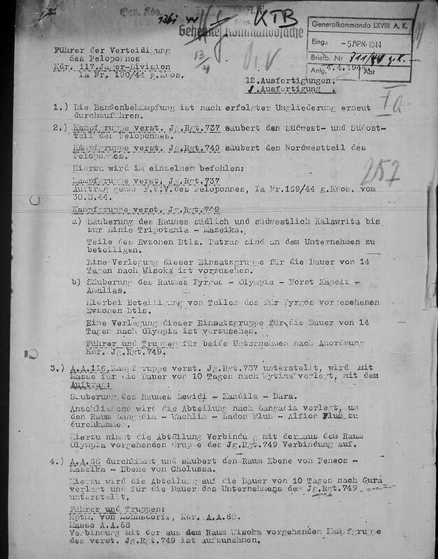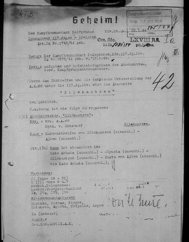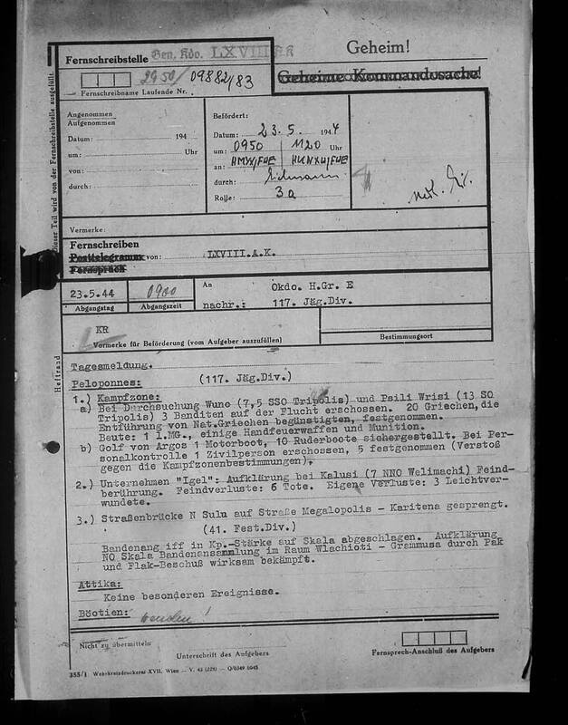 Αρχεία ηλεκτρονικής μορφής που αφορούν τα Γερμανικά Αρχεία του 68ου Σώματος Στρατού και της 117 Μεραρχίας Καταδρομών και της Διοίκησης Ναυτικού Πελοποννήσου.