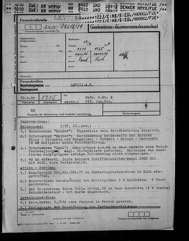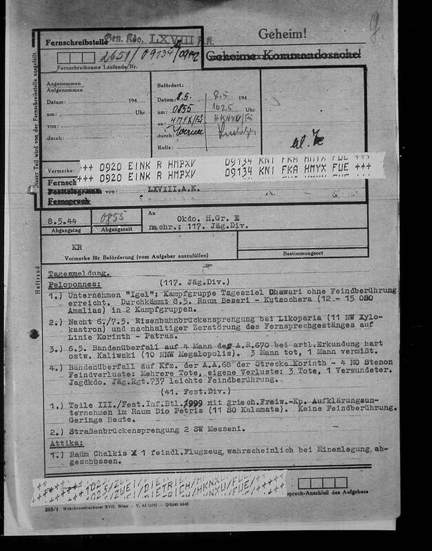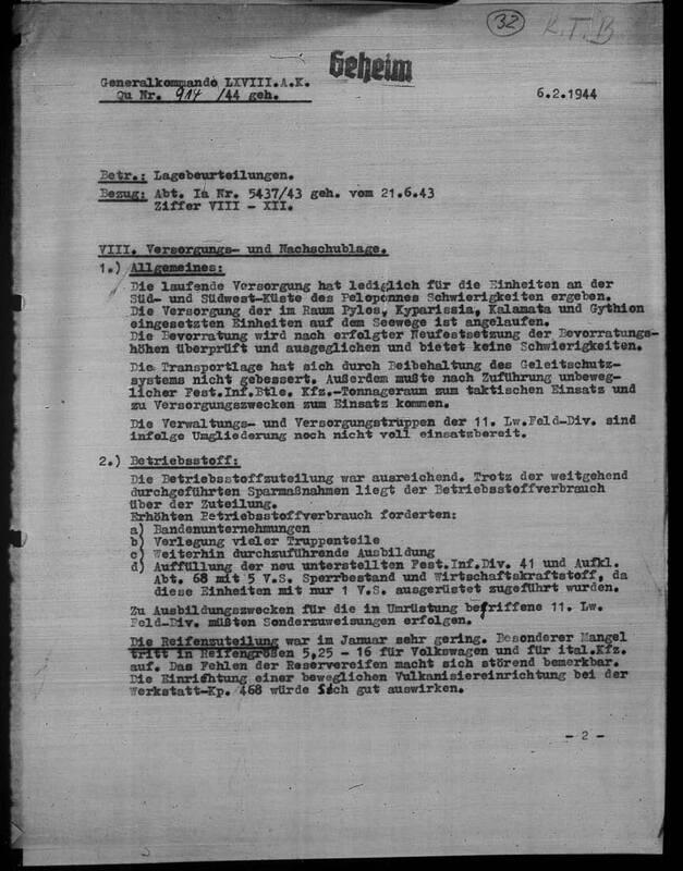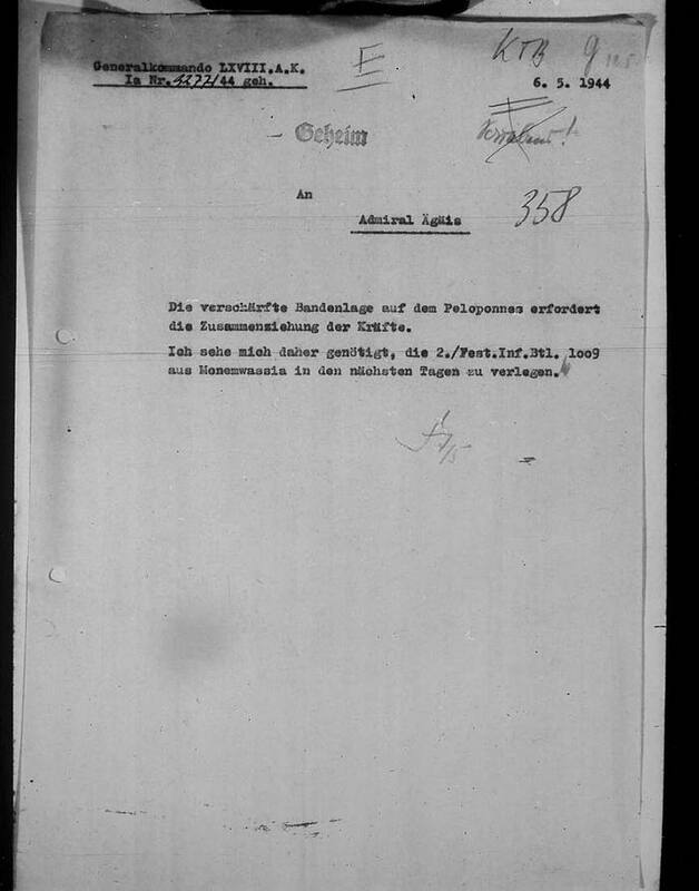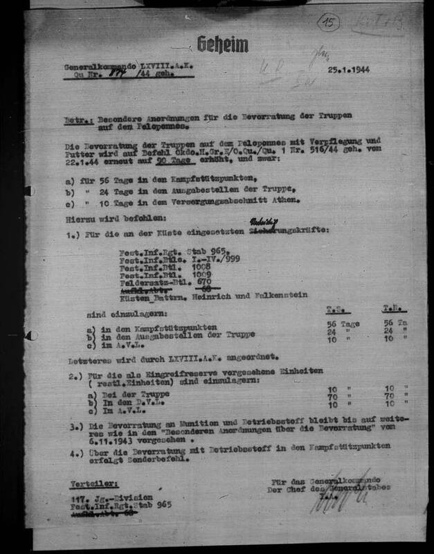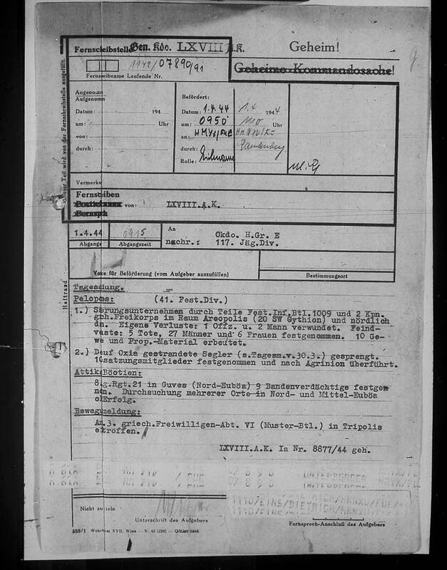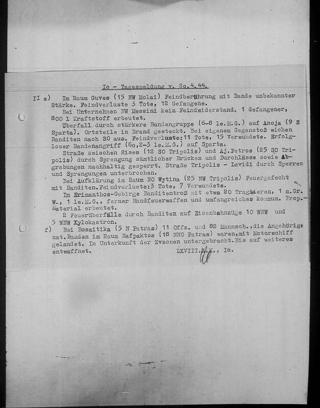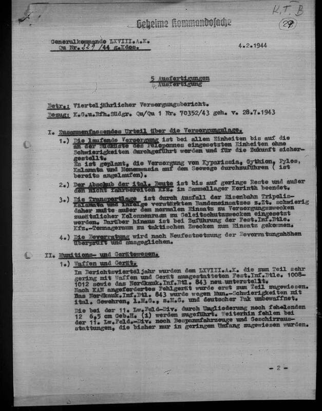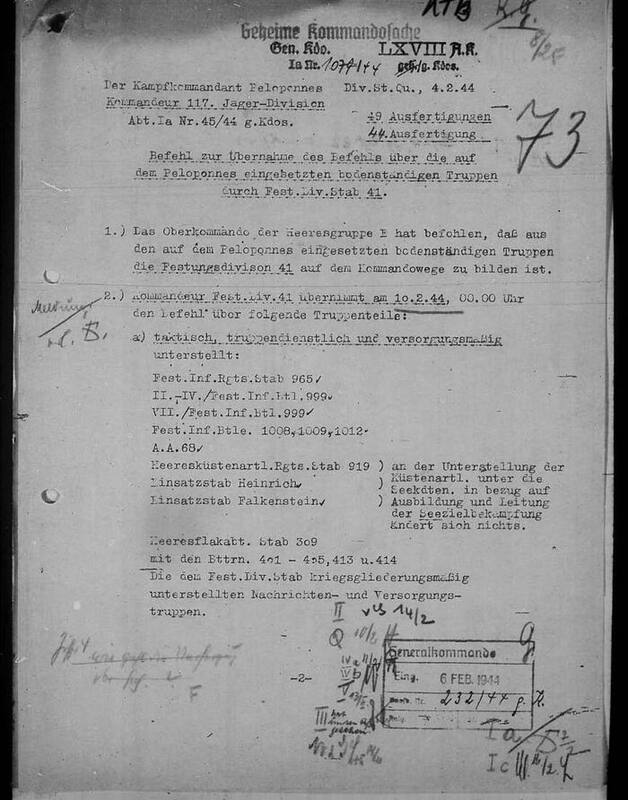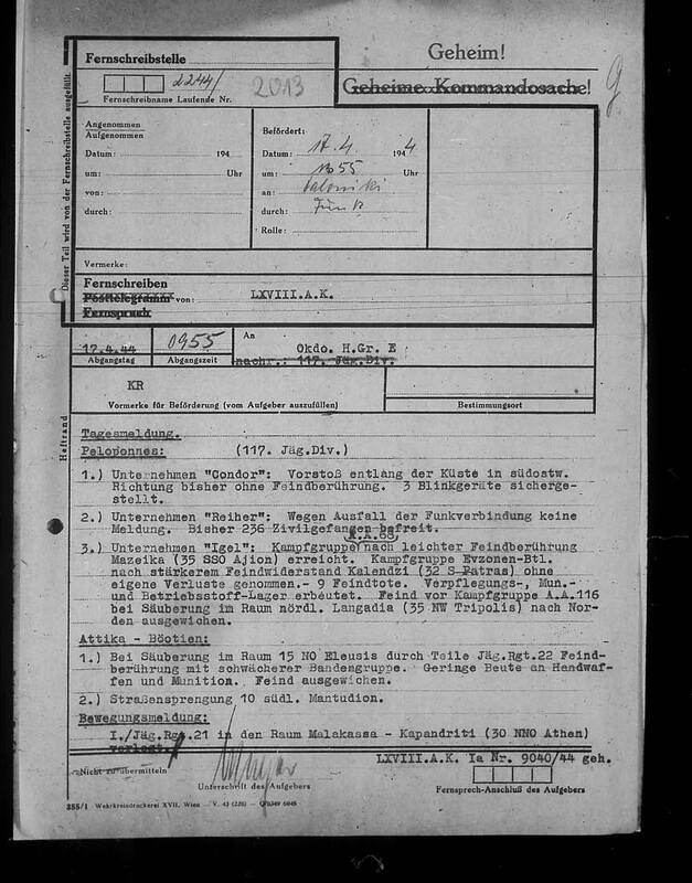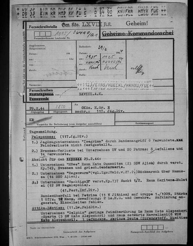 Αρχεία ηλεκτρονικής μορφής που αφορούν τα Γερμανικά Αρχεία του 68ου Σώματος Στρατού και της 117 Μεραρχίας Καταδρομών και της Διοίκησης Ναυτικού Πελοποννήσου.