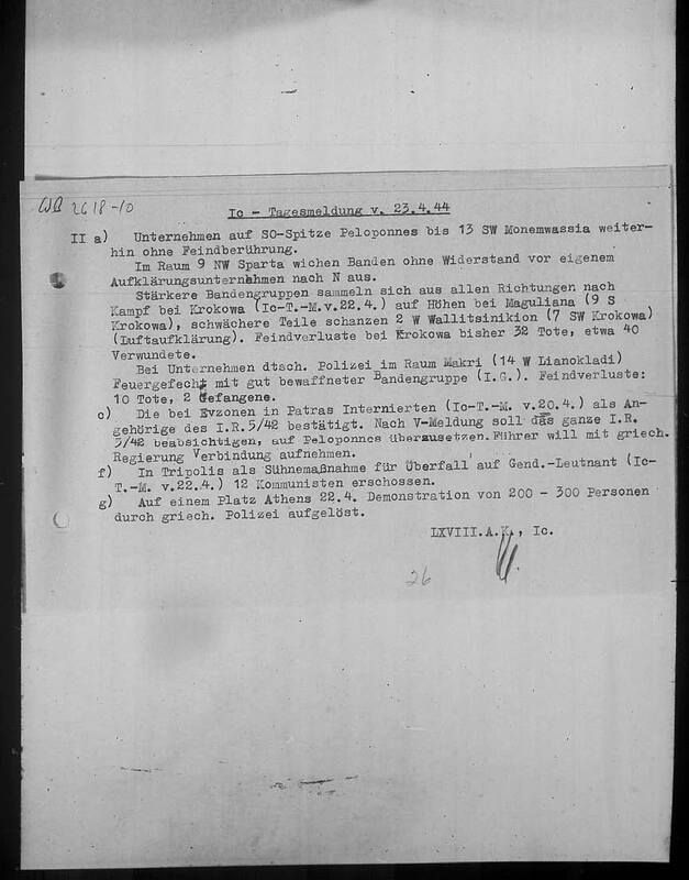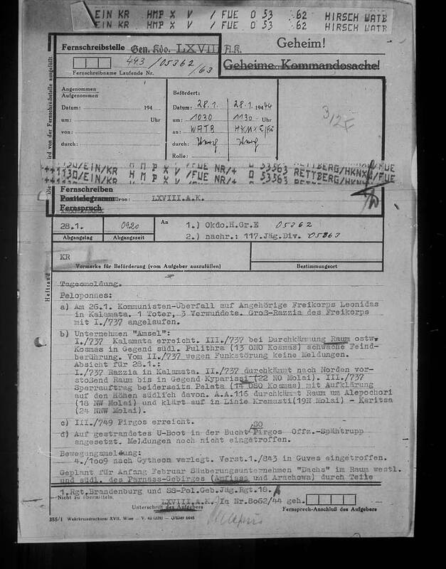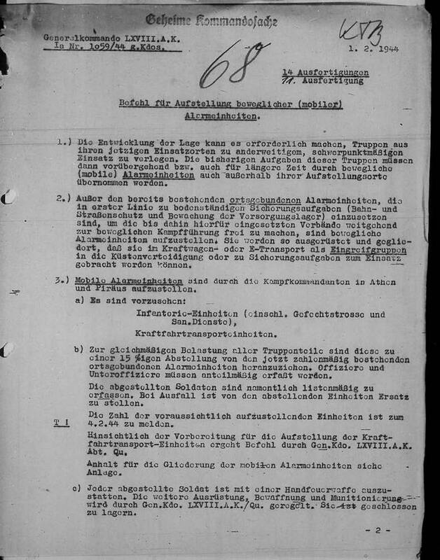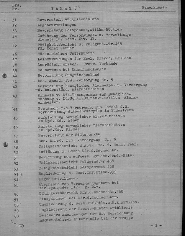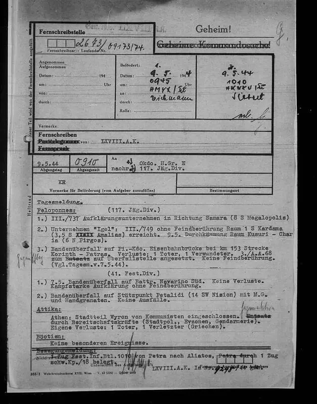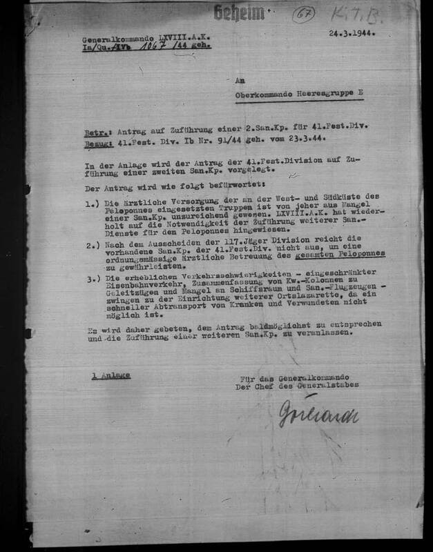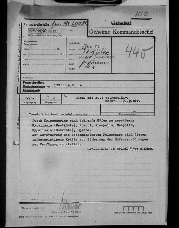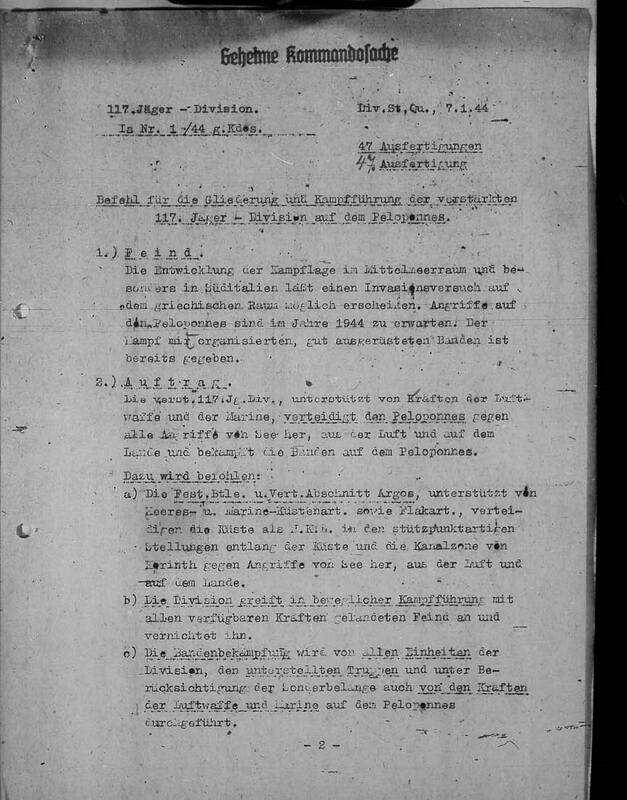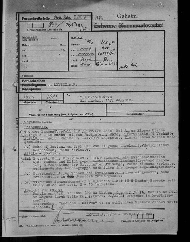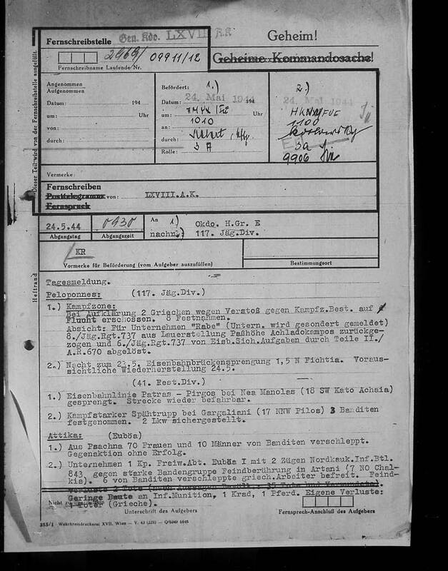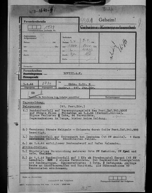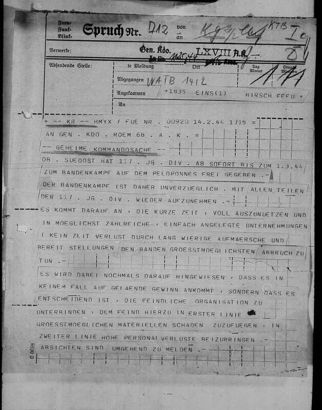 Αρχεία ηλεκτρονικής μορφής που αφορούν τα Γερμανικά Αρχεία του 68ου Σώματος Στρατού και της 117 Μεραρχίας Καταδρομών και της Διοίκησης Ναυτικού Πελοποννήσου.