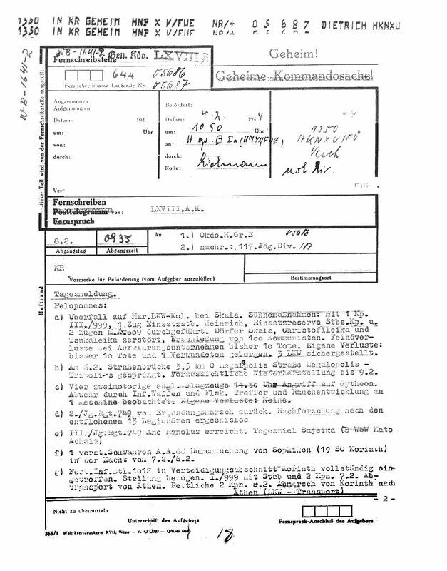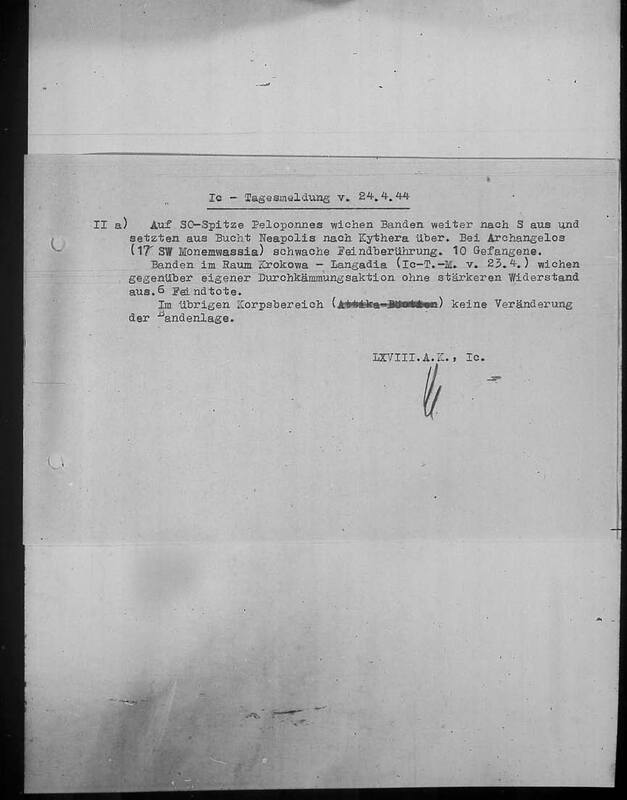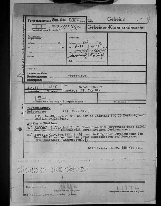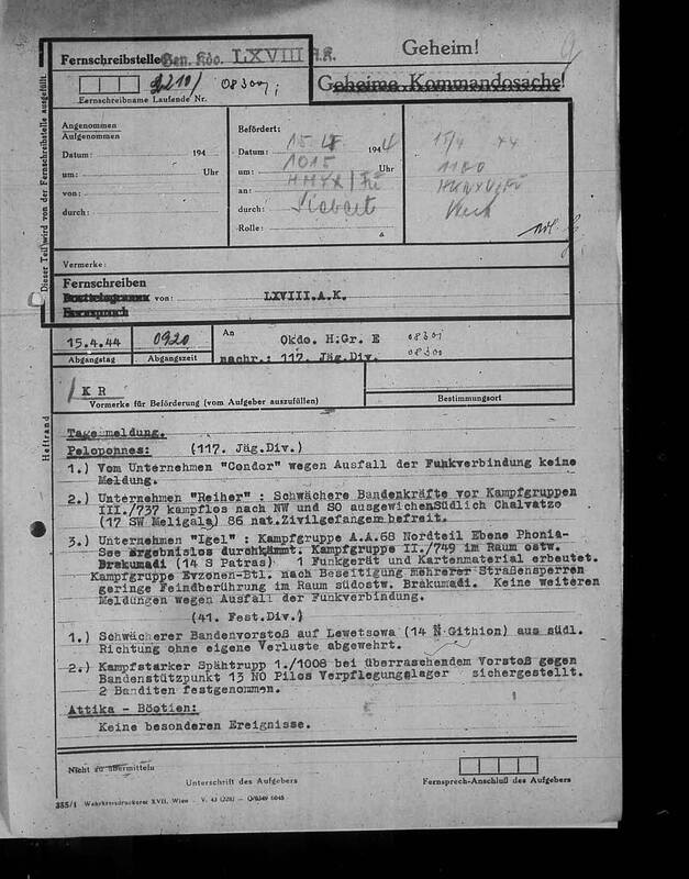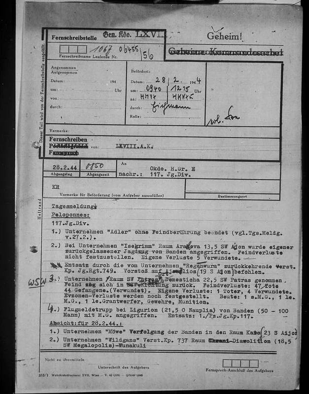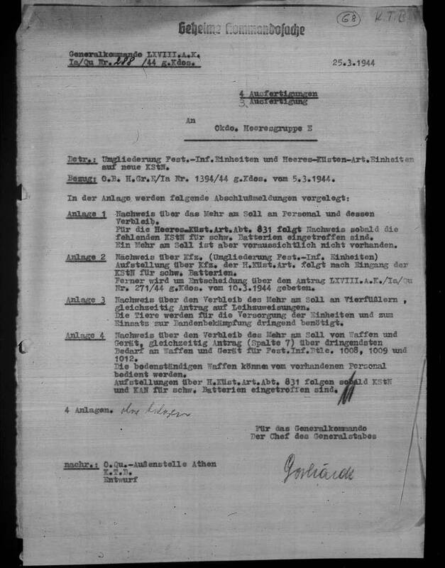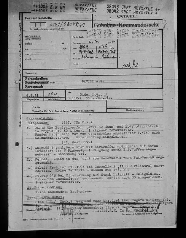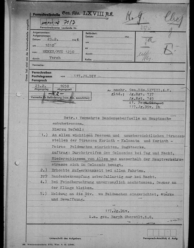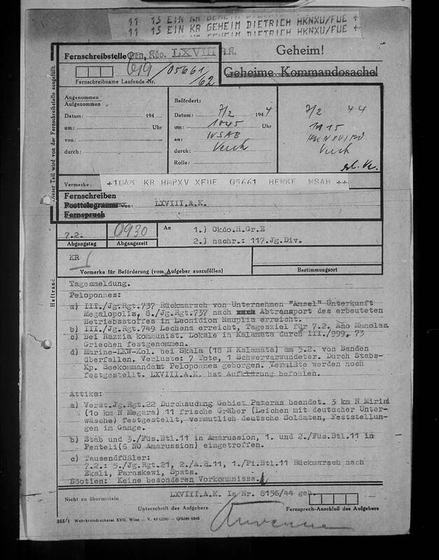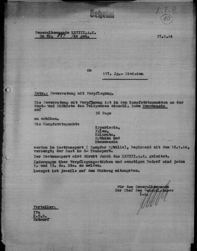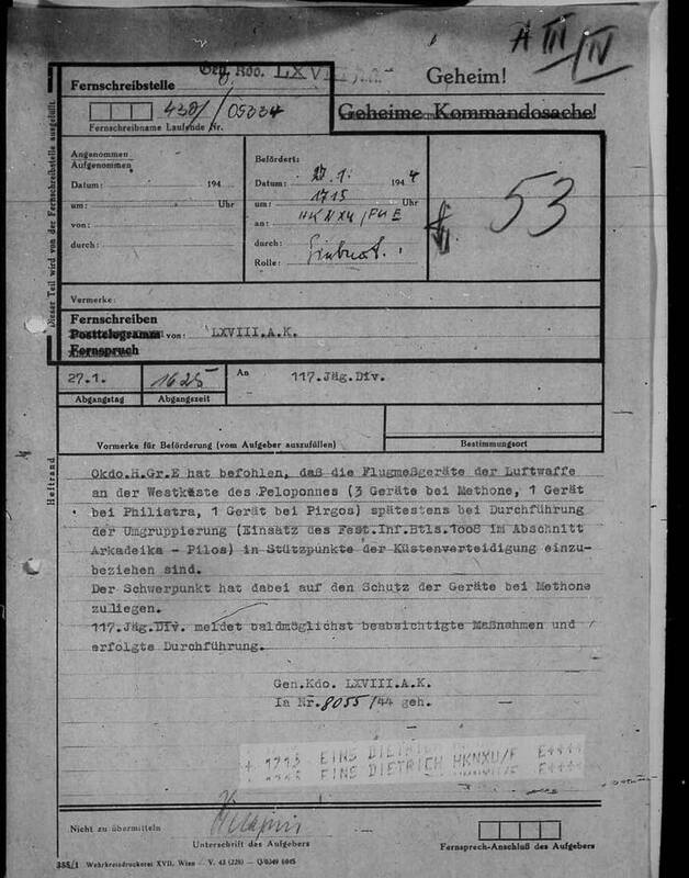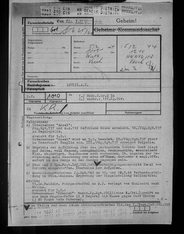Αρχεία ηλεκτρονικής μορφής που αφορούν τα Γερμανικά Αρχεία του 68ου Σώματος Στρατού και της 117 Μεραρχίας Καταδρομών και της Διοίκησης Ναυτικού Πελοποννήσου.