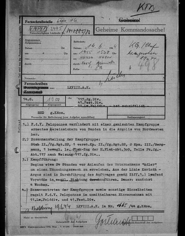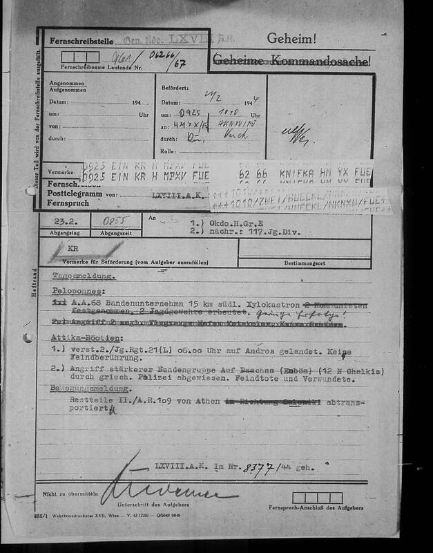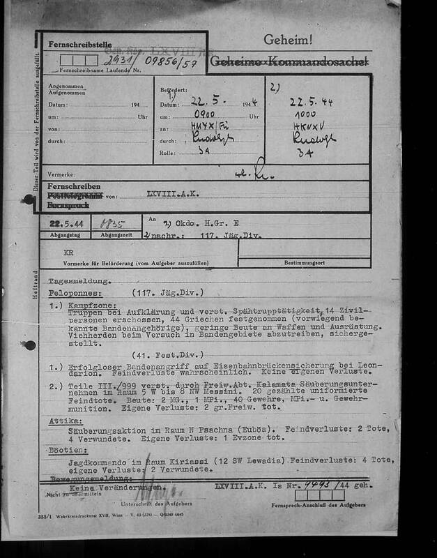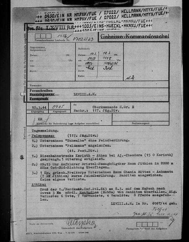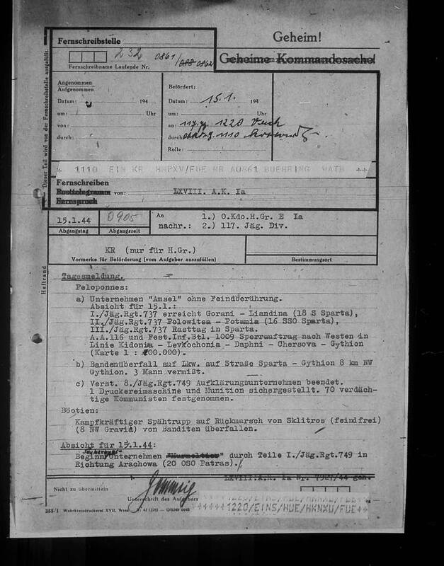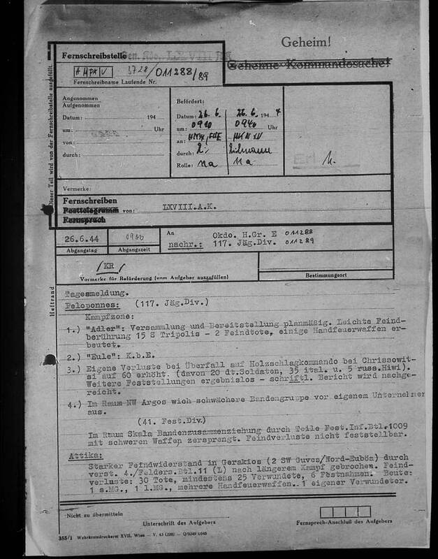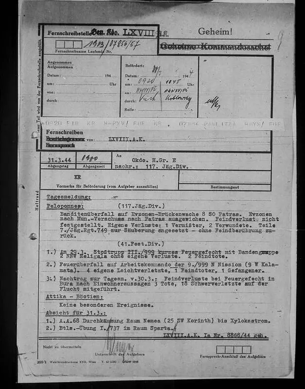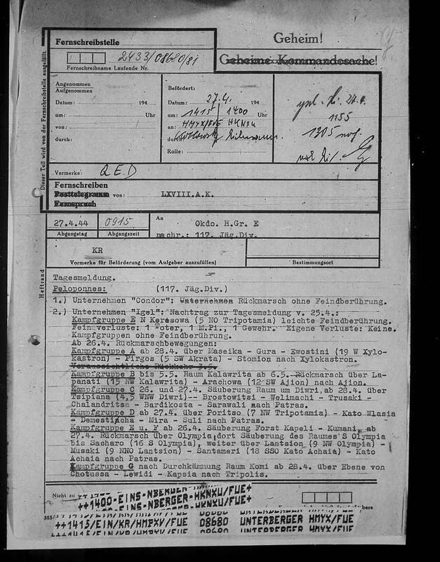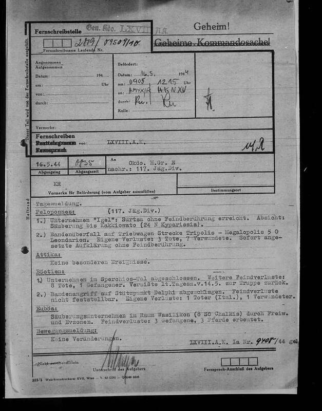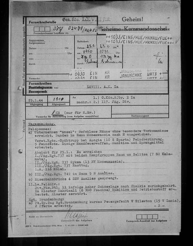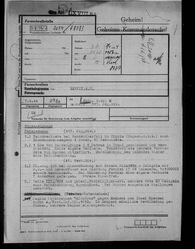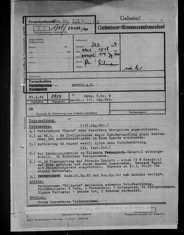 Αρχεία ηλεκτρονικής μορφής που αφορούν τα Γερμανικά Αρχεία του 68ου Σώματος Στρατού και της 117 Μεραρχίας Καταδρομών και της Διοίκησης Ναυτικού Πελοποννήσου.