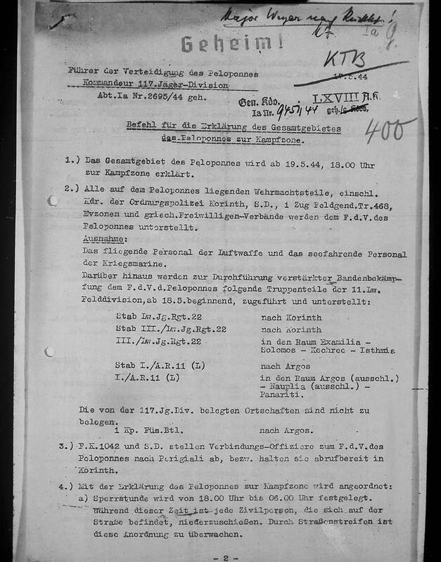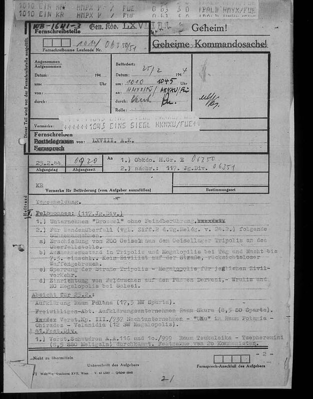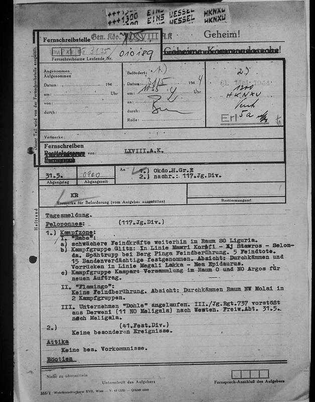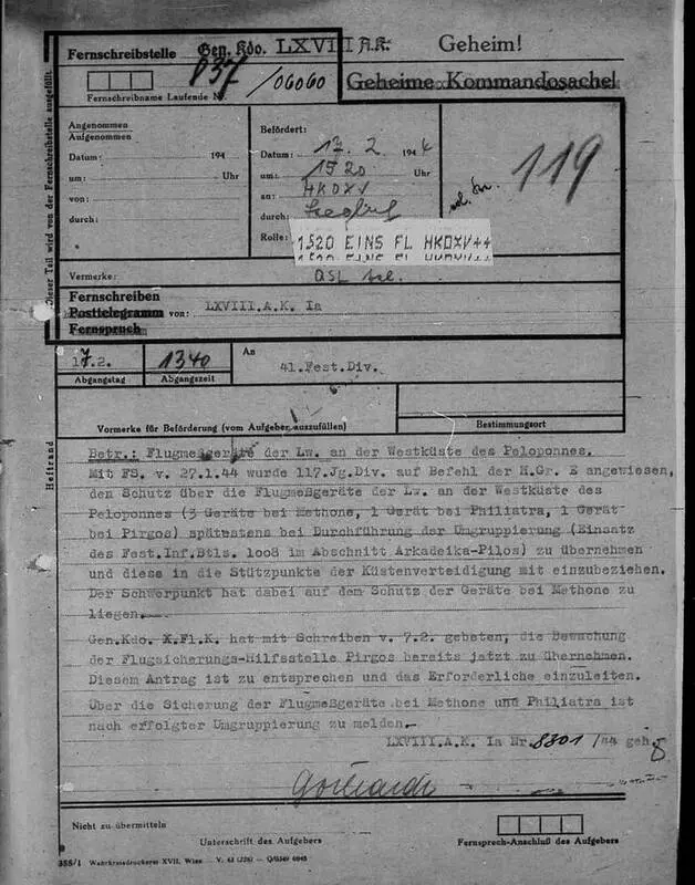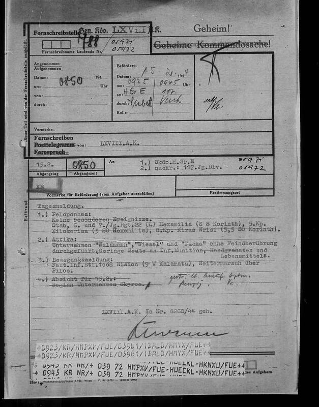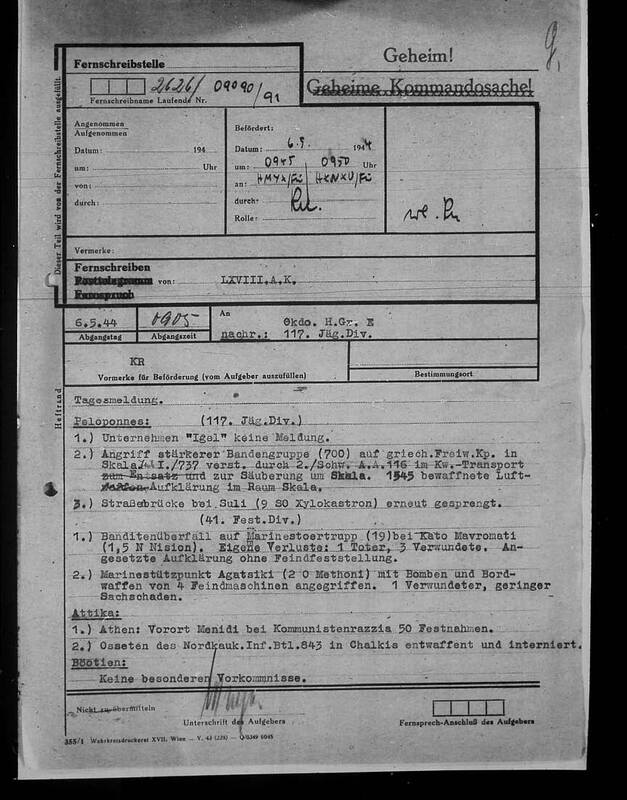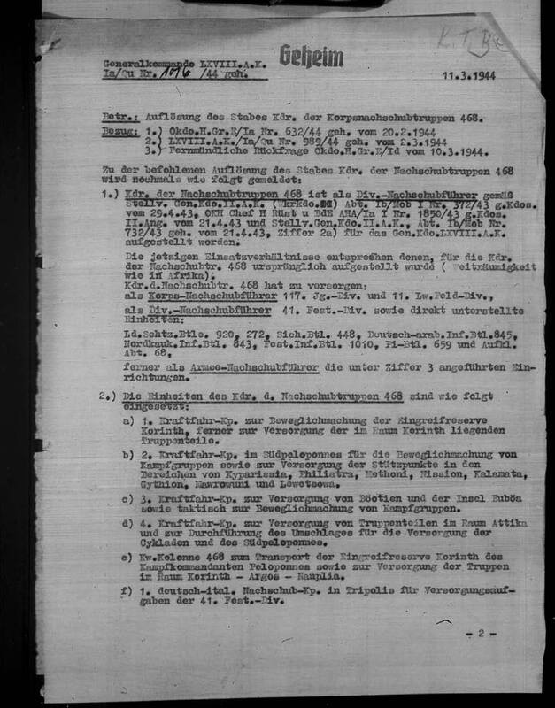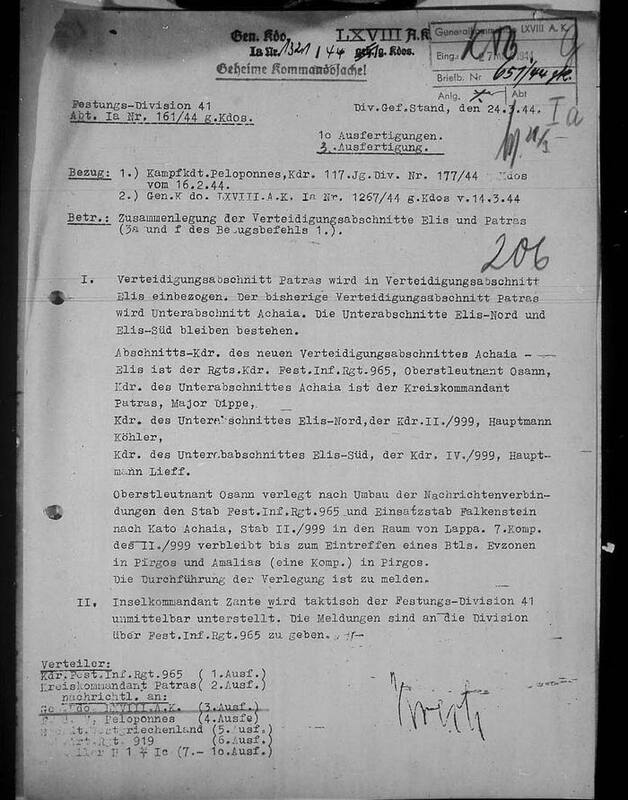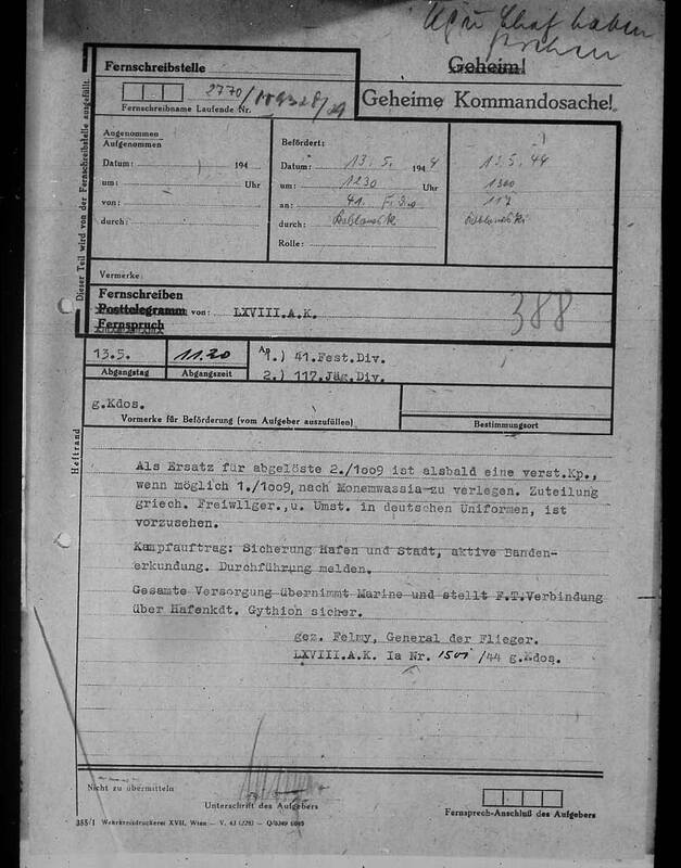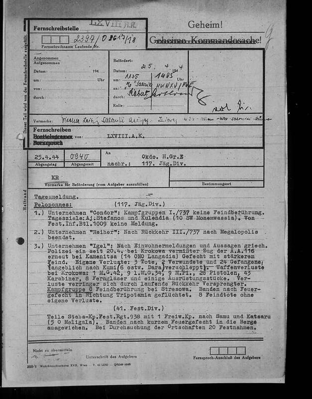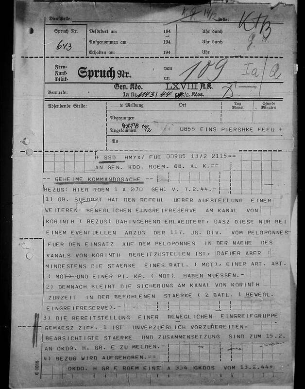 Αρχεία ηλεκτρονικής μορφής που αφορούν τα Γερμανικά Αρχεία του 68ου Σώματος Στρατού και της 117 Μεραρχίας Καταδρομών και της Διοίκησης Ναυτικού Πελοποννήσου.