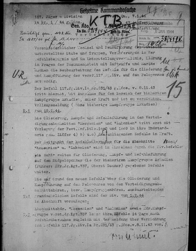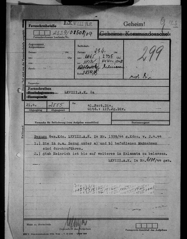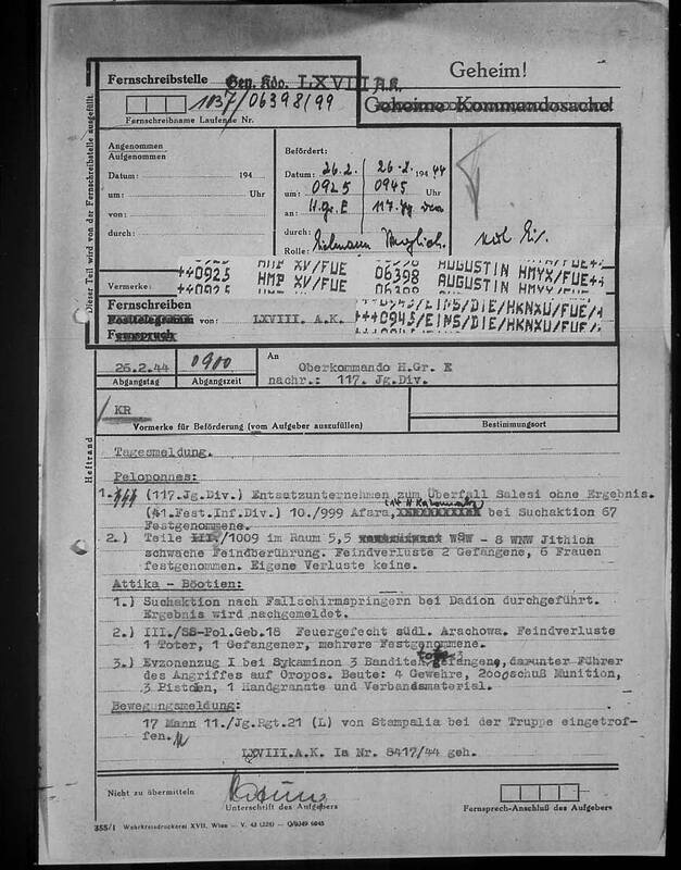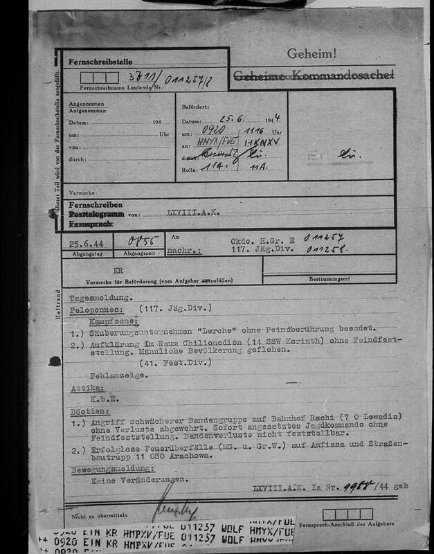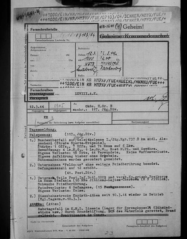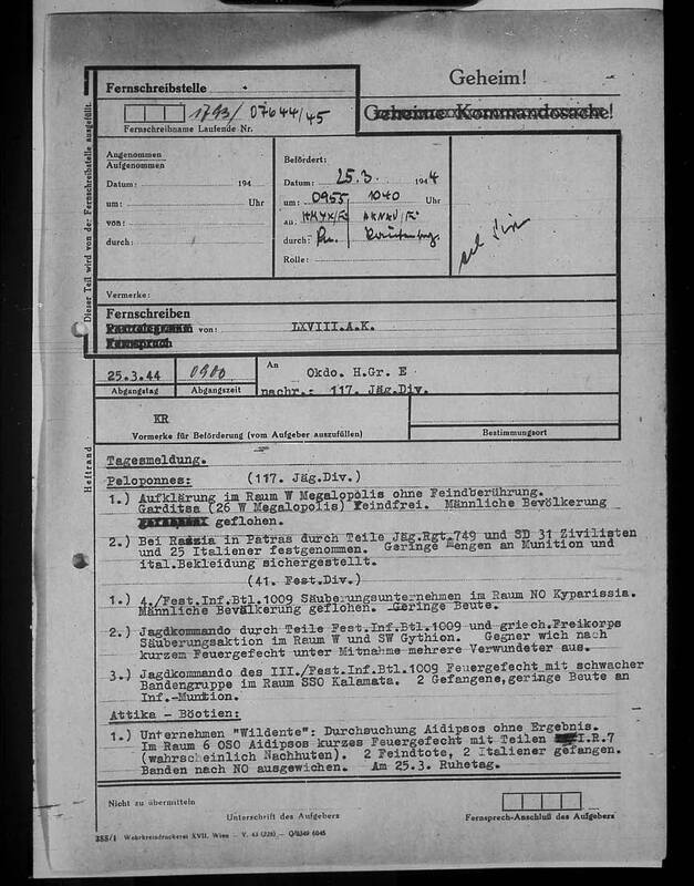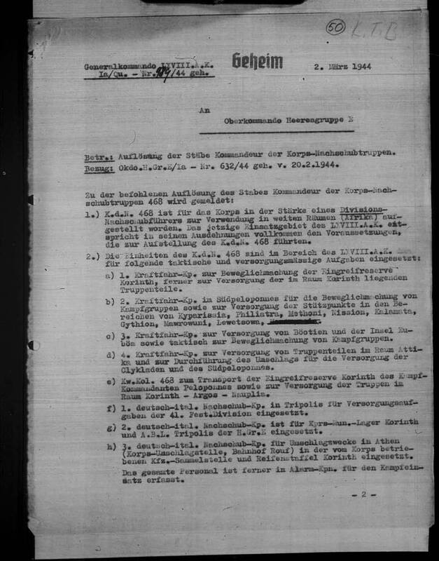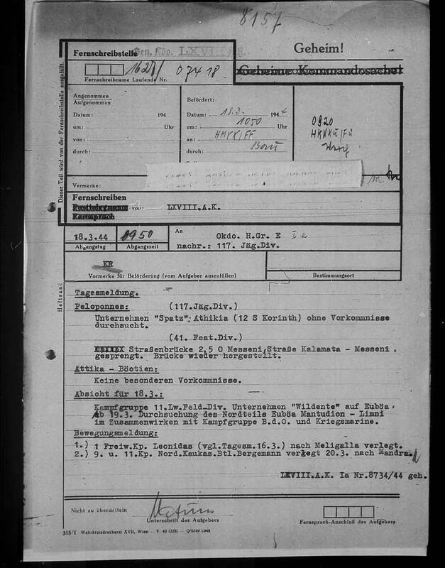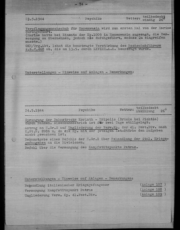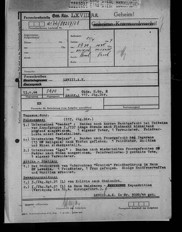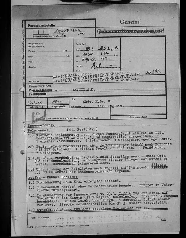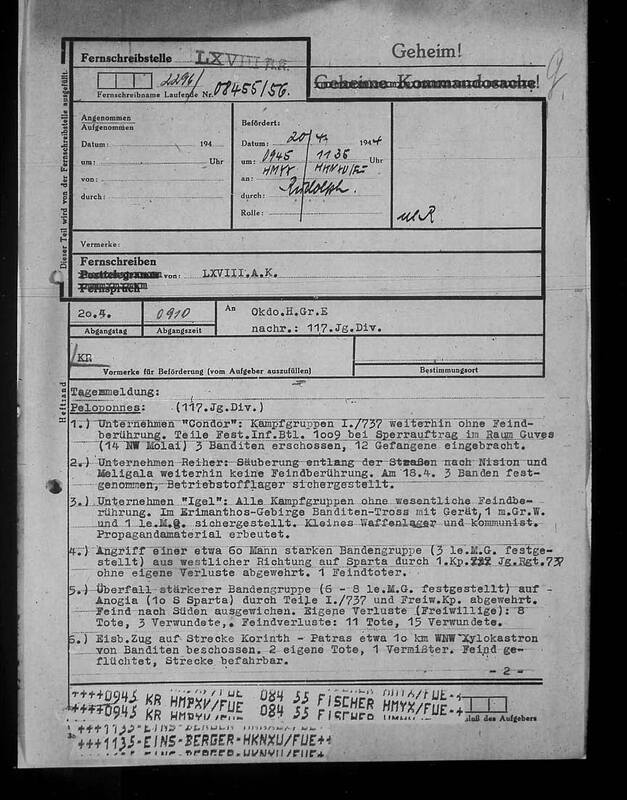 Αρχεία ηλεκτρονικής μορφής που αφορούν τα Γερμανικά Αρχεία του 68ου Σώματος Στρατού και της 117 Μεραρχίας Καταδρομών και της Διοίκησης Ναυτικού Πελοποννήσου.