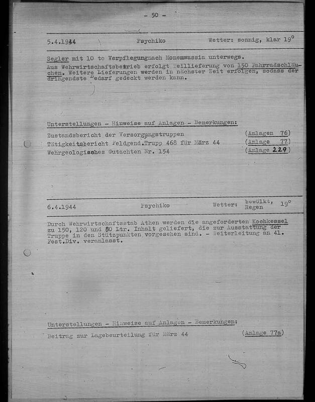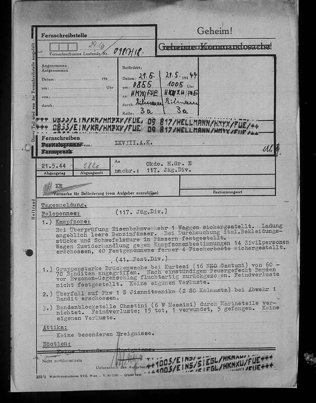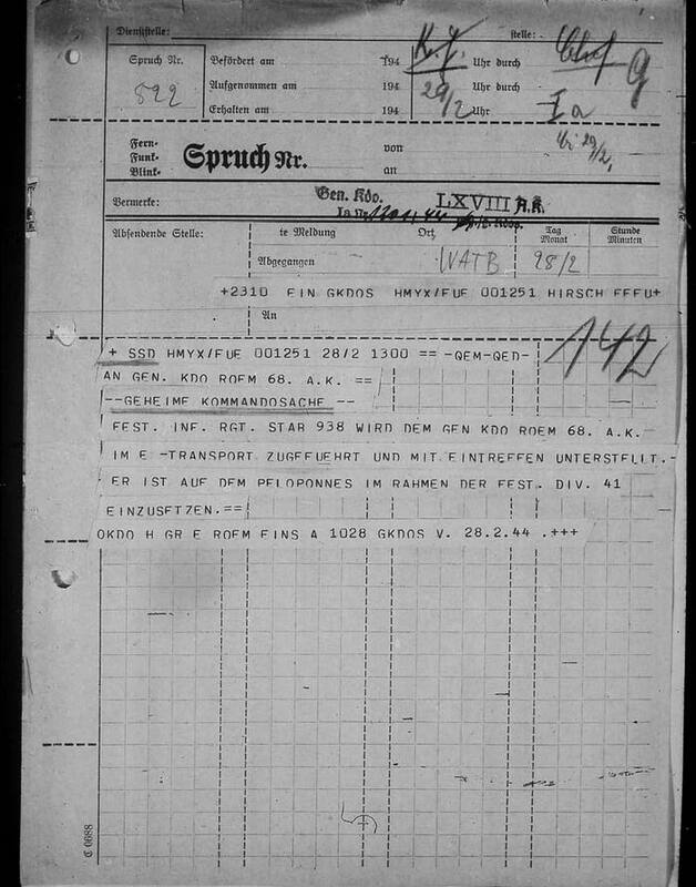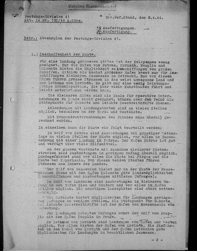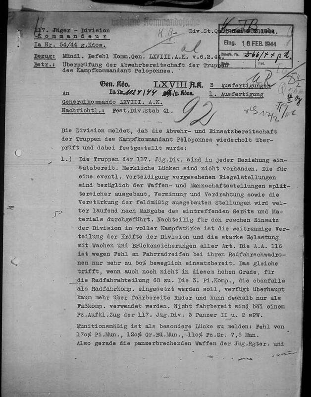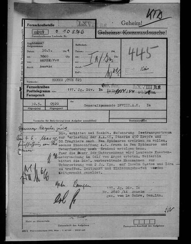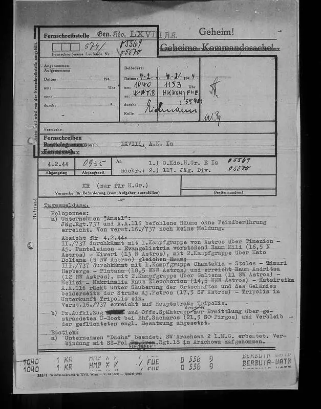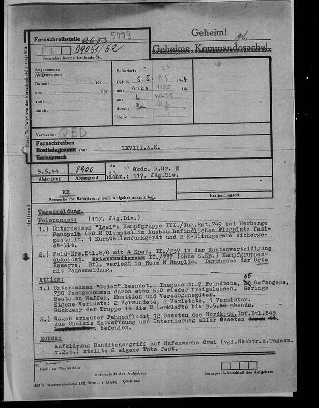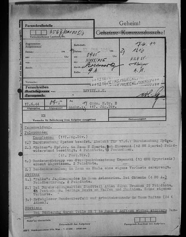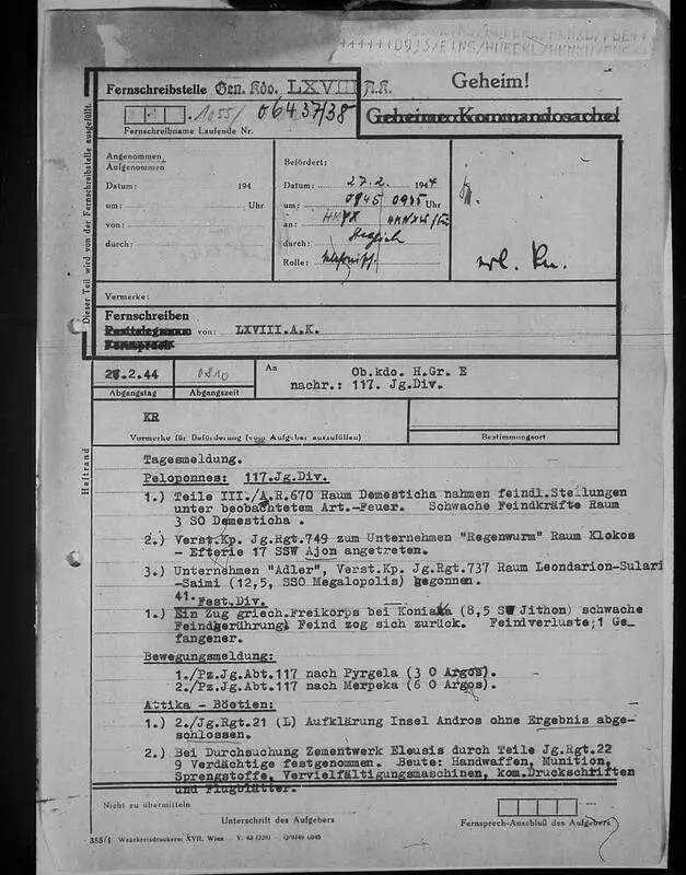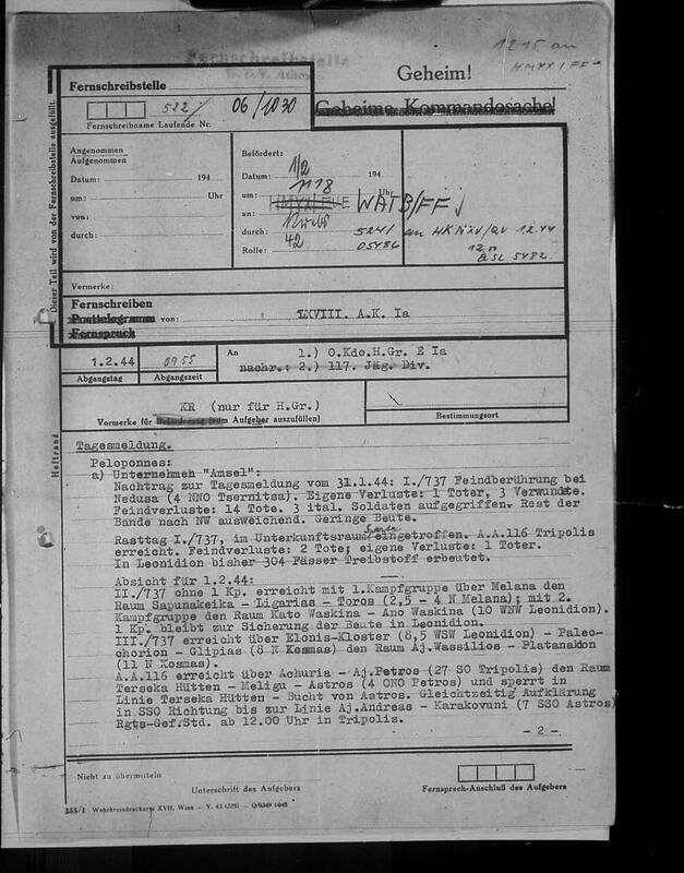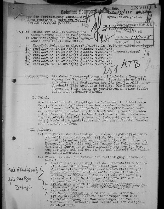 Αρχεία ηλεκτρονικής μορφής που αφορούν τα Γερμανικά Αρχεία του 68ου Σώματος Στρατού και της 117 Μεραρχίας Καταδρομών και της Διοίκησης Ναυτικού Πελοποννήσου.