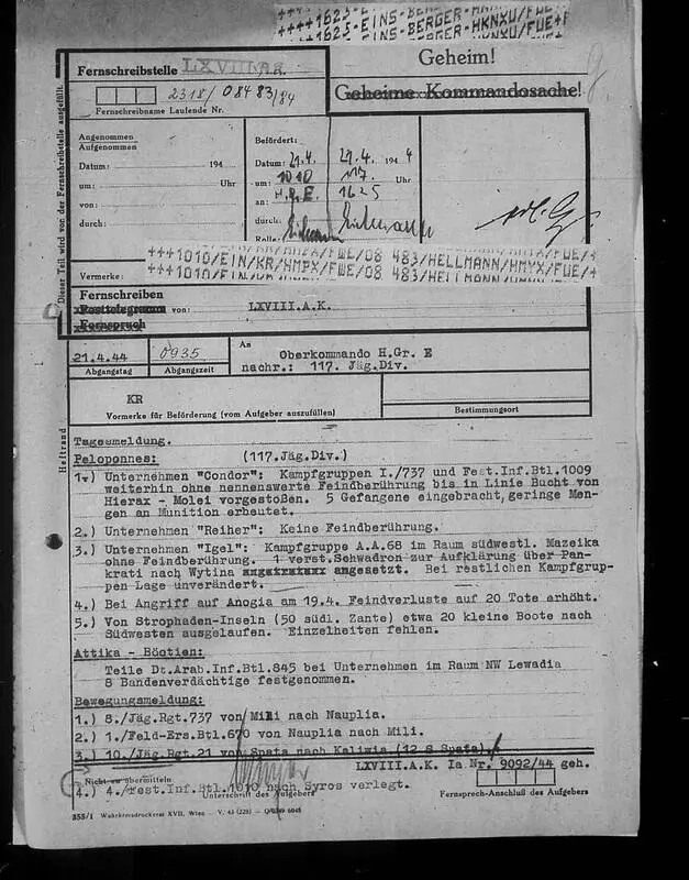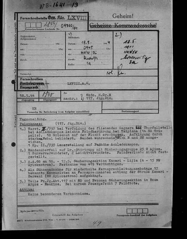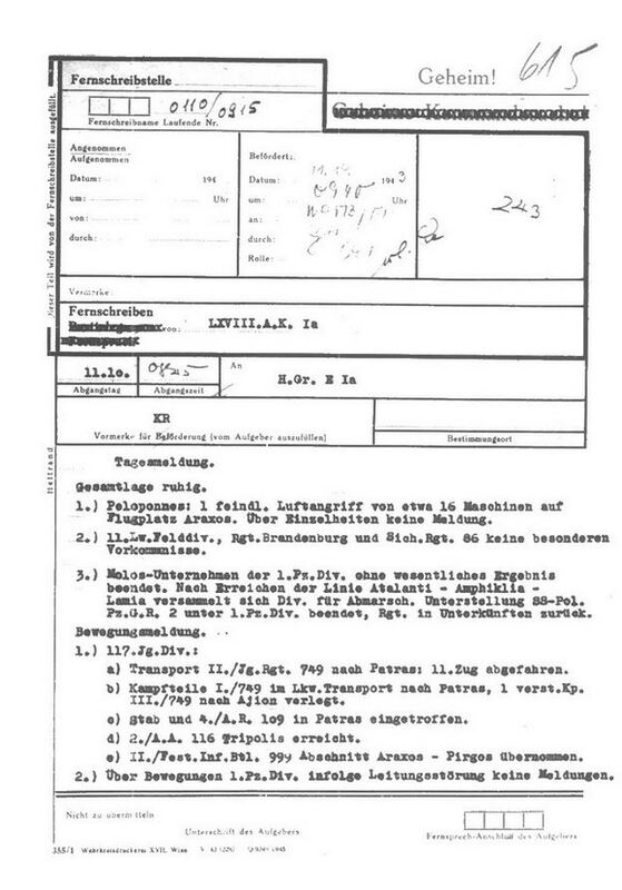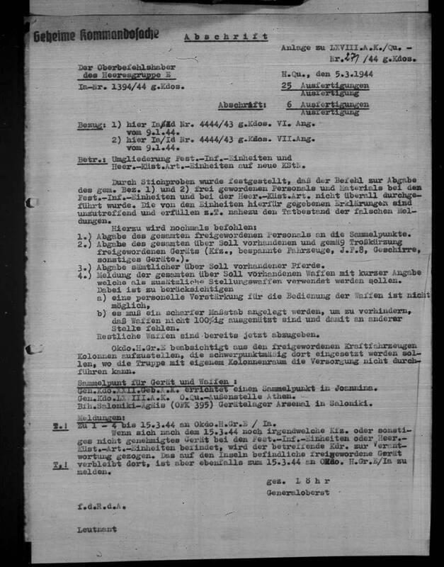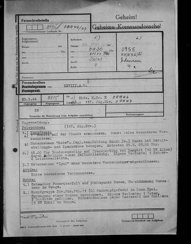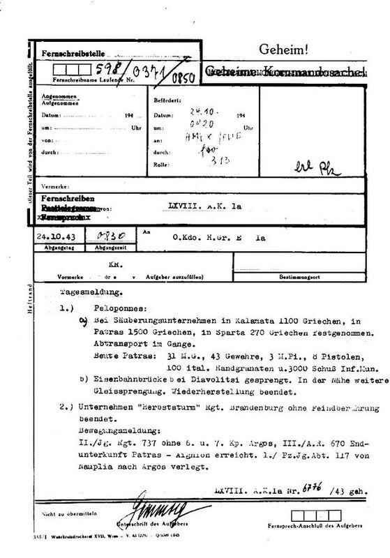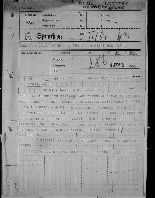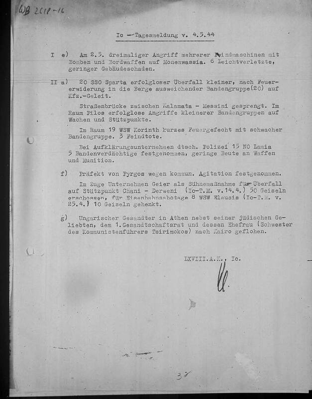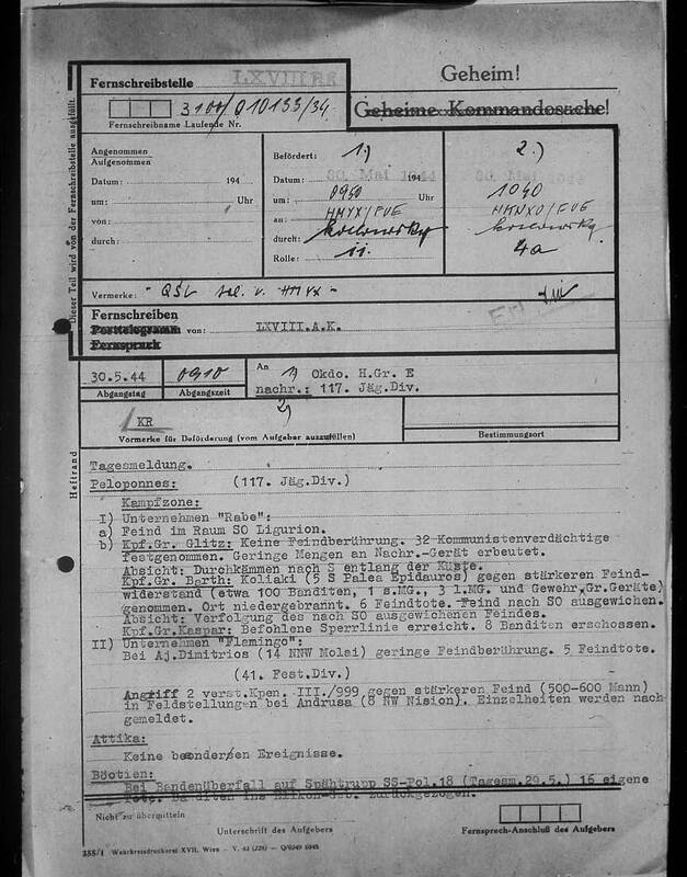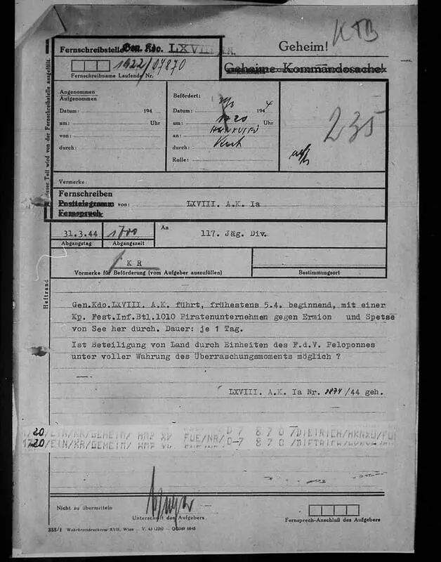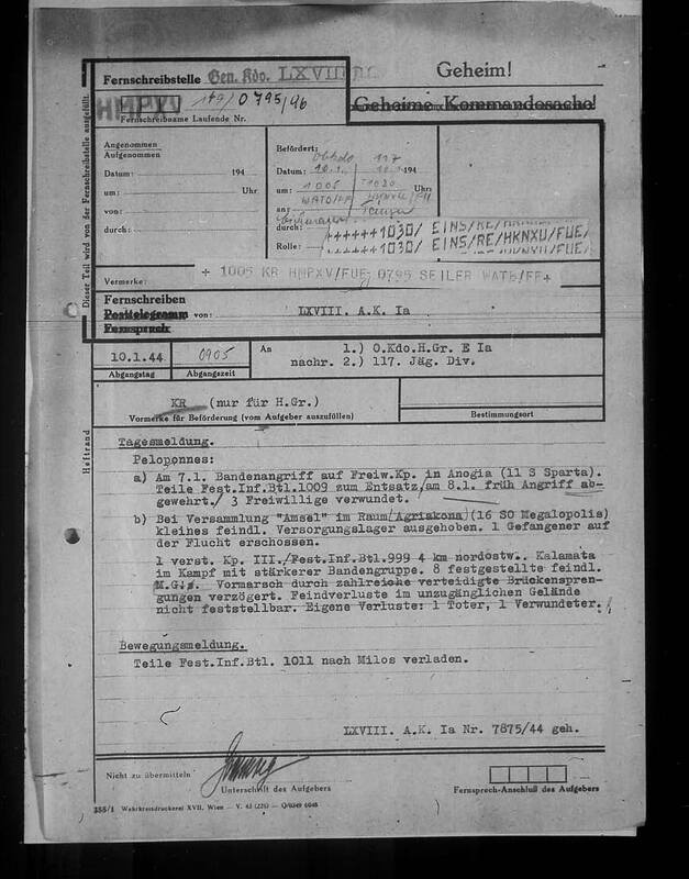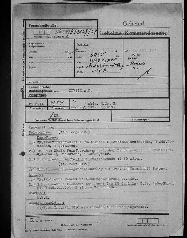 Αρχεία ηλεκτρονικής μορφής που αφορούν τα Γερμανικά Αρχεία του 68ου Σώματος Στρατού και της 117 Μεραρχίας Καταδρομών και της Διοίκησης Ναυτικού Πελοποννήσου.
