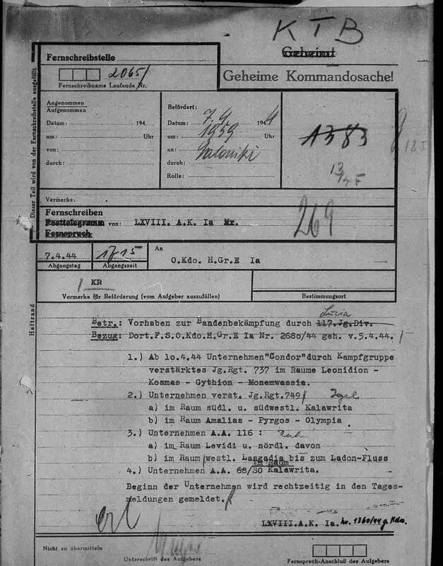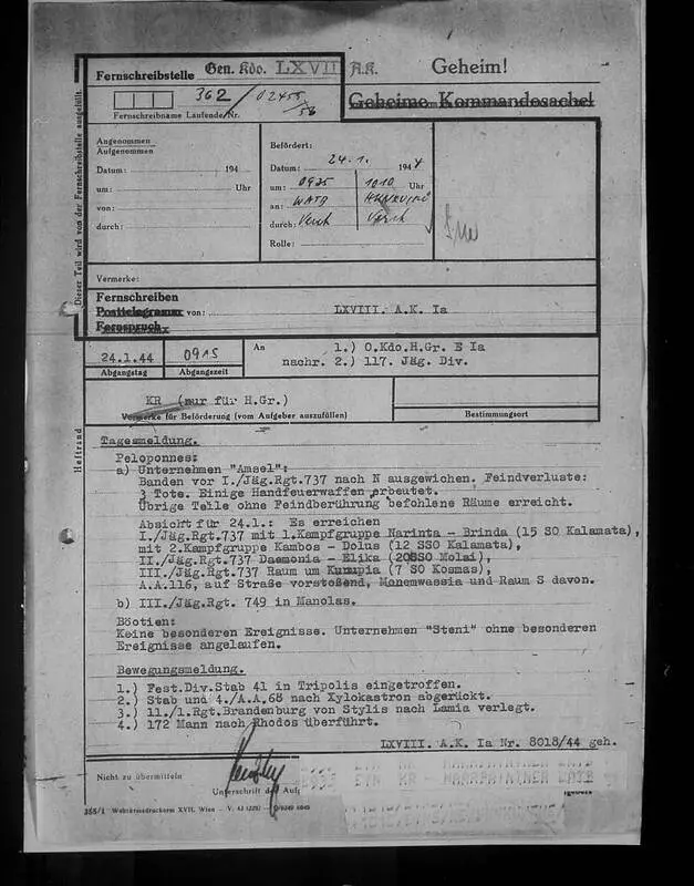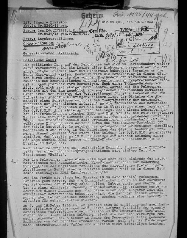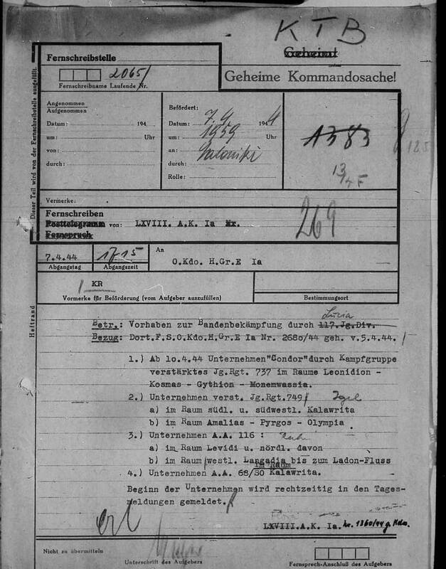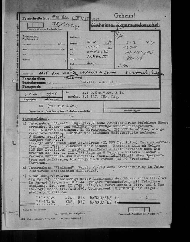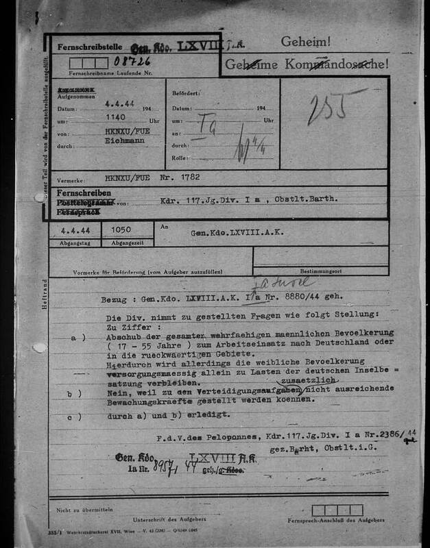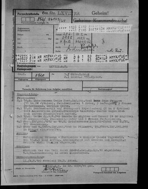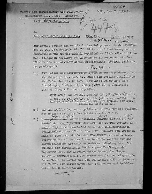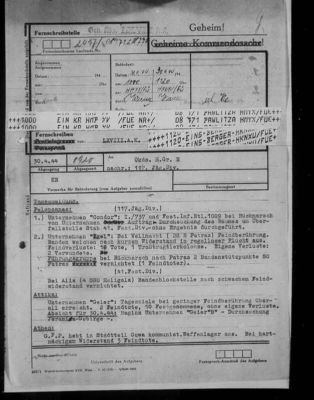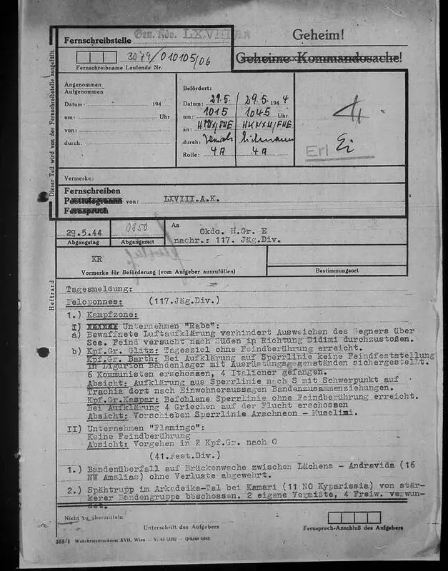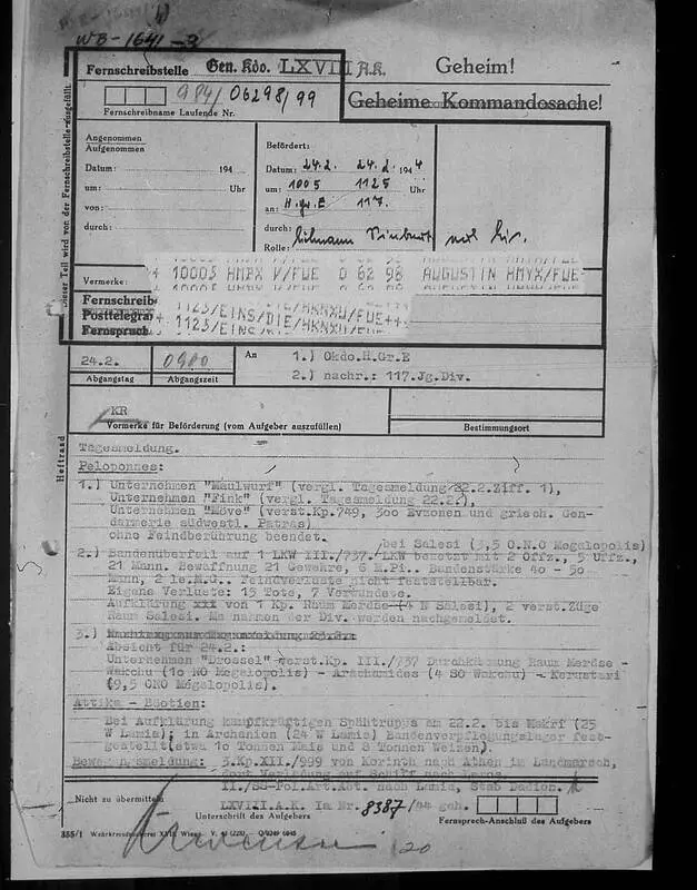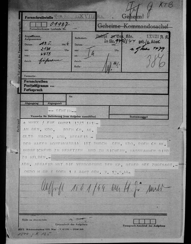 Αρχεία ηλεκτρονικής μορφής που αφορούν τα Γερμανικά Αρχεία του 68ου Σώματος Στρατού και της 117 Μεραρχίας Καταδρομών και της Διοίκησης Ναυτικού Πελοποννήσου.