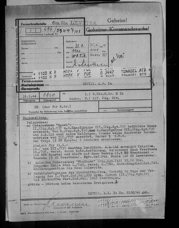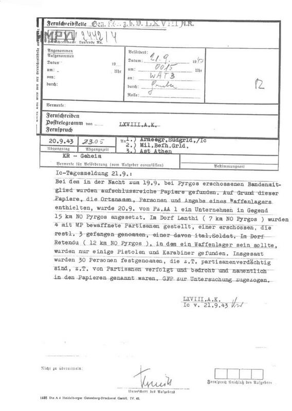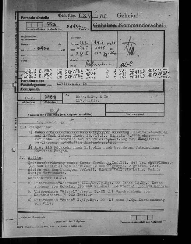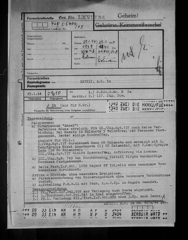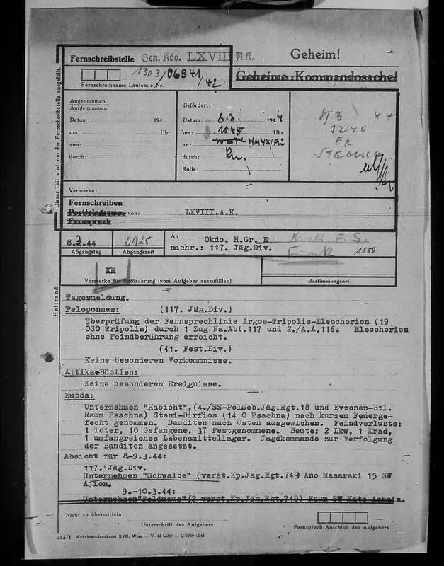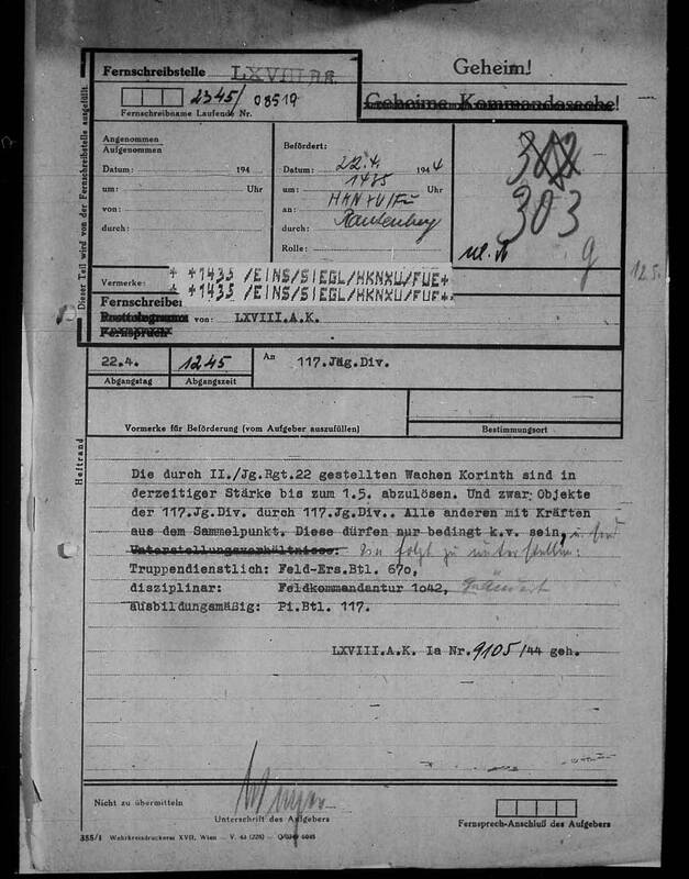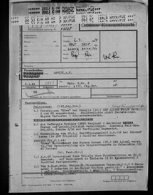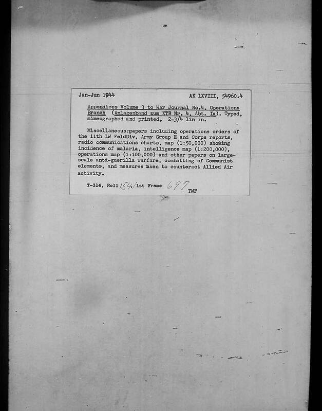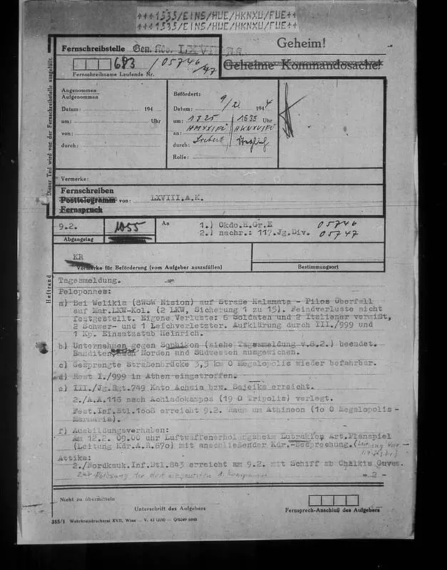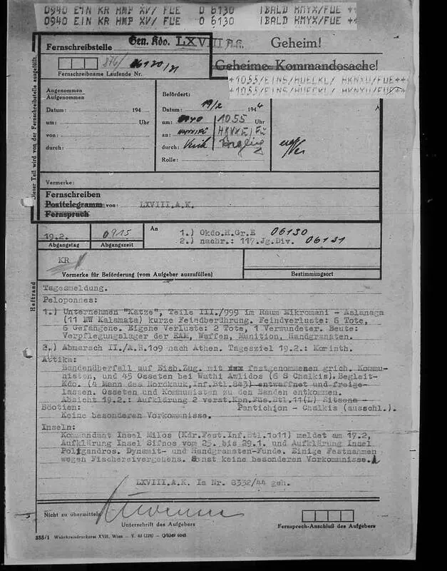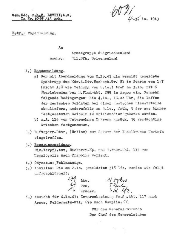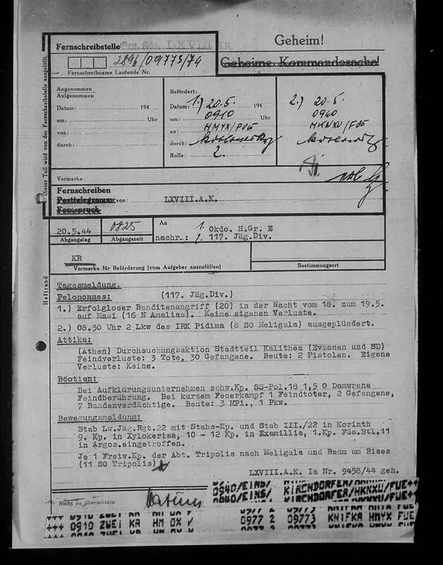 Αρχεία ηλεκτρονικής μορφής που αφορούν τα Γερμανικά Αρχεία του 68ου Σώματος Στρατού και της 117 Μεραρχίας Καταδρομών και της Διοίκησης Ναυτικού Πελοποννήσου.