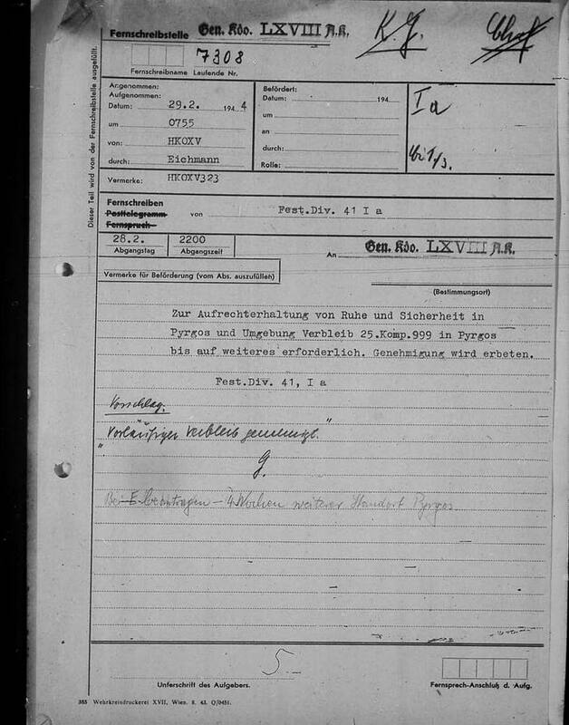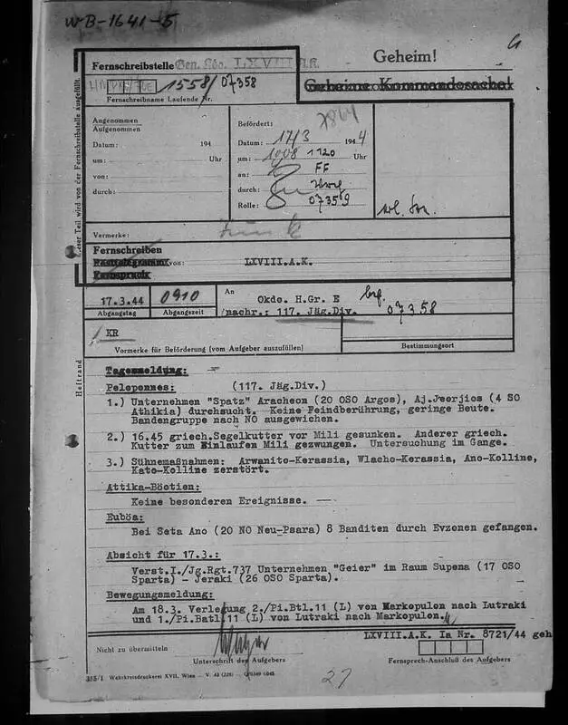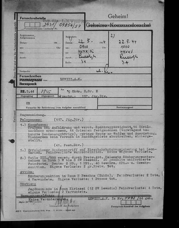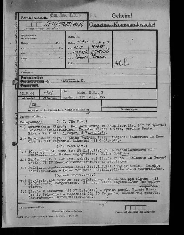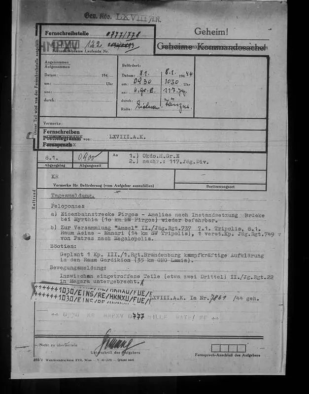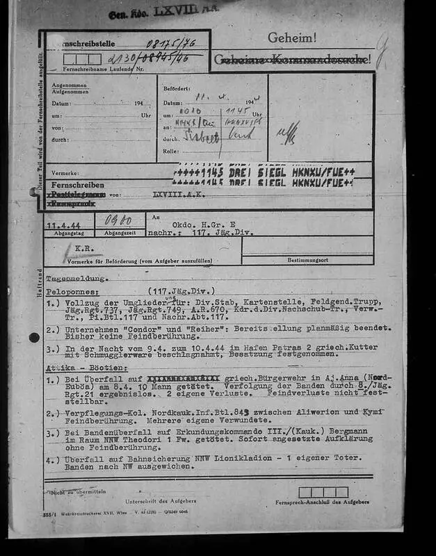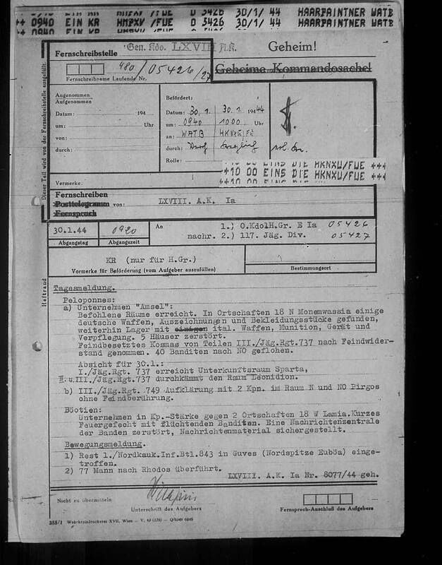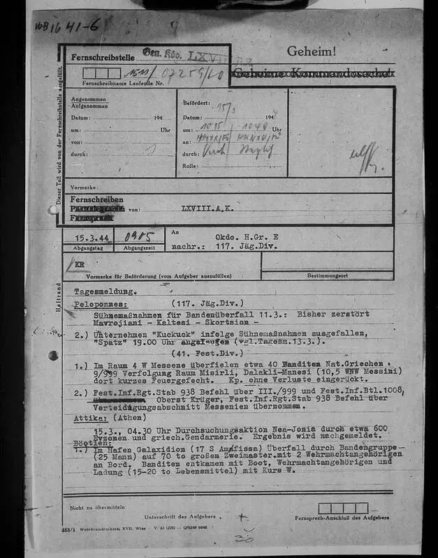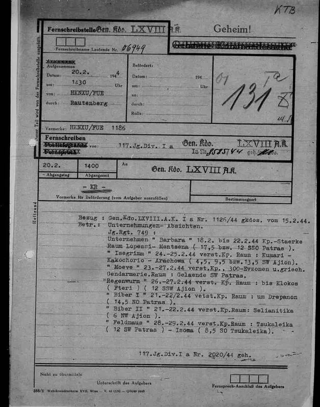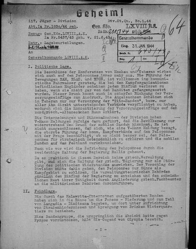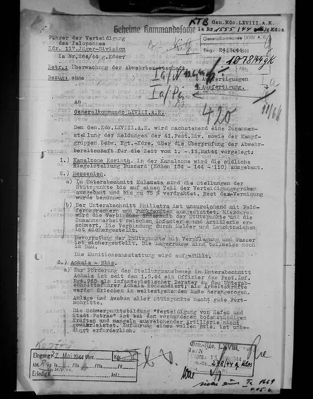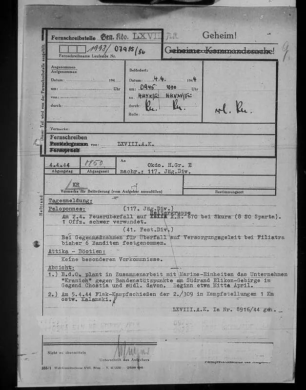 Αρχεία ηλεκτρονικής μορφής που αφορούν τα Γερμανικά Αρχεία του 68ου Σώματος Στρατού και της 117 Μεραρχίας Καταδρομών και της Διοίκησης Ναυτικού Πελοποννήσου.