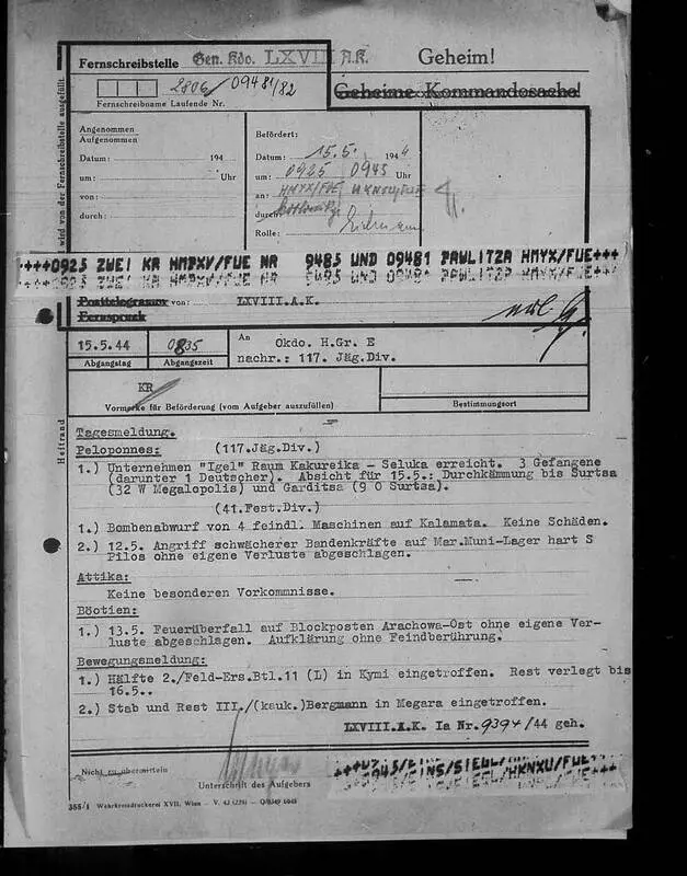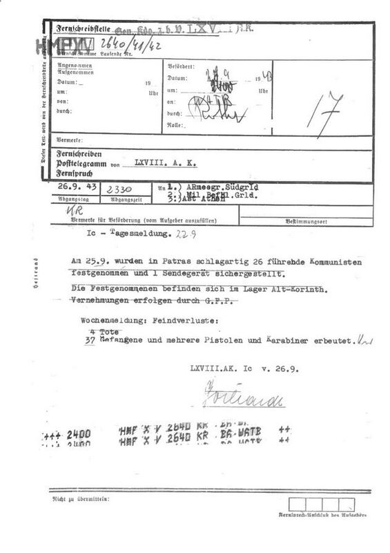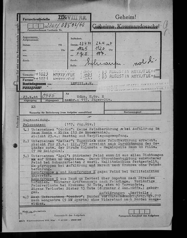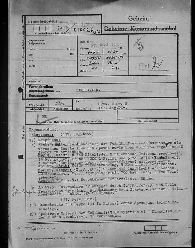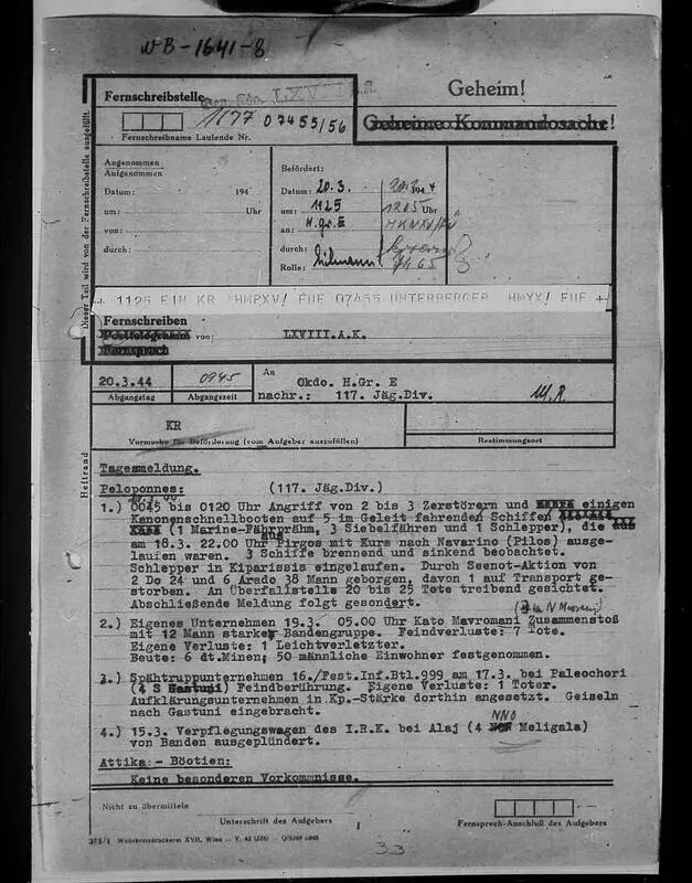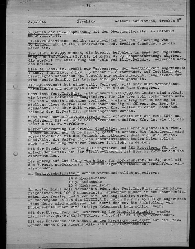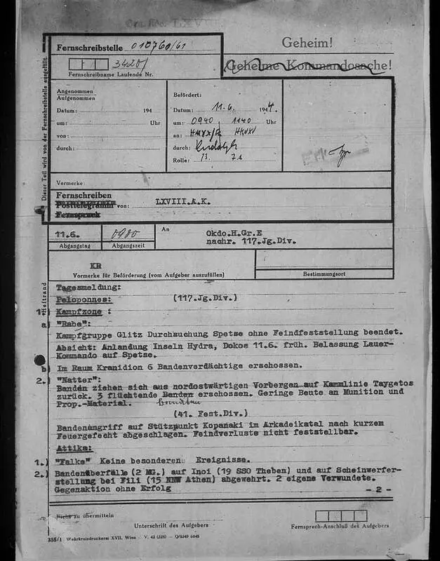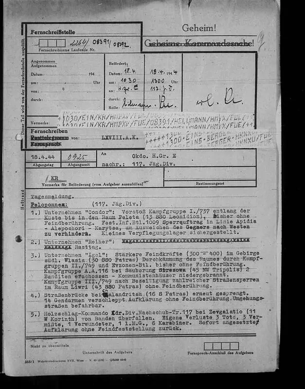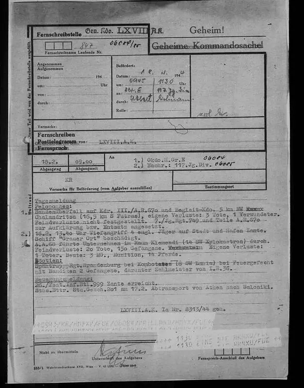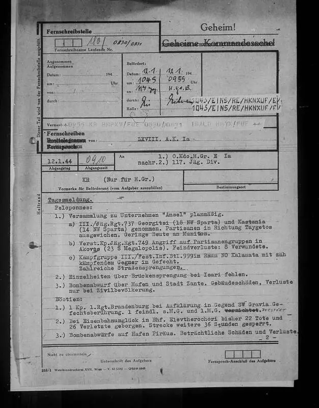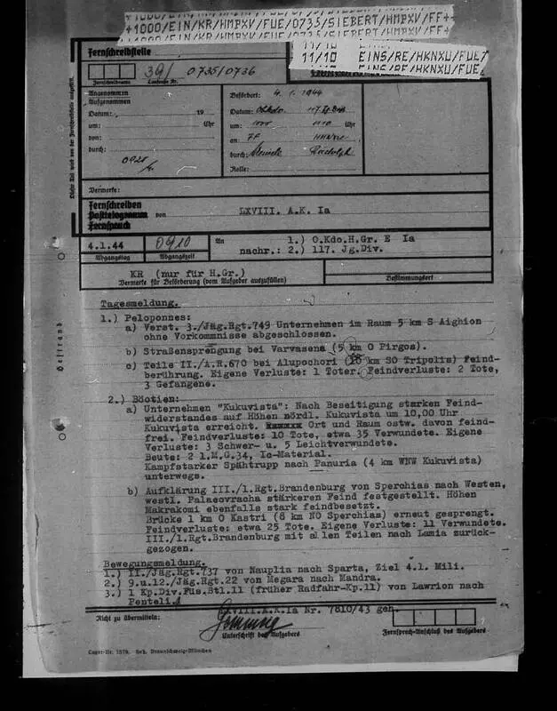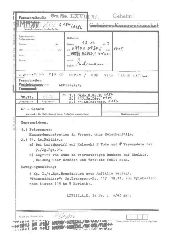 Αρχεία ηλεκτρονικής μορφής που αφορούν τα Γερμανικά Αρχεία του 68ου Σώματος Στρατού και της 117 Μεραρχίας Καταδρομών και της Διοίκησης Ναυτικού Πελοποννήσου.