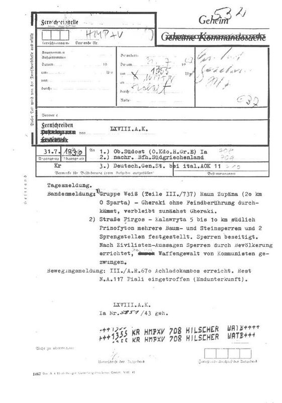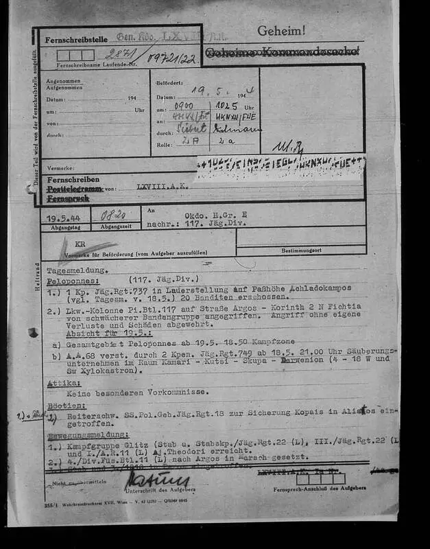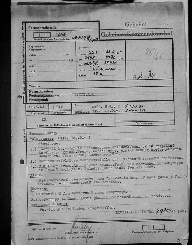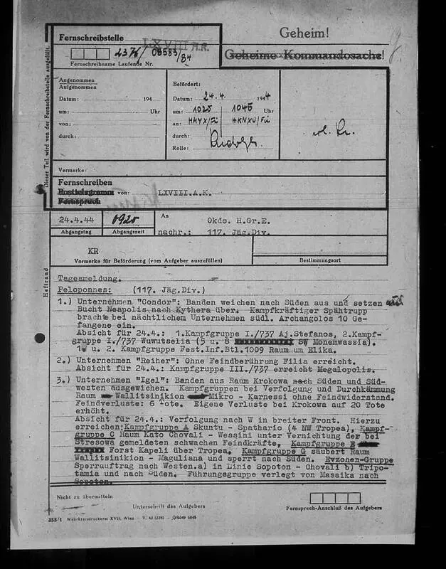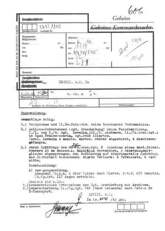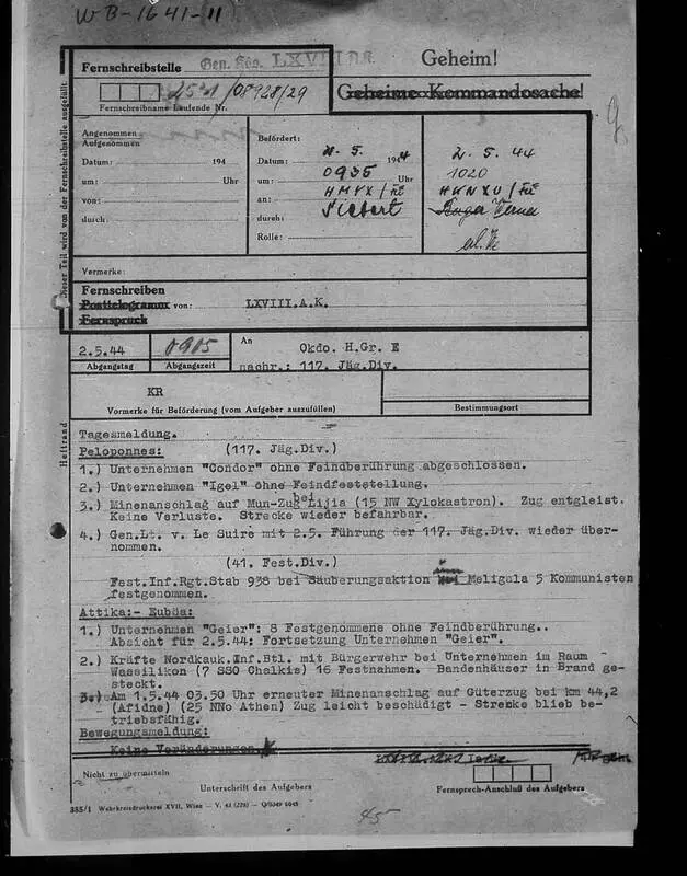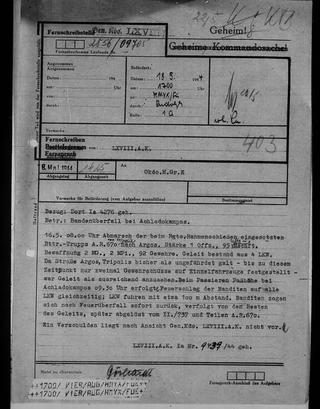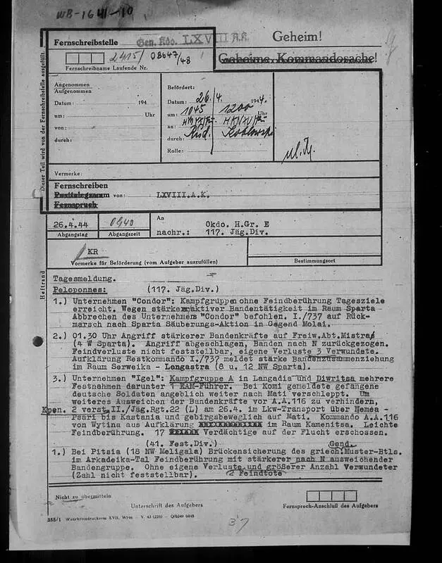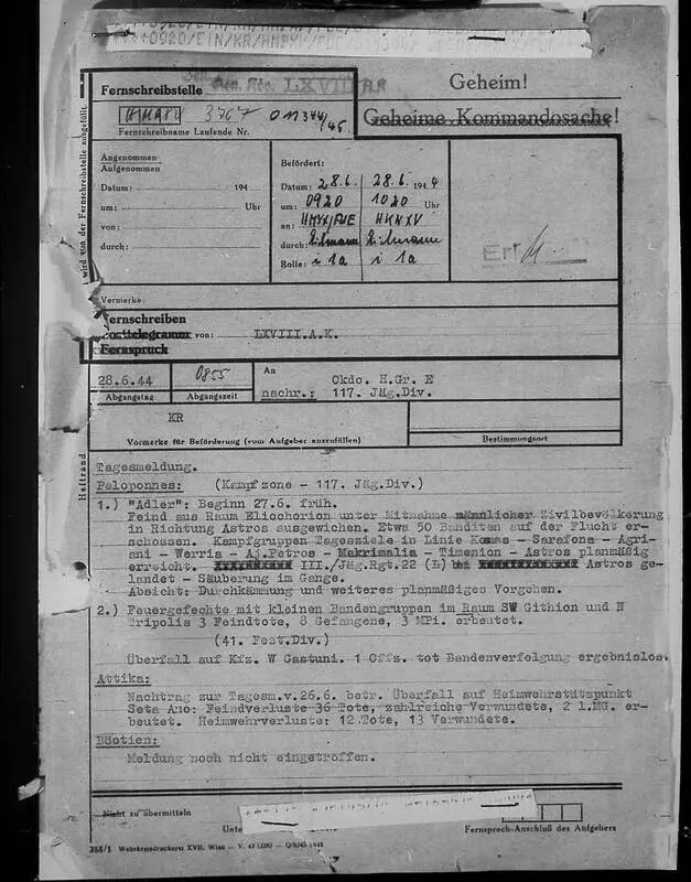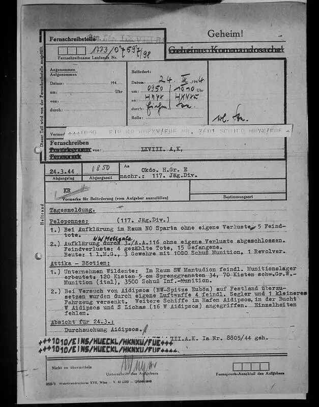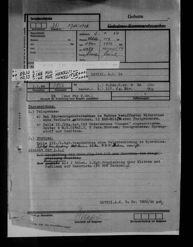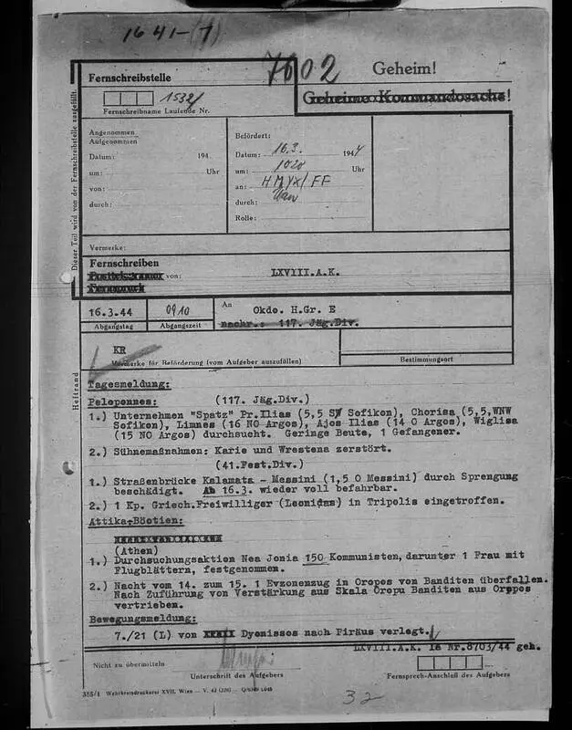 Αρχεία ηλεκτρονικής μορφής που αφορούν τα Γερμανικά Αρχεία του 68ου Σώματος Στρατού και της 117 Μεραρχίας Καταδρομών και της Διοίκησης Ναυτικού Πελοποννήσου.