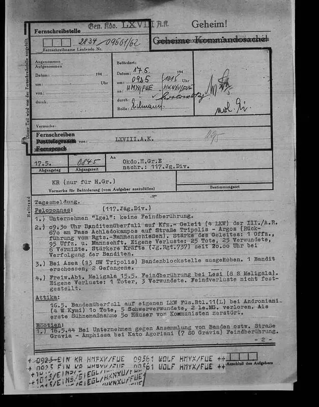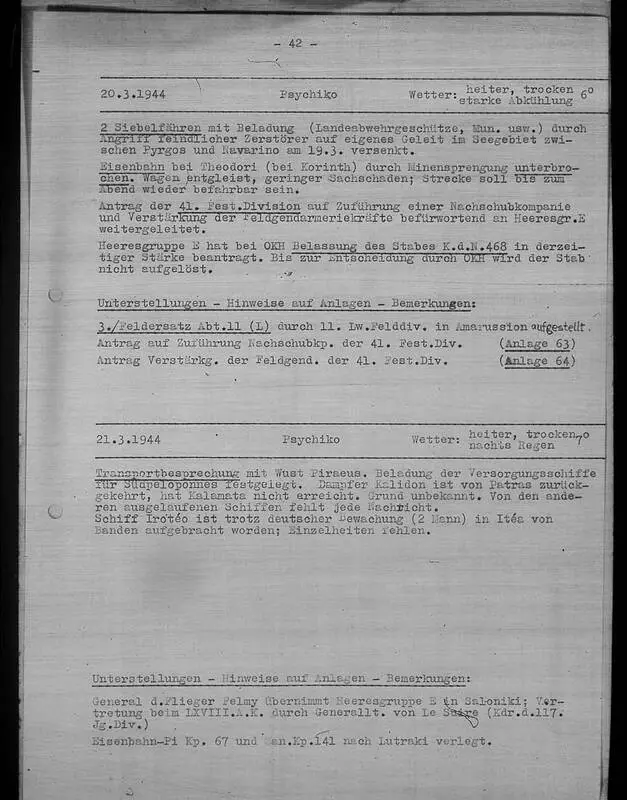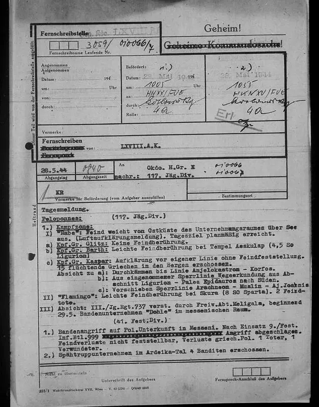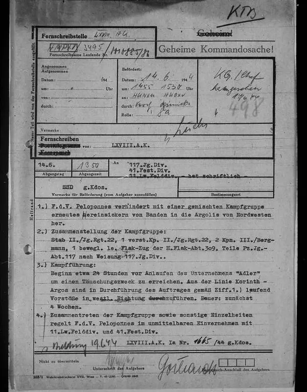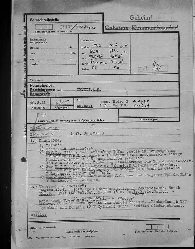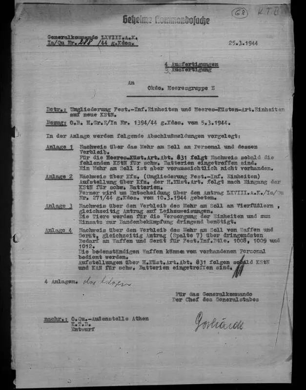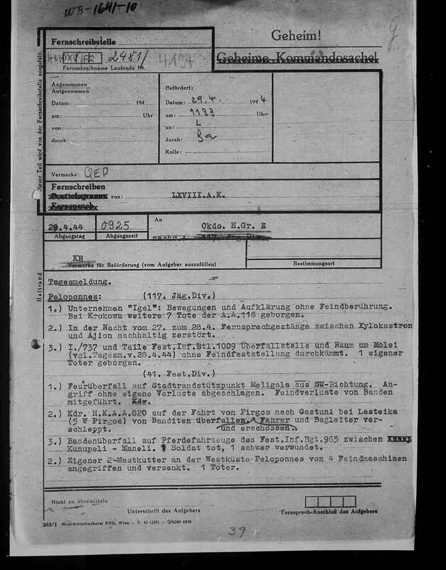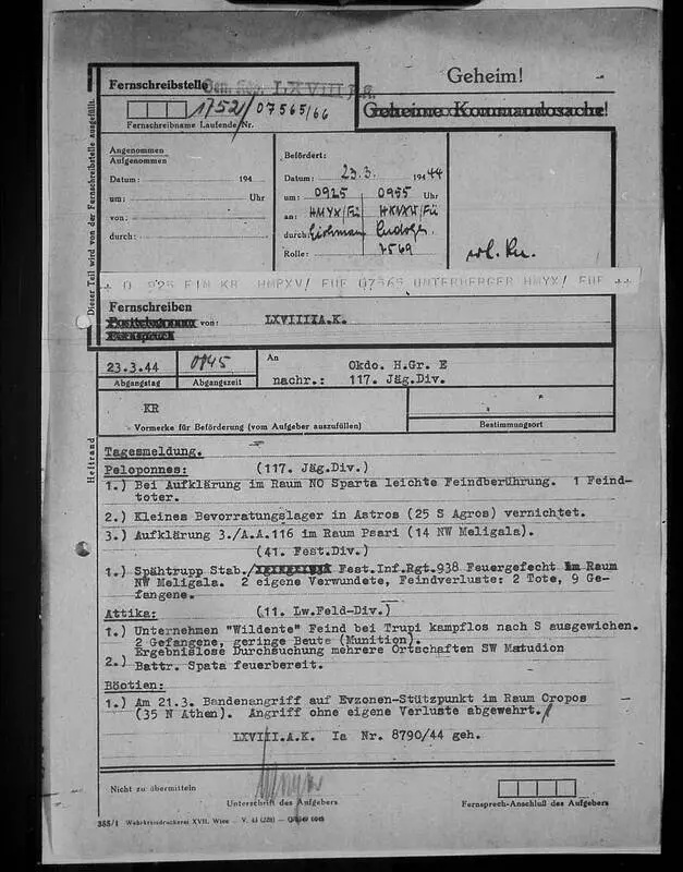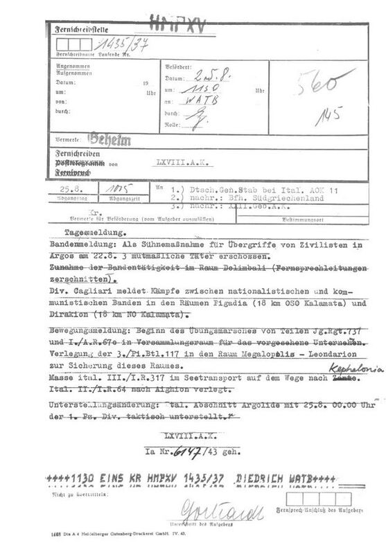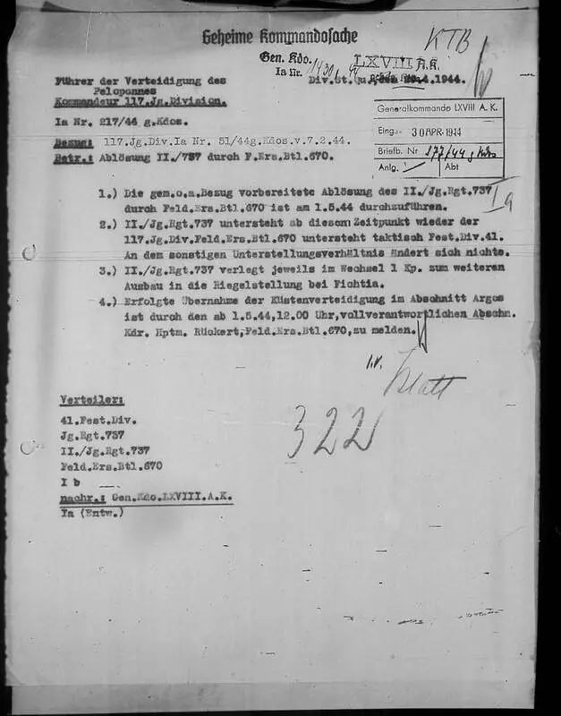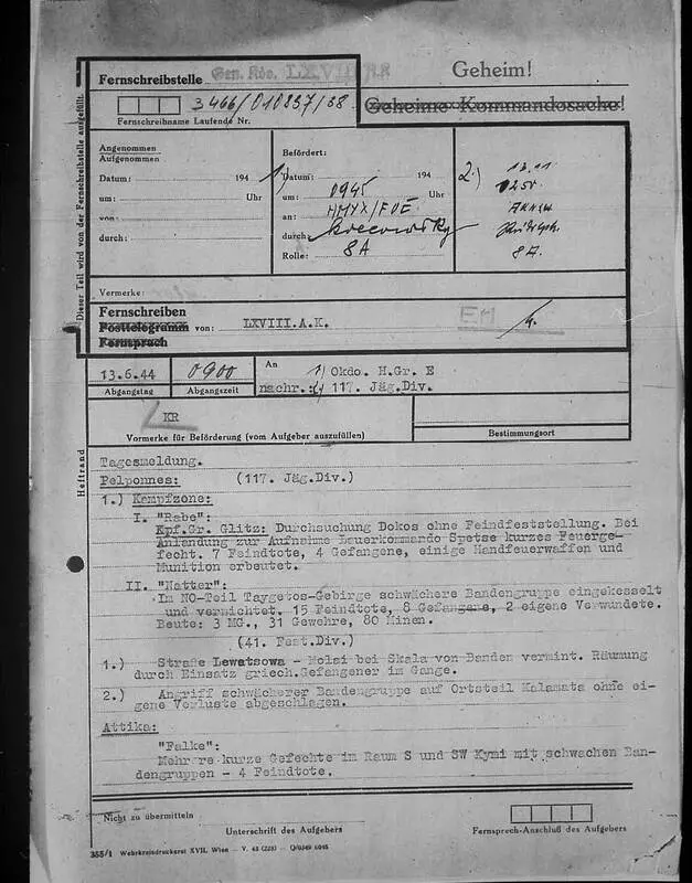 Αρχεία ηλεκτρονικής μορφής που αφορούν τα Γερμανικά Αρχεία του 68ου Σώματος Στρατού και της 117 Μεραρχίας Καταδρομών και της Διοίκησης Ναυτικού Πελοποννήσου.
