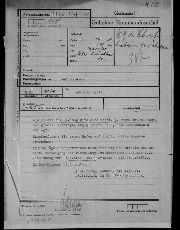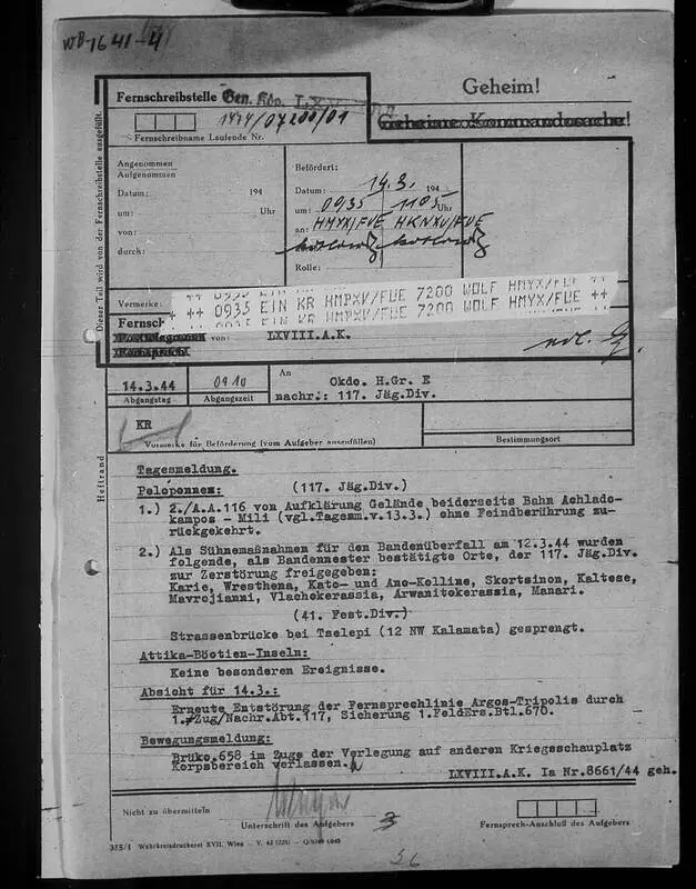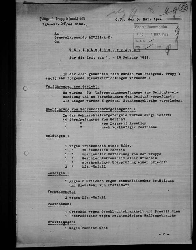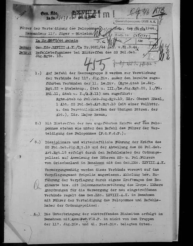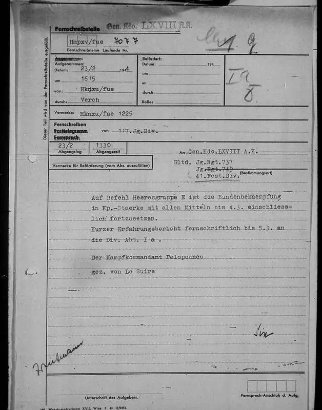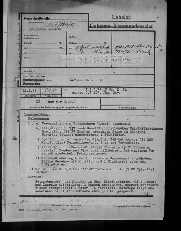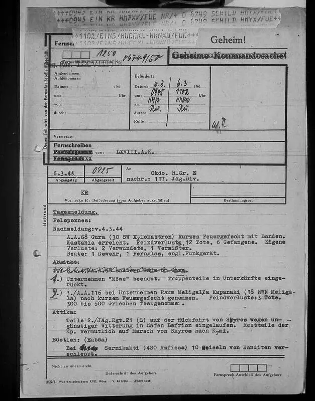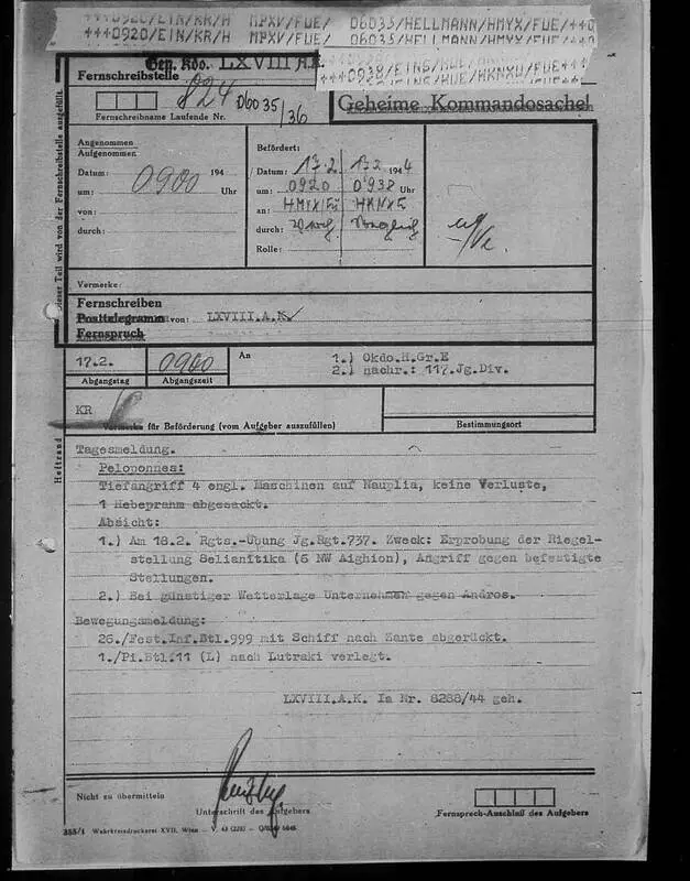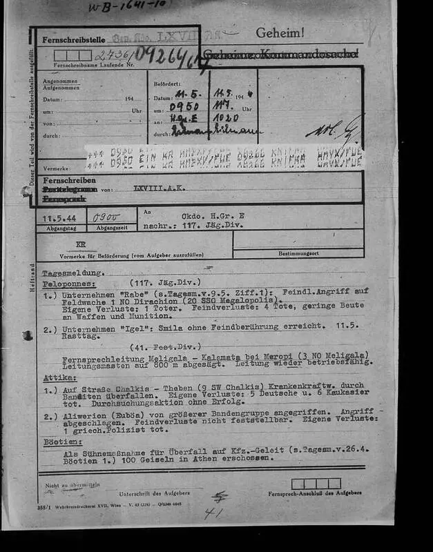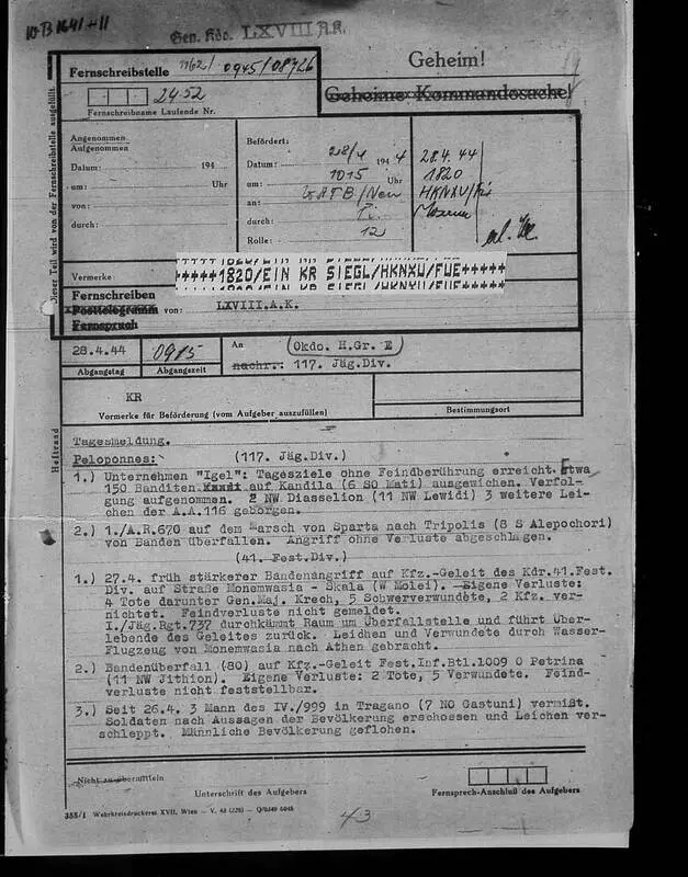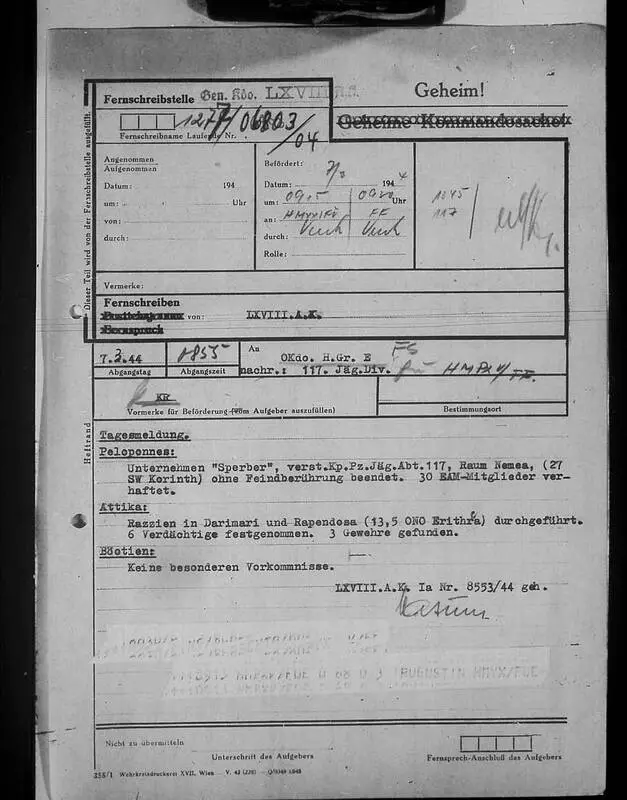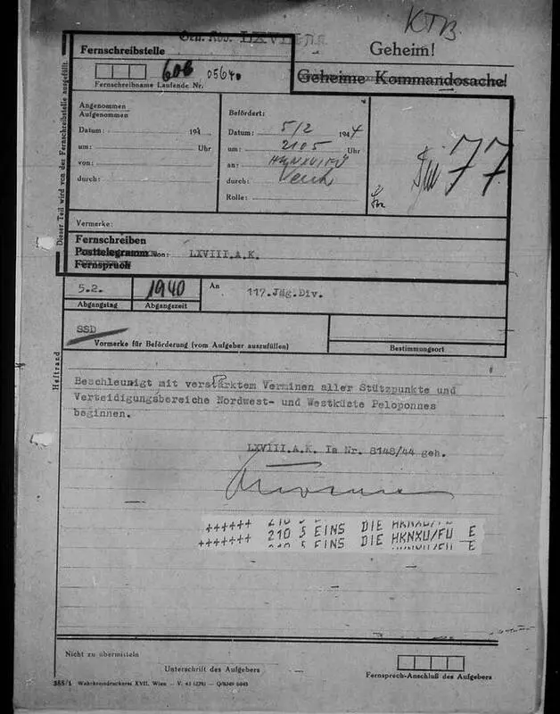Αρχεία ηλεκτρονικής μορφής που αφορούν τα Γερμανικά Αρχεία του 68ου Σώματος Στρατού και της 117 Μεραρχίας Καταδρομών και της Διοίκησης Ναυτικού Πελοποννήσου.