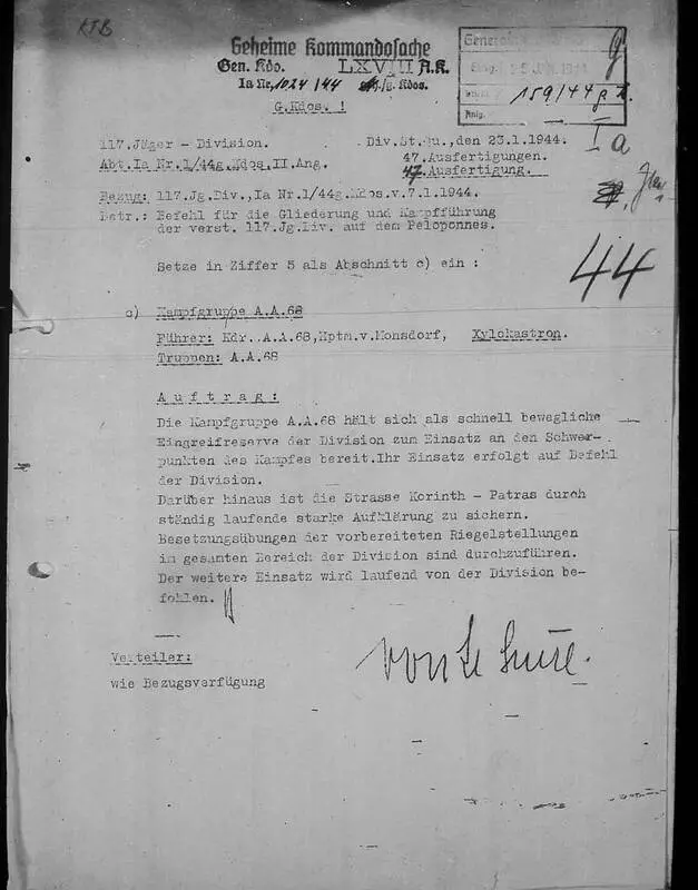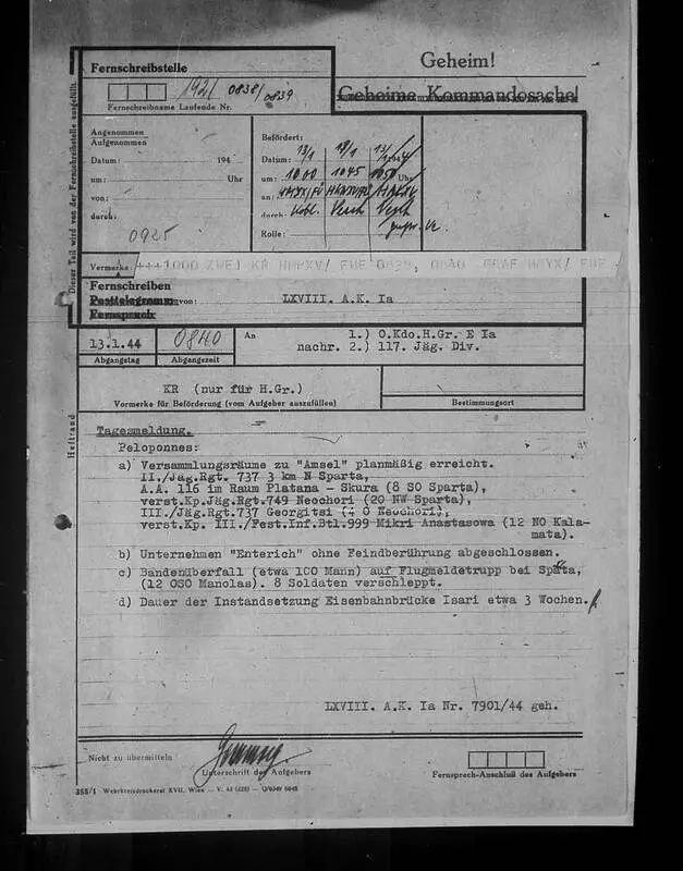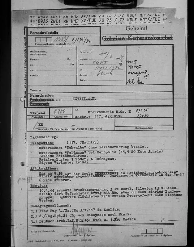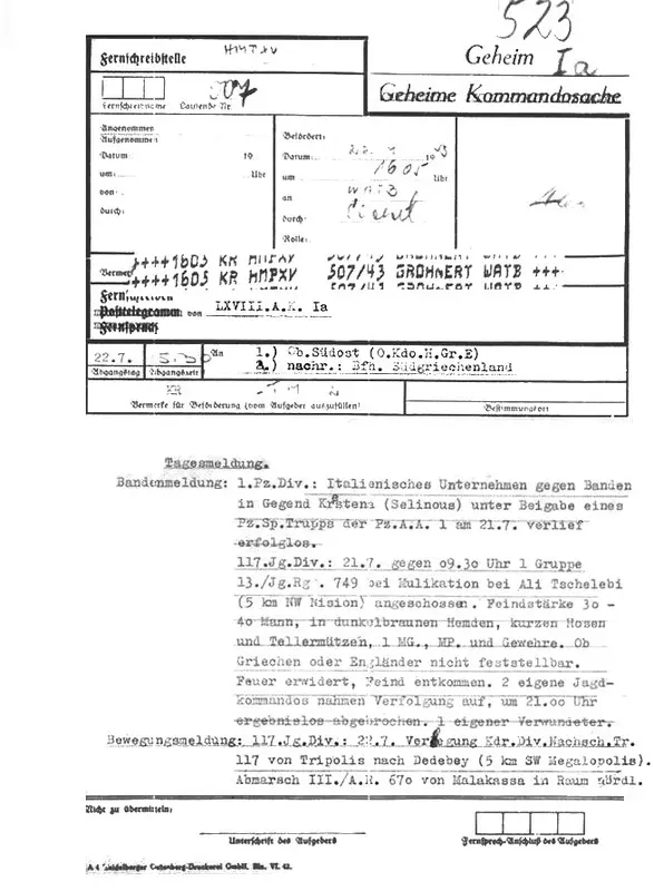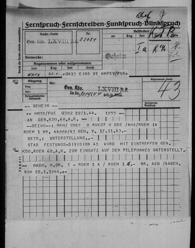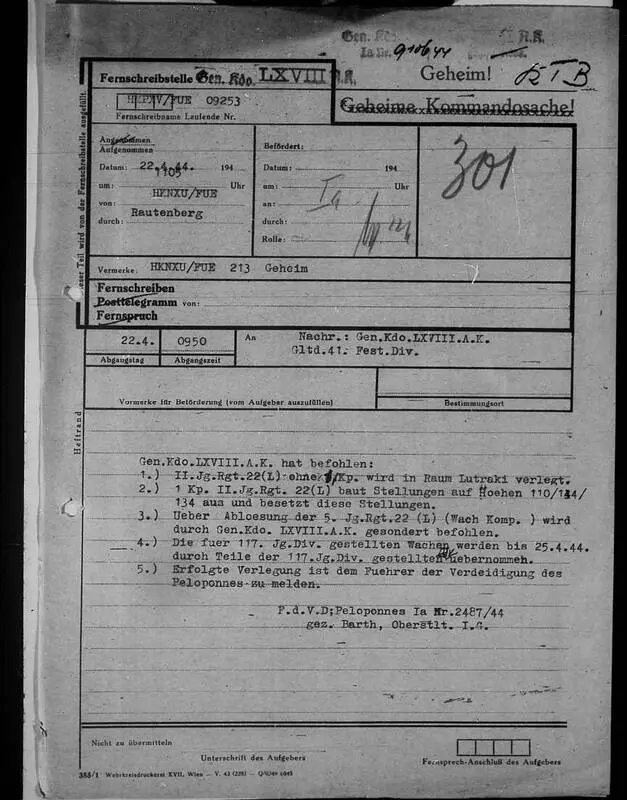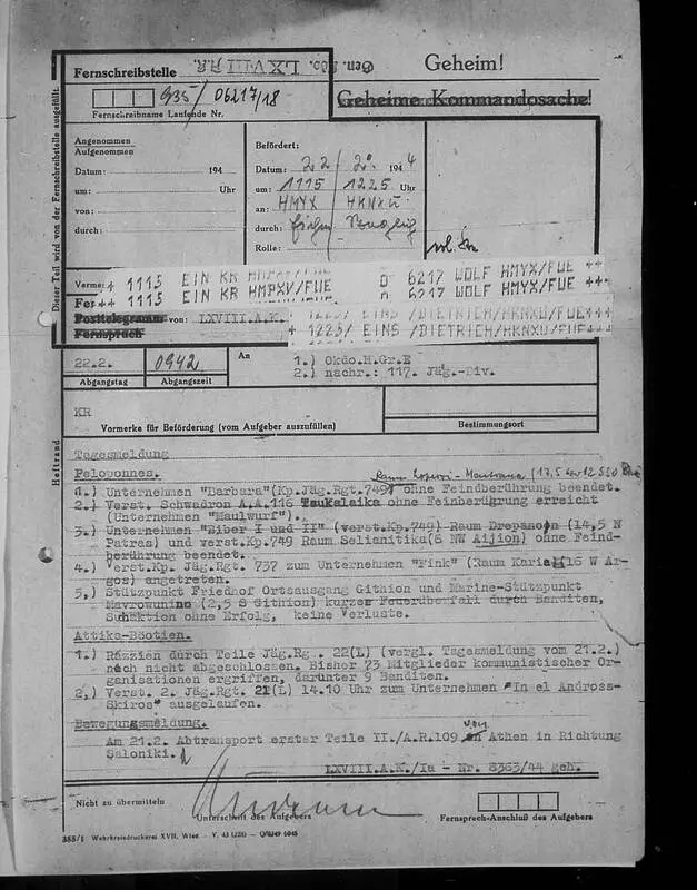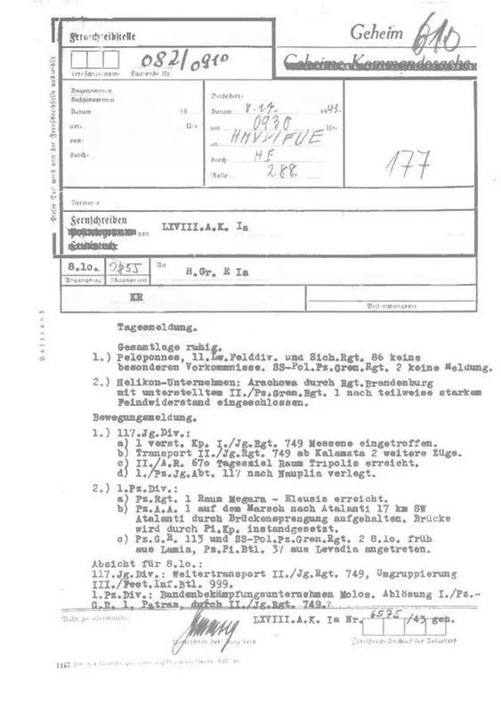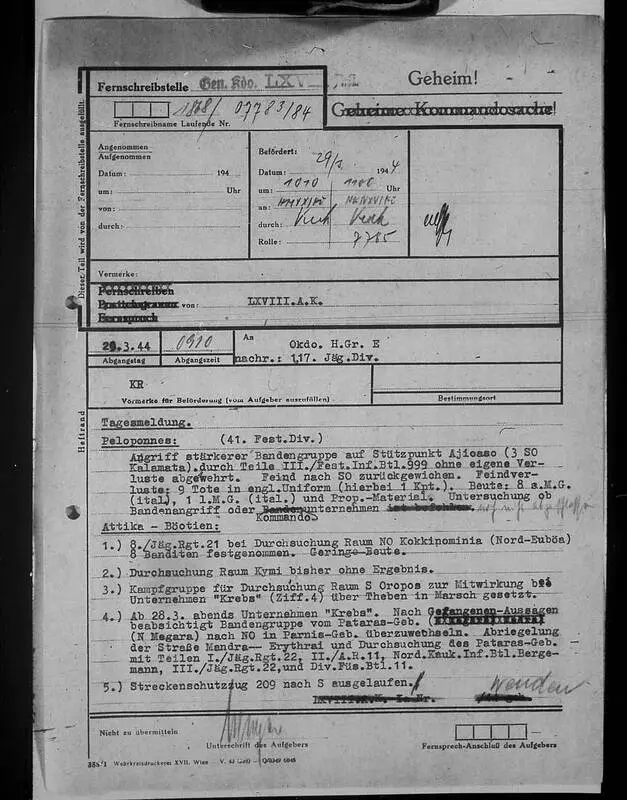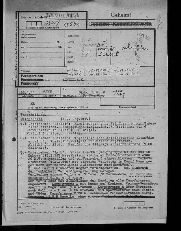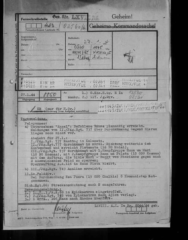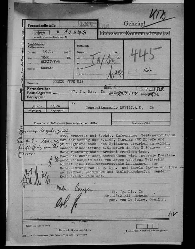 Αρχεία ηλεκτρονικής μορφής που αφορούν τα Γερμανικά Αρχεία του 68ου Σώματος Στρατού και της 117 Μεραρχίας Καταδρομών και της Διοίκησης Ναυτικού Πελοποννήσου.