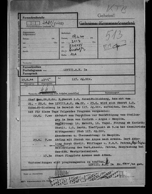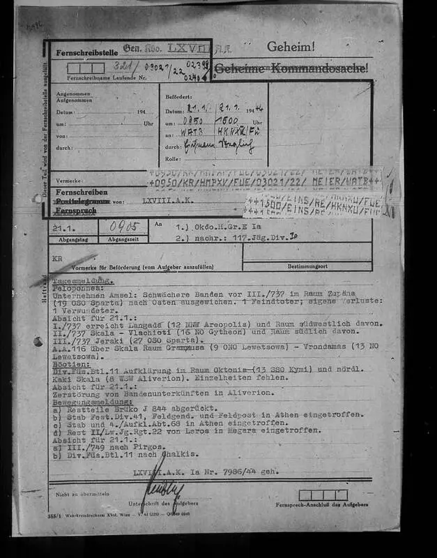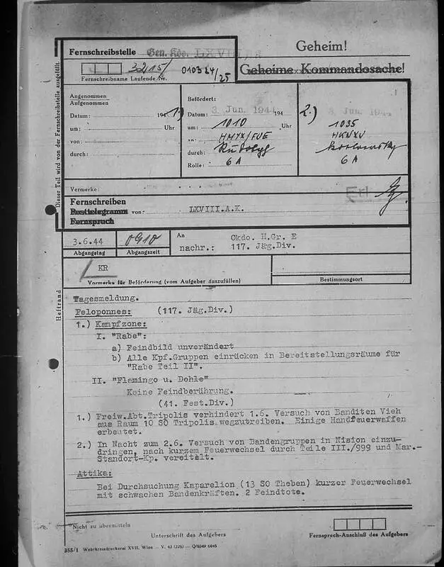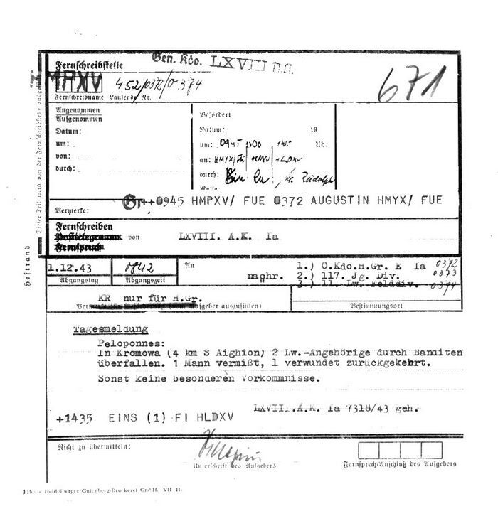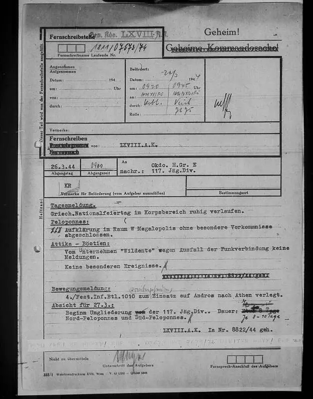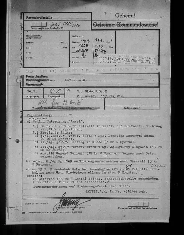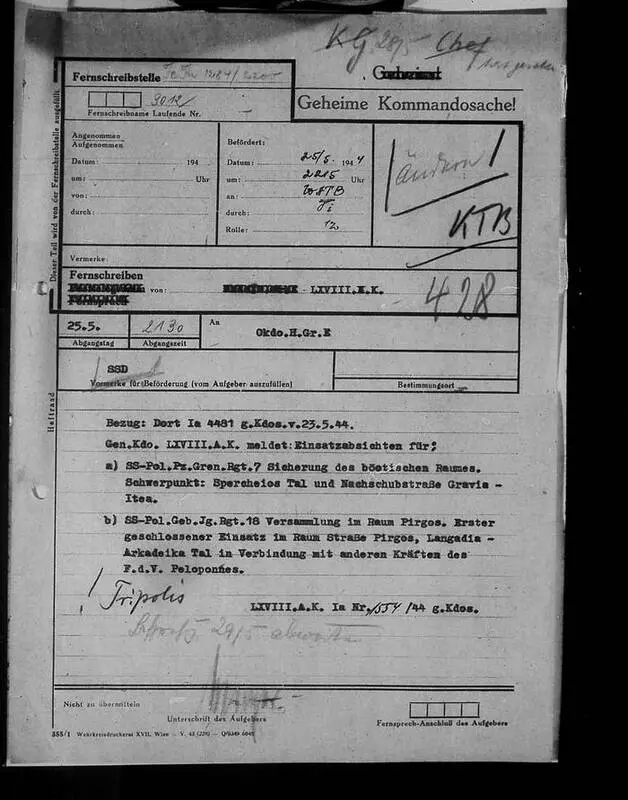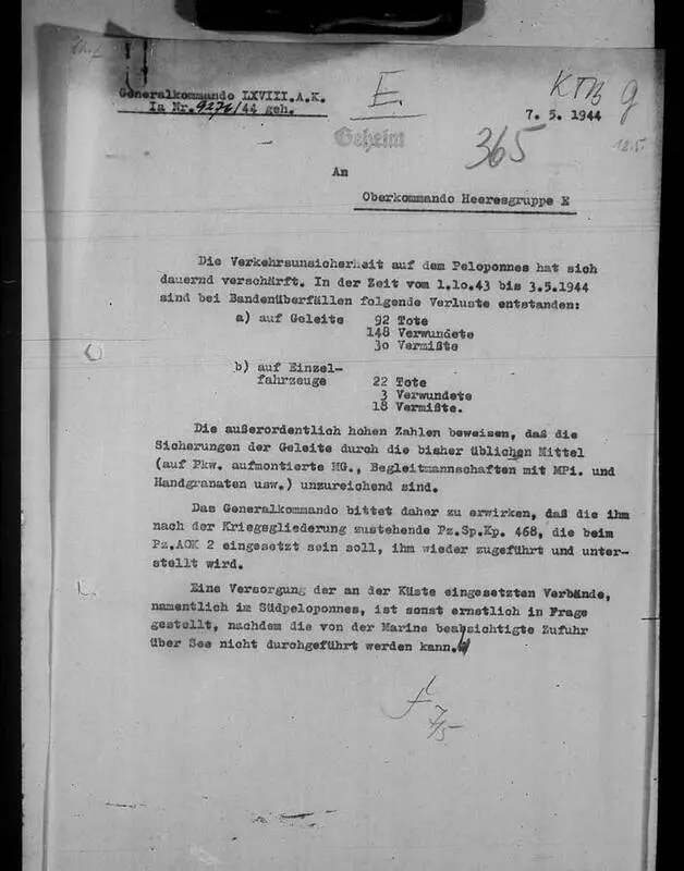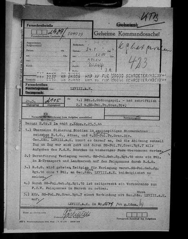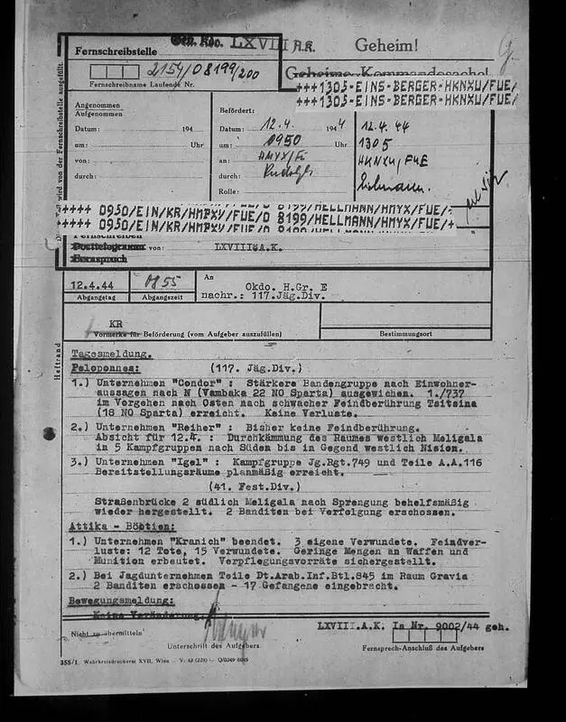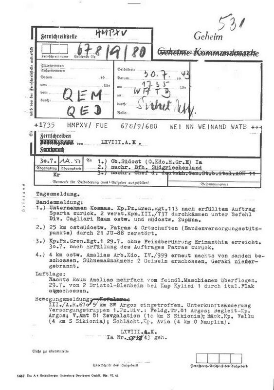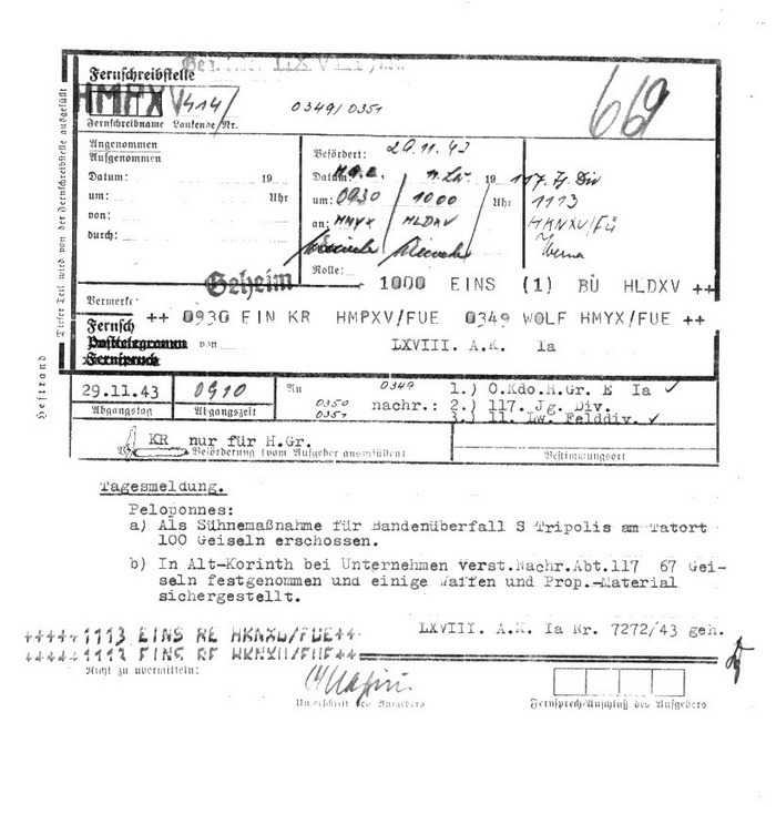 Αρχεία ηλεκτρονικής μορφής που αφορούν τα Γερμανικά Αρχεία του 68ου Σώματος Στρατού και της 117 Μεραρχίας Καταδρομών και της Διοίκησης Ναυτικού Πελοποννήσου.