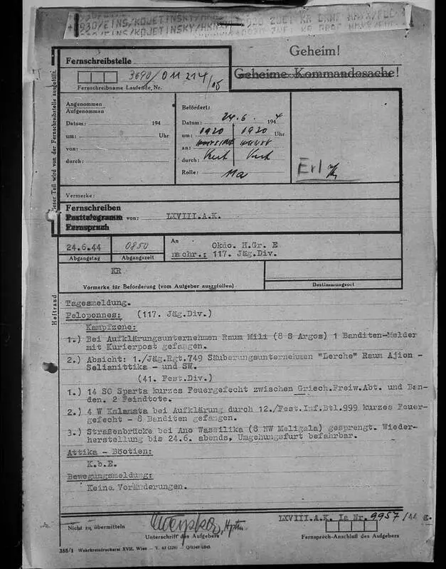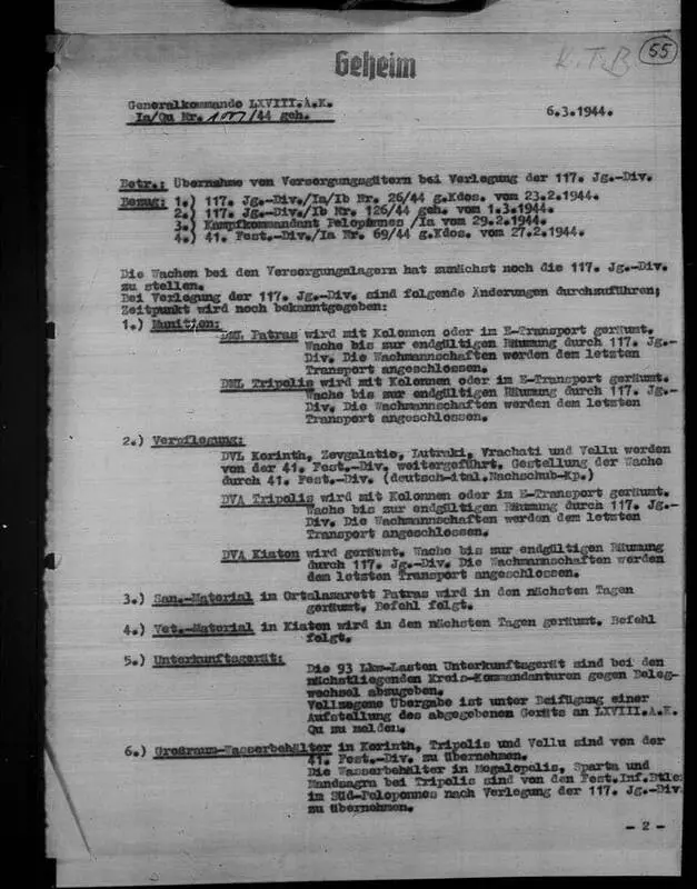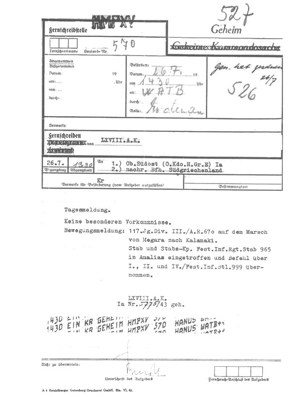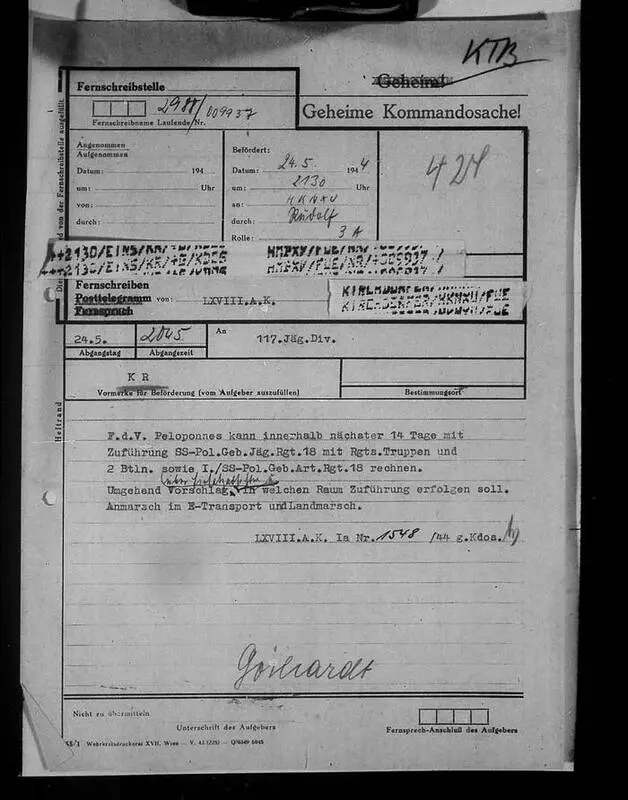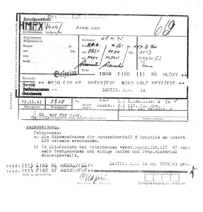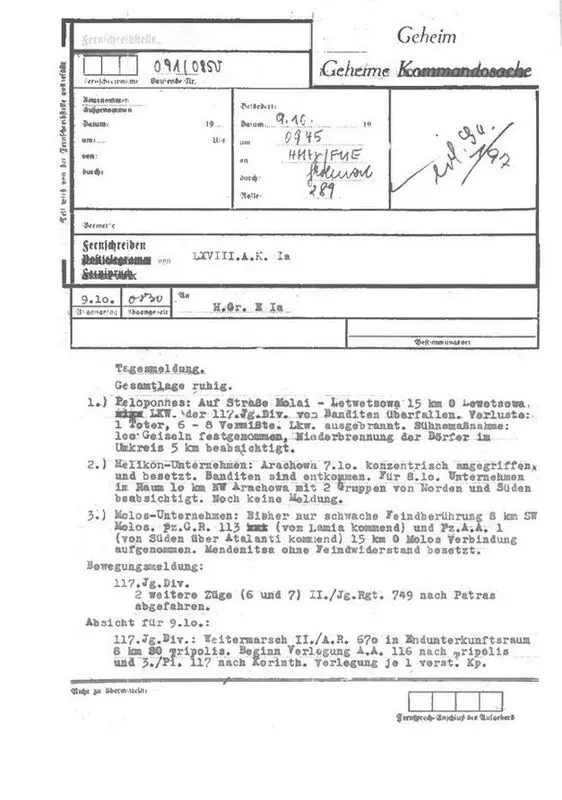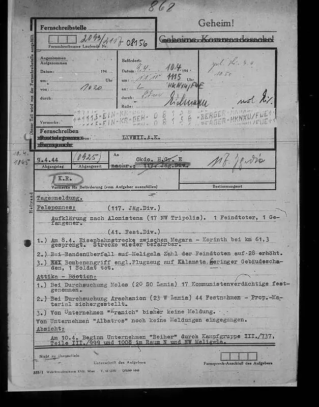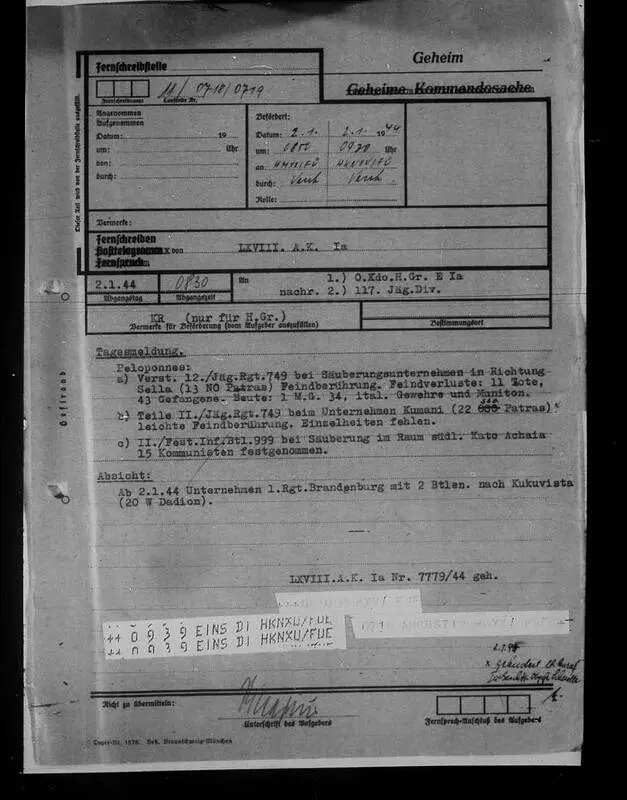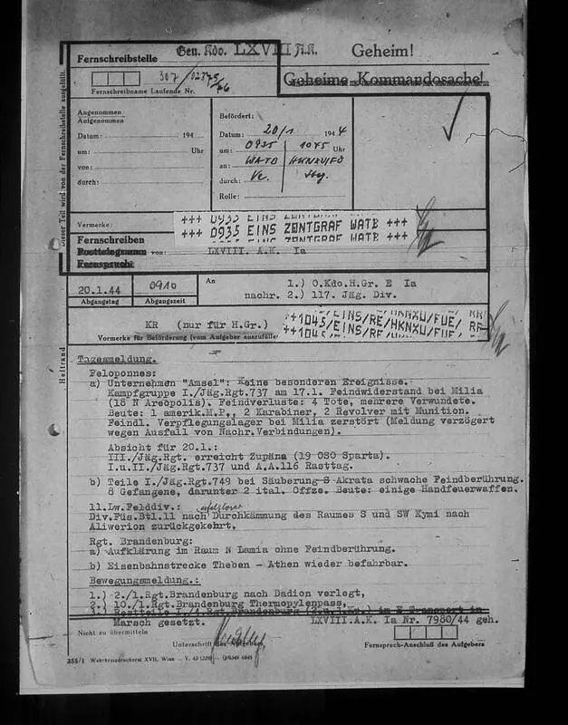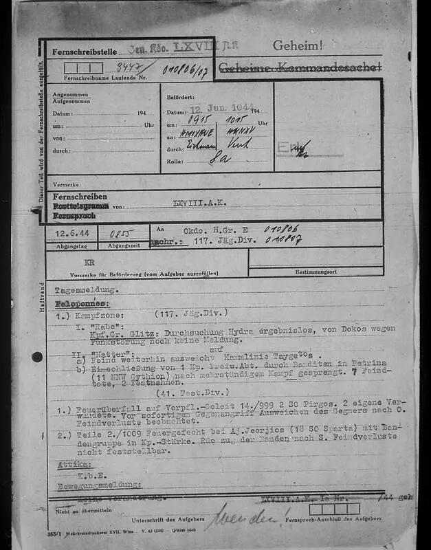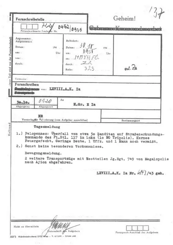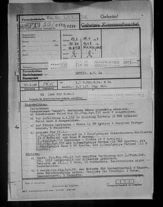 Αρχεία ηλεκτρονικής μορφής που αφορούν τα Γερμανικά Αρχεία του 68ου Σώματος Στρατού και της 117 Μεραρχίας Καταδρομών και της Διοίκησης Ναυτικού Πελοποννήσου.