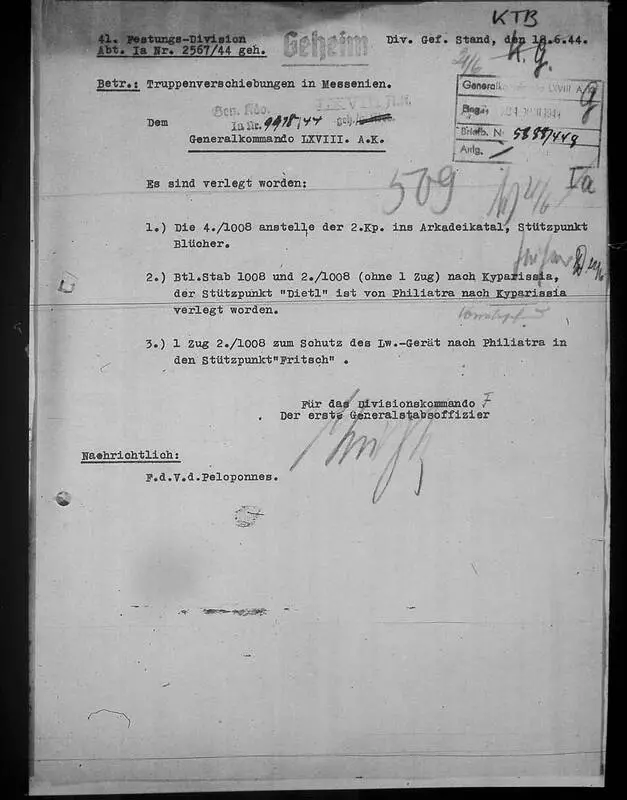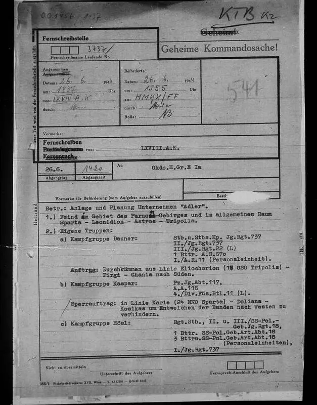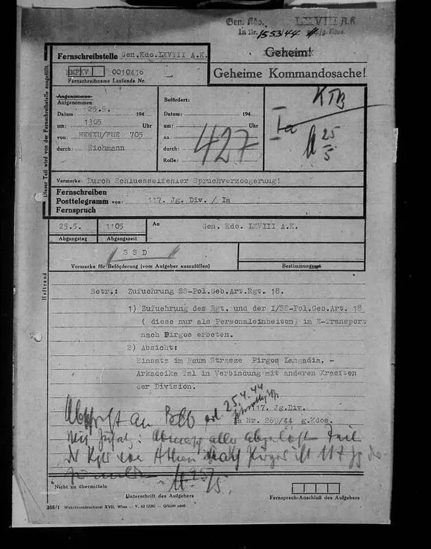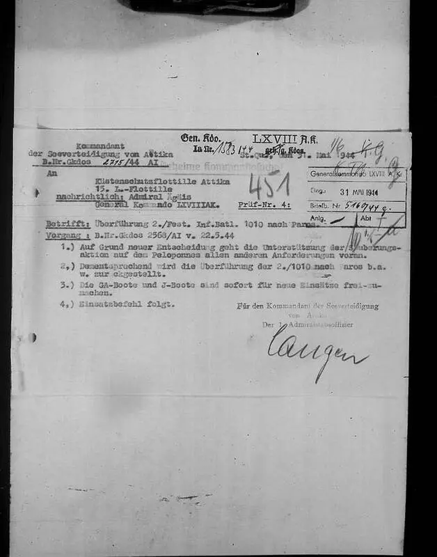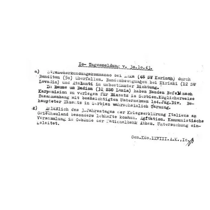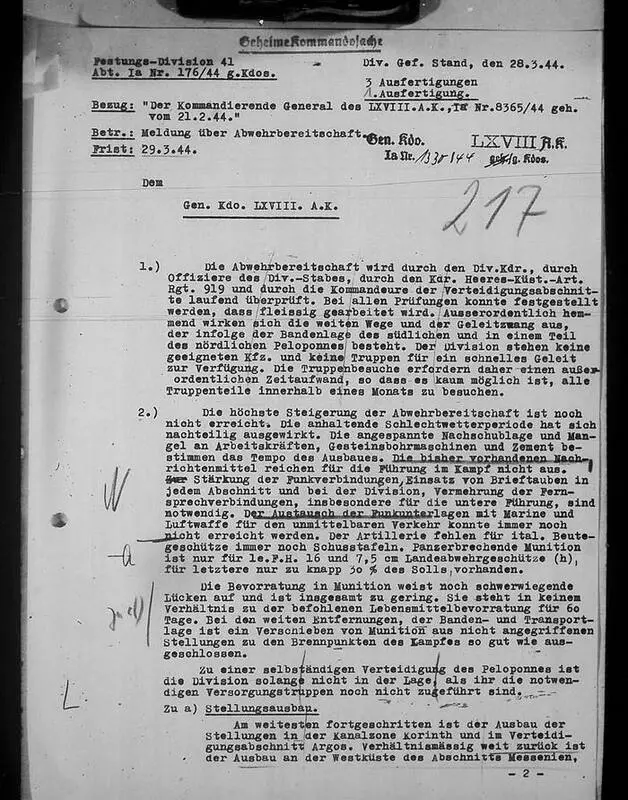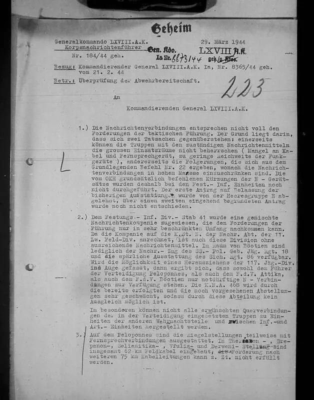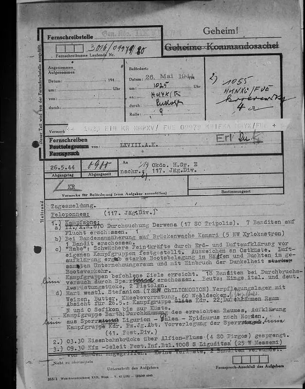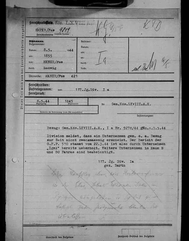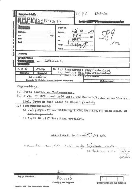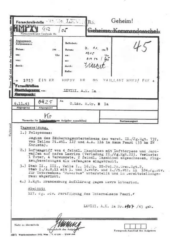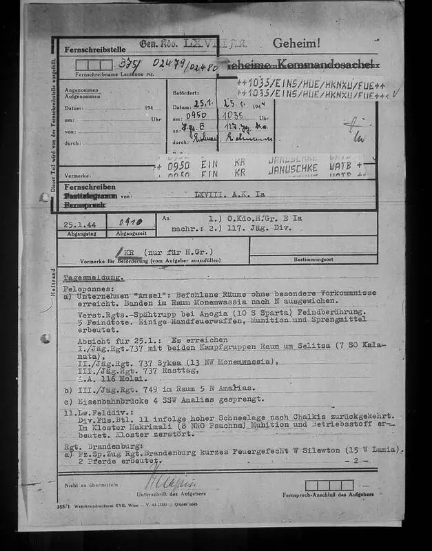 Αρχεία ηλεκτρονικής μορφής που αφορούν τα Γερμανικά Αρχεία του 68ου Σώματος Στρατού και της 117 Μεραρχίας Καταδρομών και της Διοίκησης Ναυτικού Πελοποννήσου.