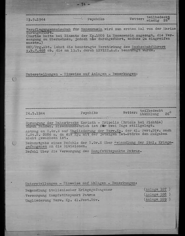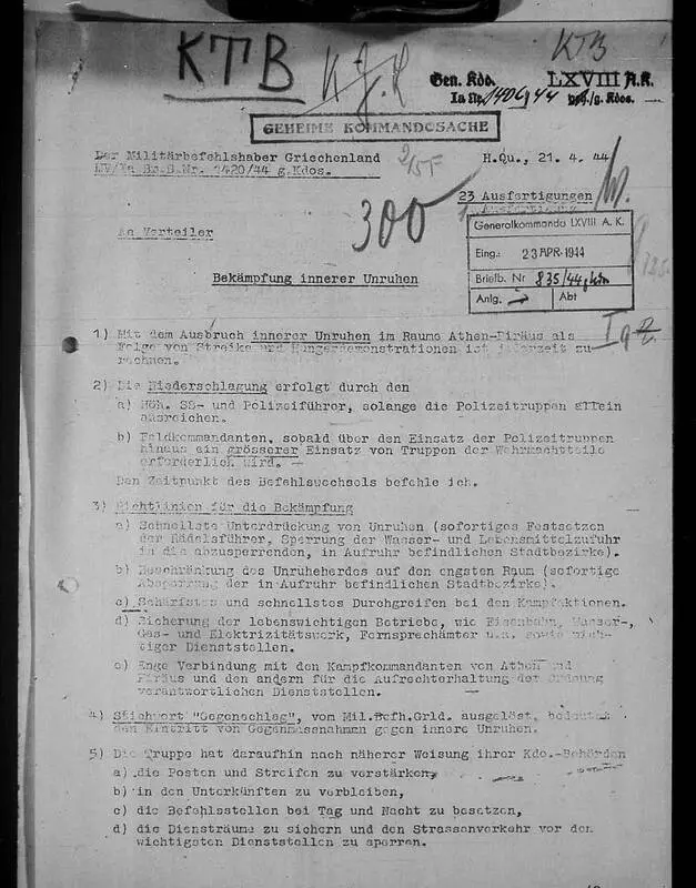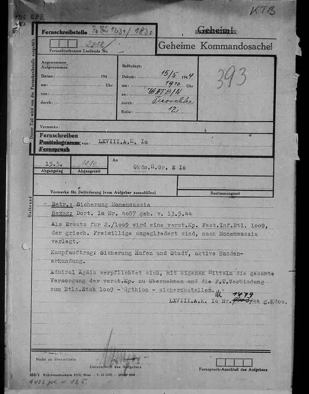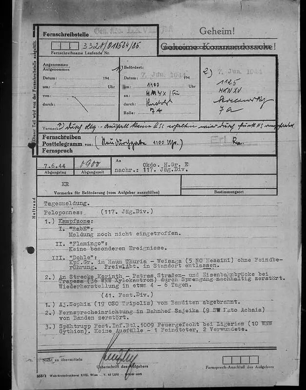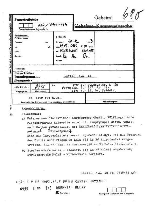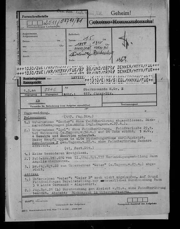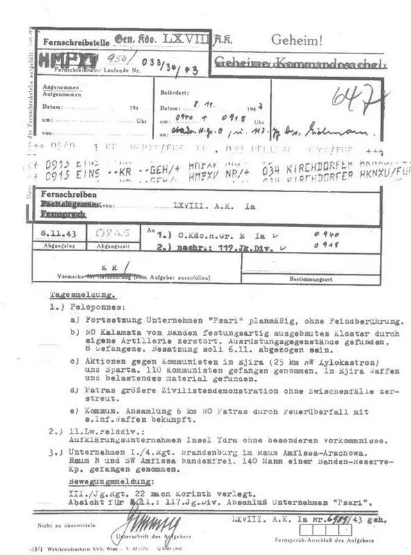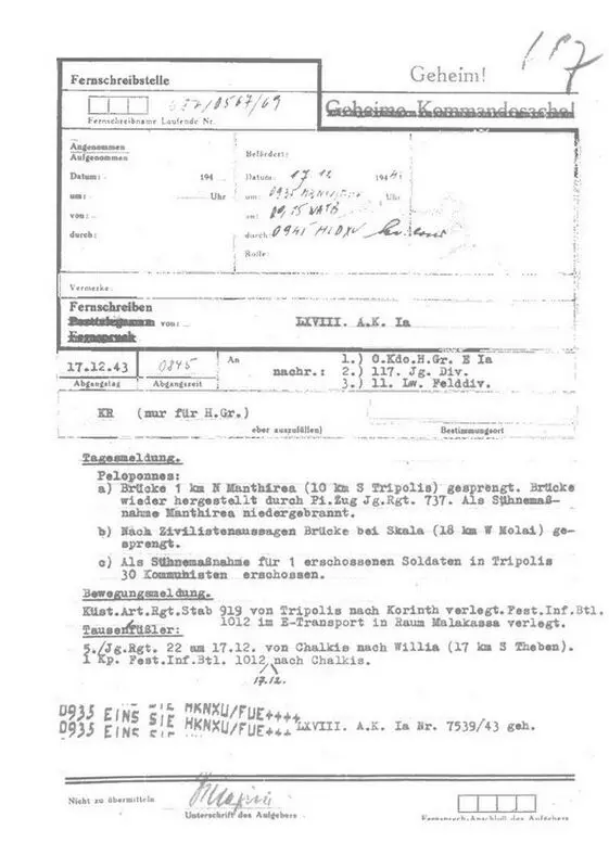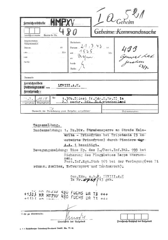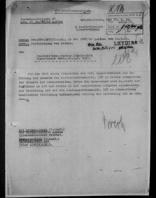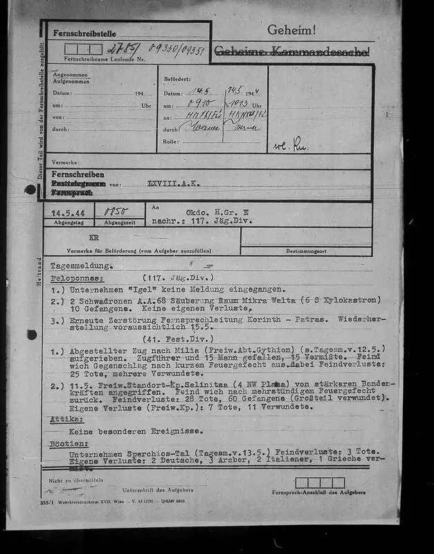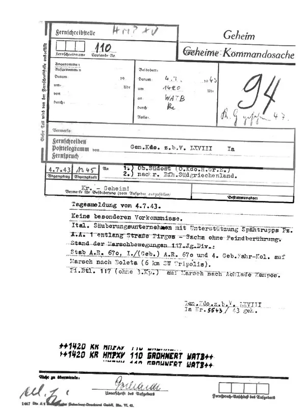 Αρχεία ηλεκτρονικής μορφής που αφορούν τα Γερμανικά Αρχεία του 68ου Σώματος Στρατού και της 117 Μεραρχίας Καταδρομών και της Διοίκησης Ναυτικού Πελοποννήσου.