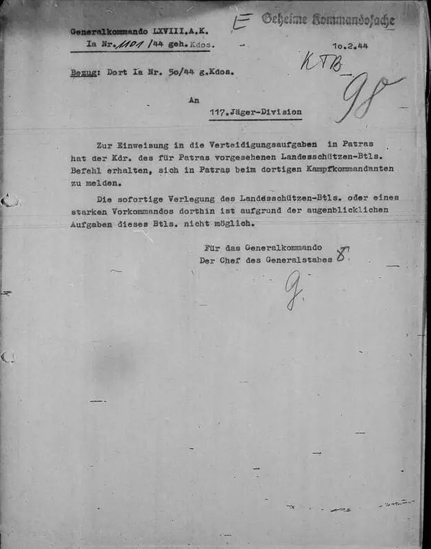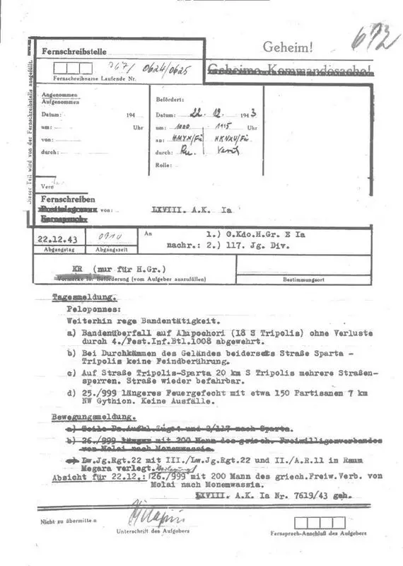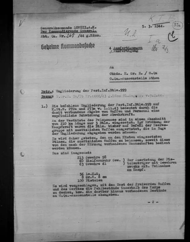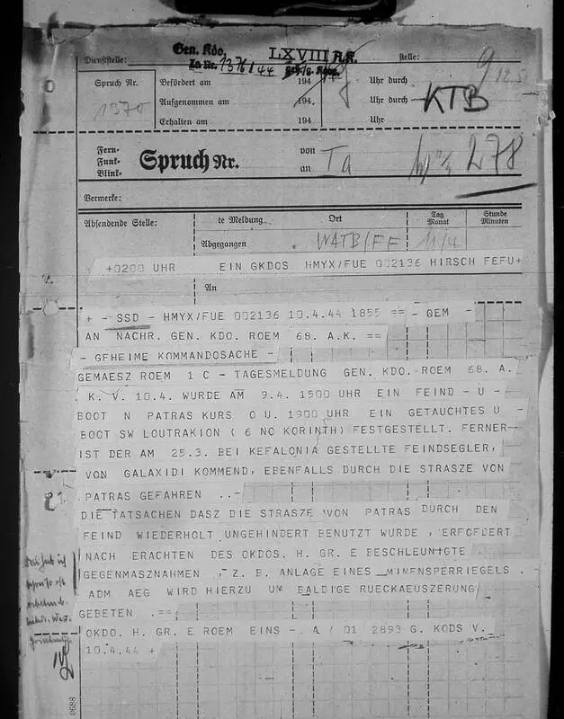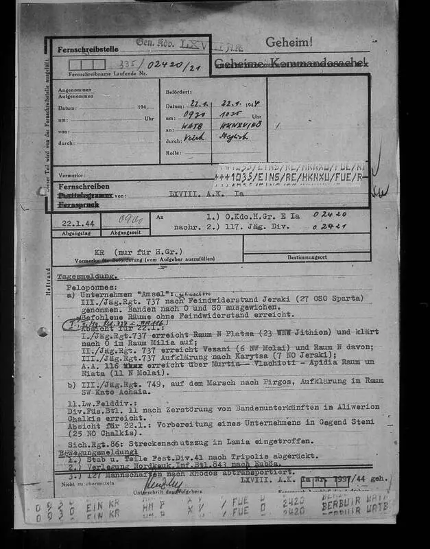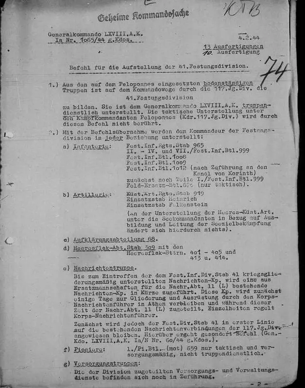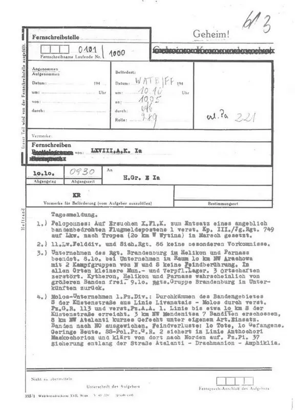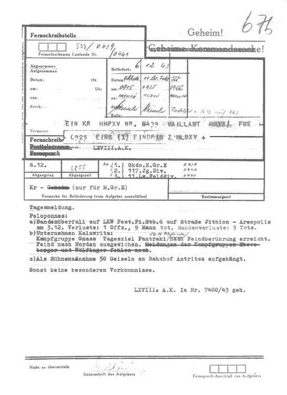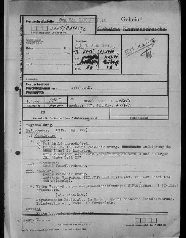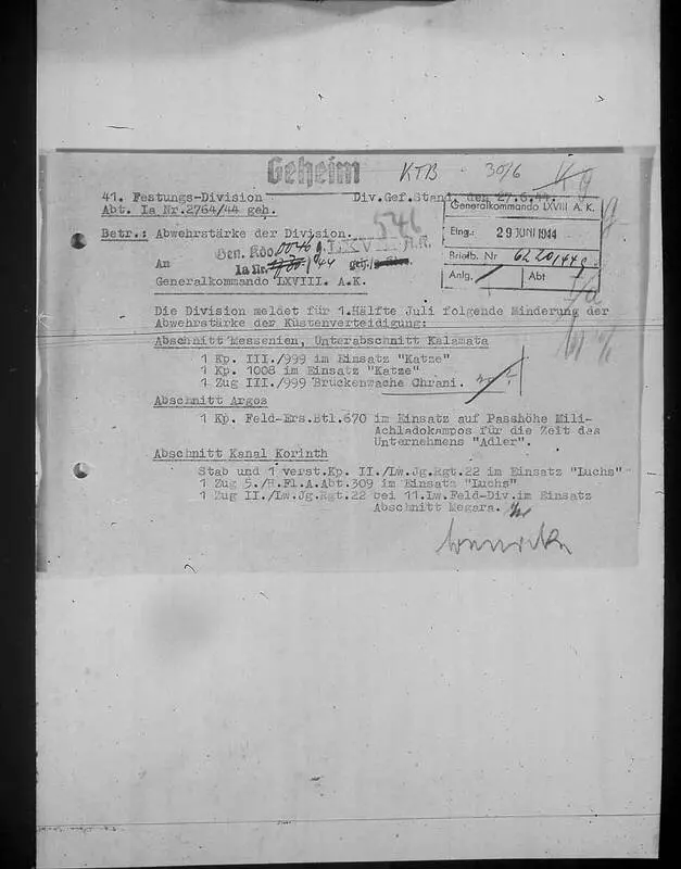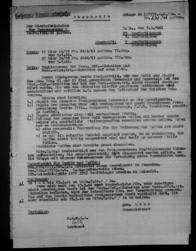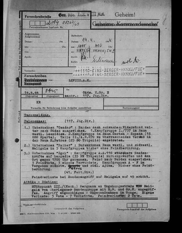 Αρχεία ηλεκτρονικής μορφής που αφορούν τα Γερμανικά Αρχεία του 68ου Σώματος Στρατού και της 117 Μεραρχίας Καταδρομών και της Διοίκησης Ναυτικού Πελοποννήσου.