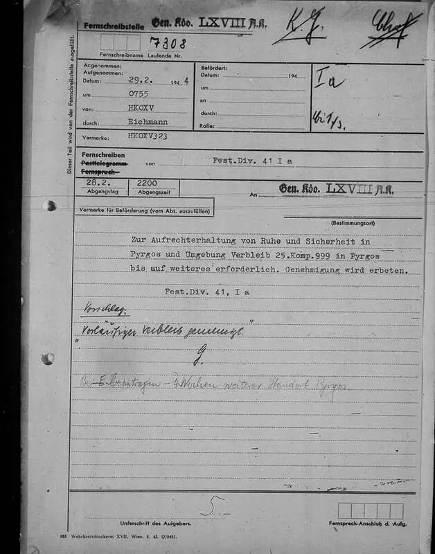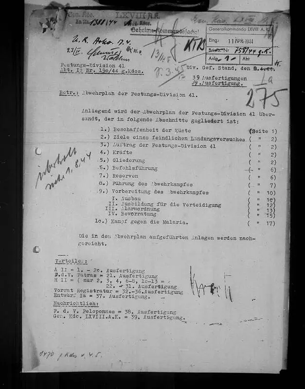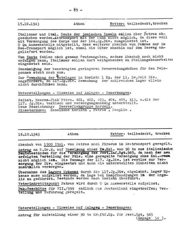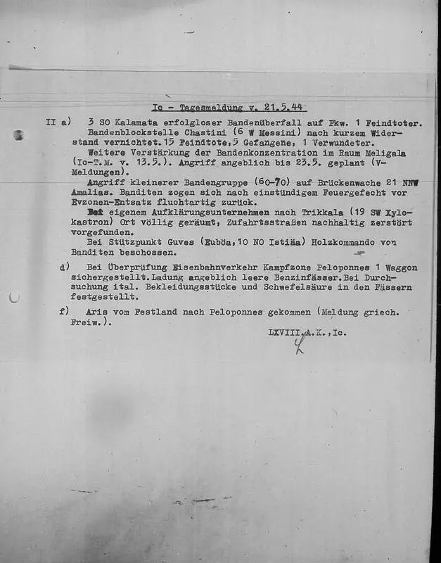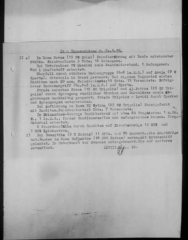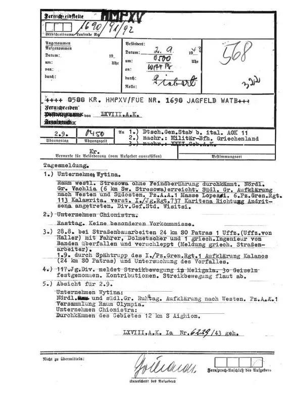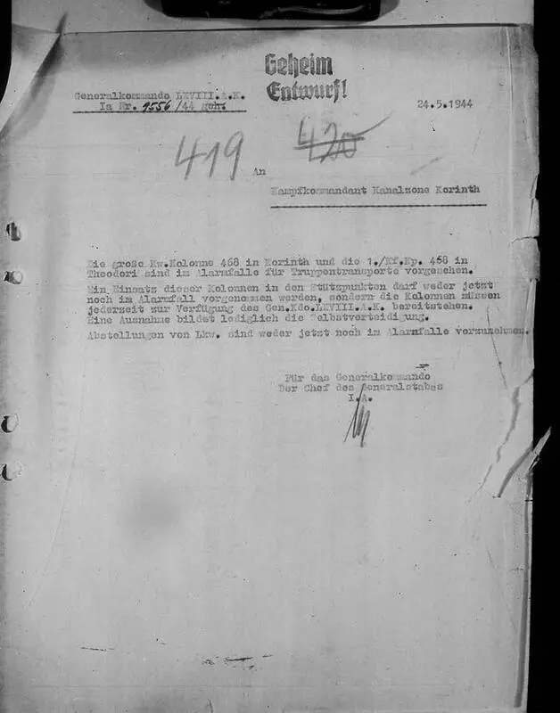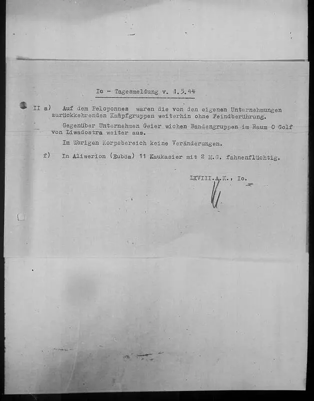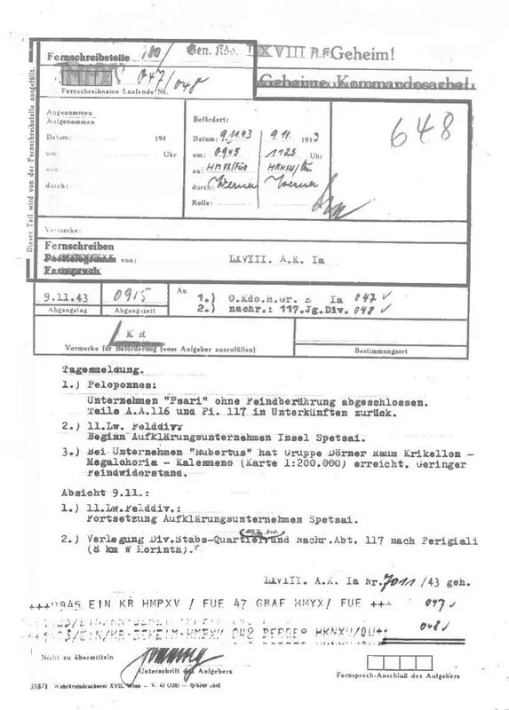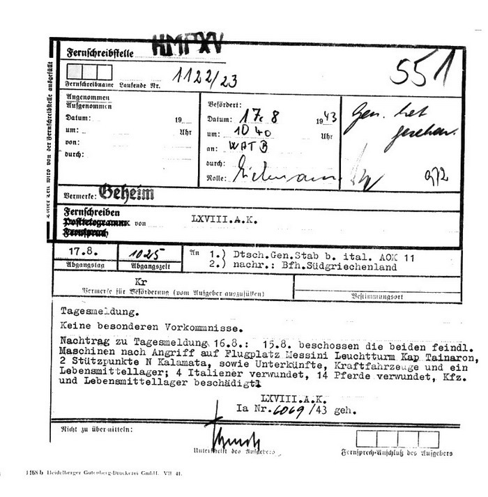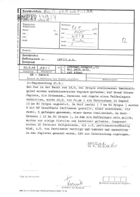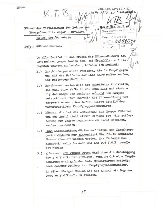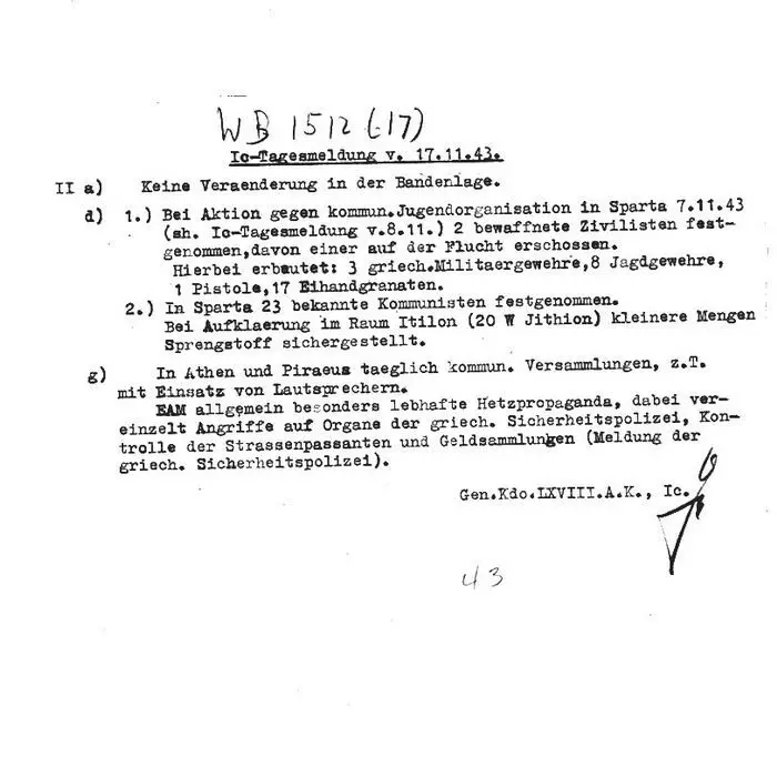 Αρχεία ηλεκτρονικής μορφής που αφορούν τα Γερμανικά Αρχεία του 68ου Σώματος Στρατού και της 117 Μεραρχίας Καταδρομών και της Διοίκησης Ναυτικού Πελοποννήσου.