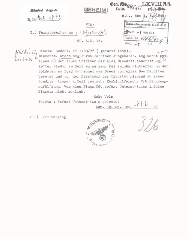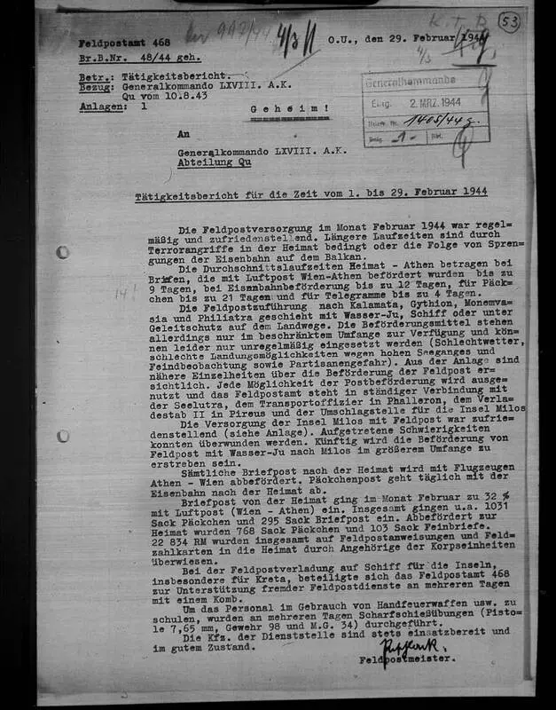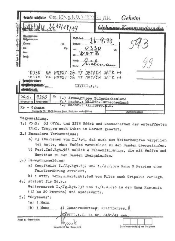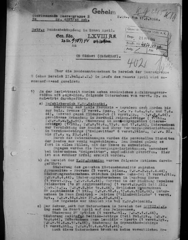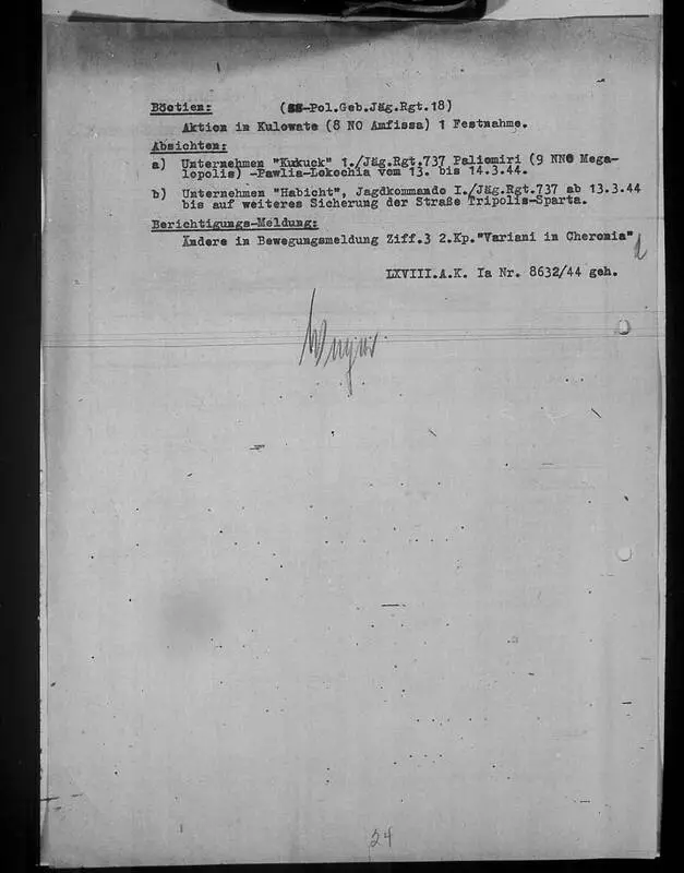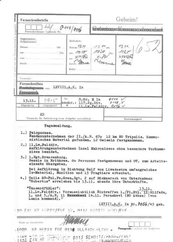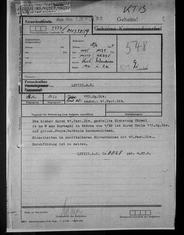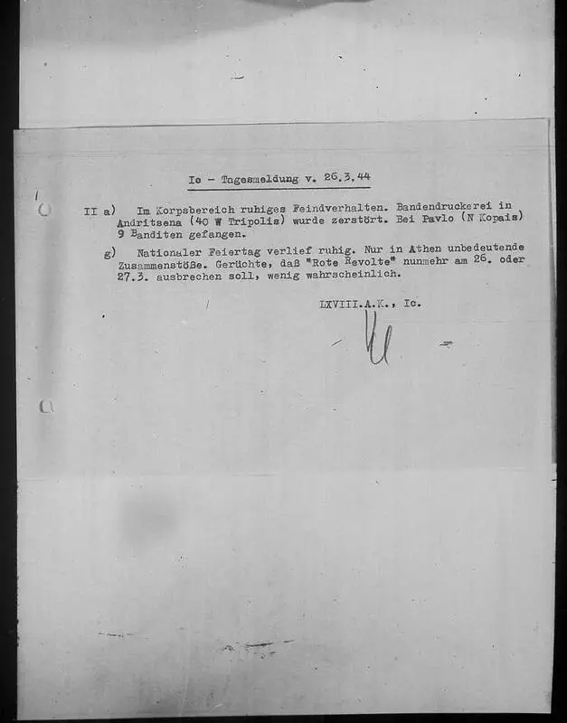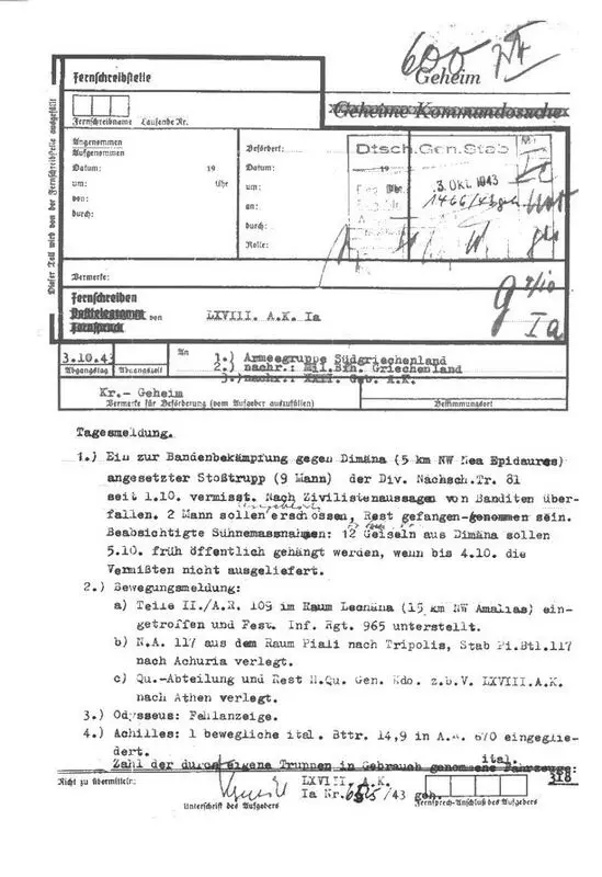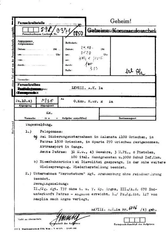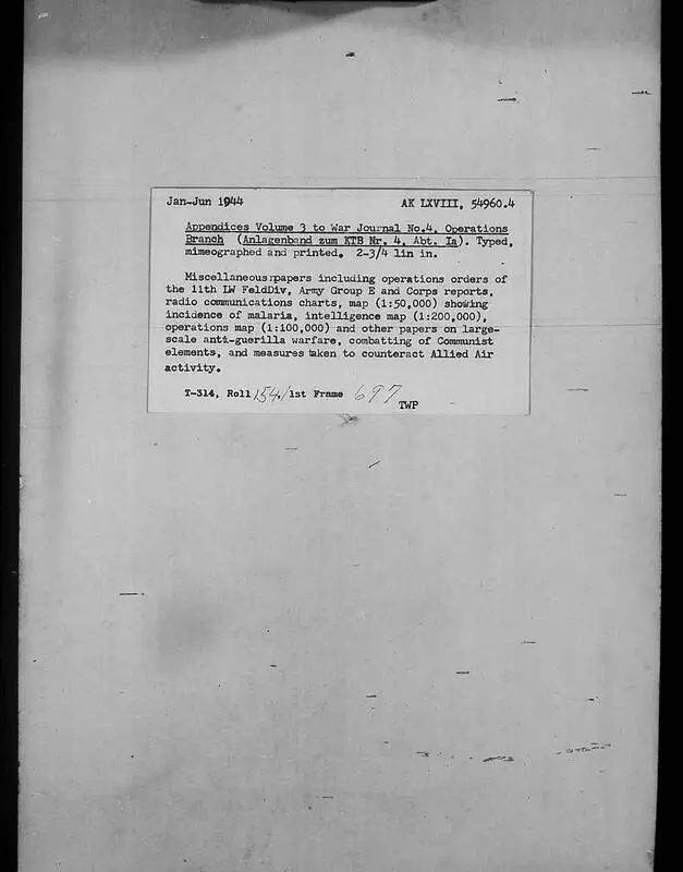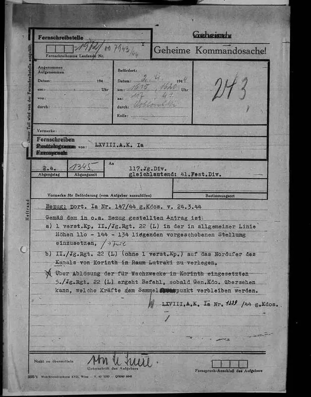 Αρχεία ηλεκτρονικής μορφής που αφορούν τα Γερμανικά Αρχεία του 68ου Σώματος Στρατού και της 117 Μεραρχίας Καταδρομών και της Διοίκησης Ναυτικού Πελοποννήσου.