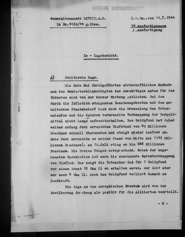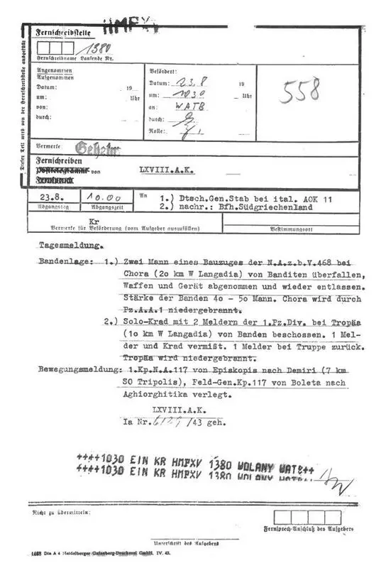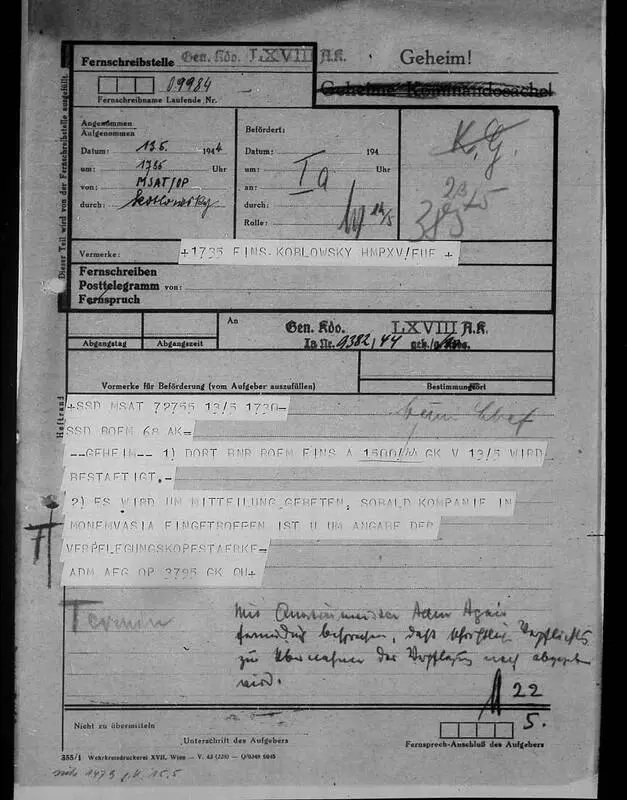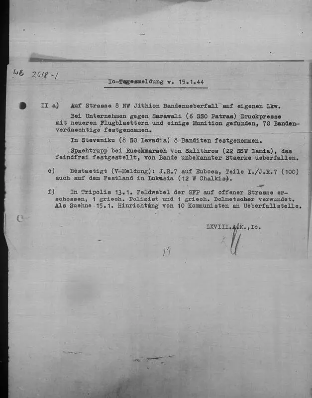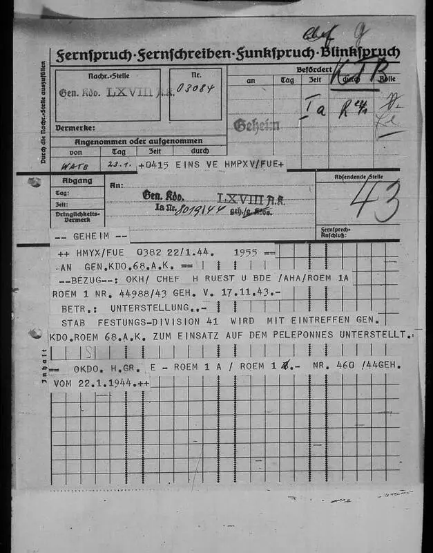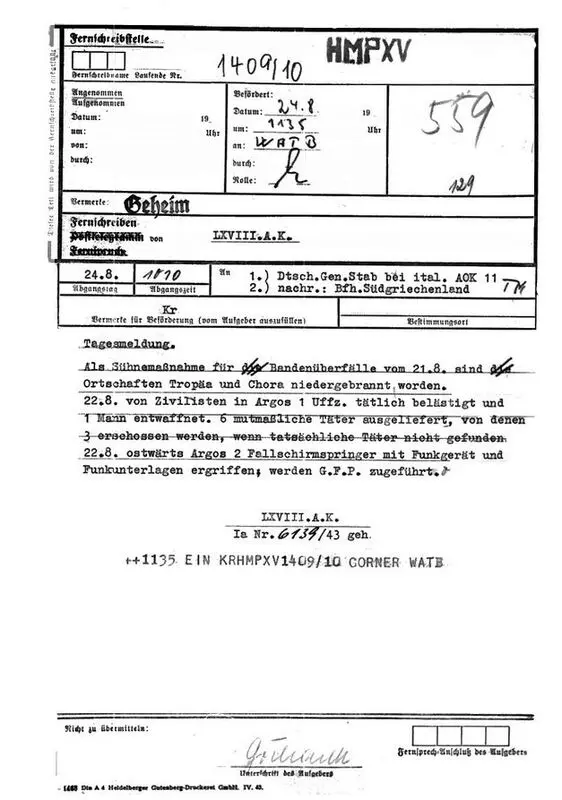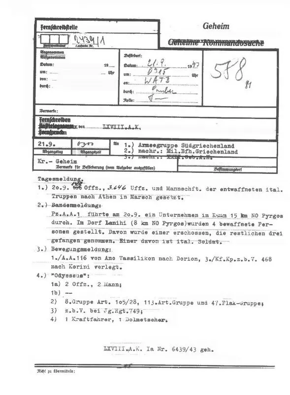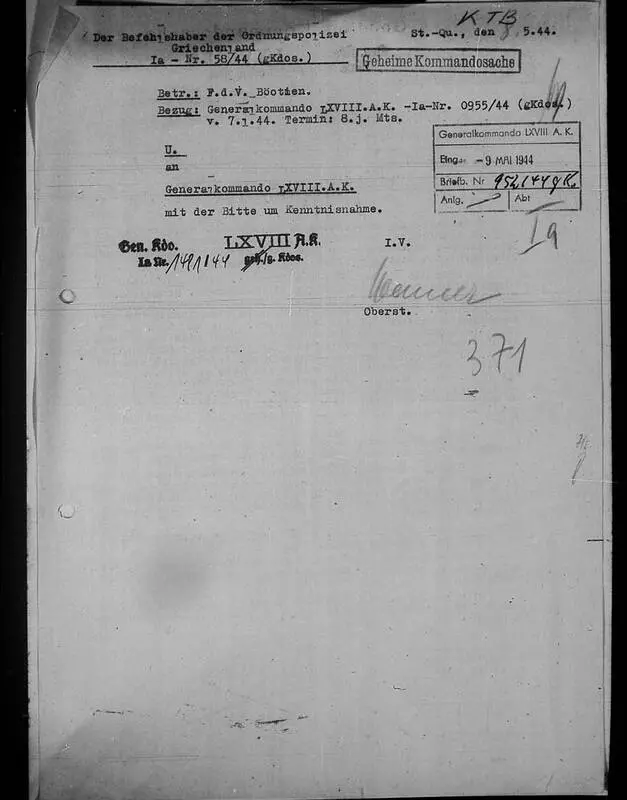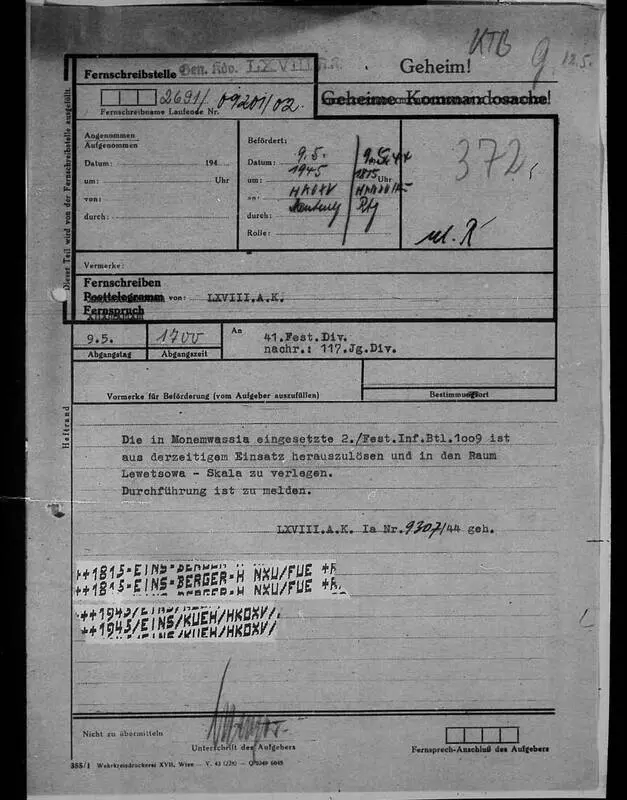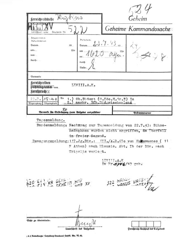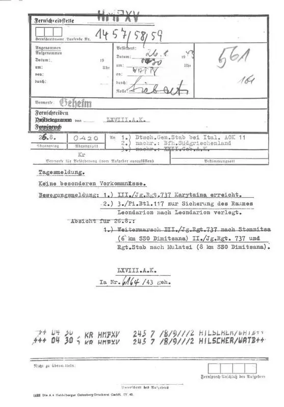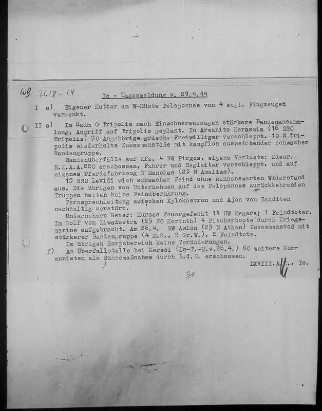 Αρχεία ηλεκτρονικής μορφής που αφορούν τα Γερμανικά Αρχεία του 68ου Σώματος Στρατού και της 117 Μεραρχίας Καταδρομών και της Διοίκησης Ναυτικού Πελοποννήσου.