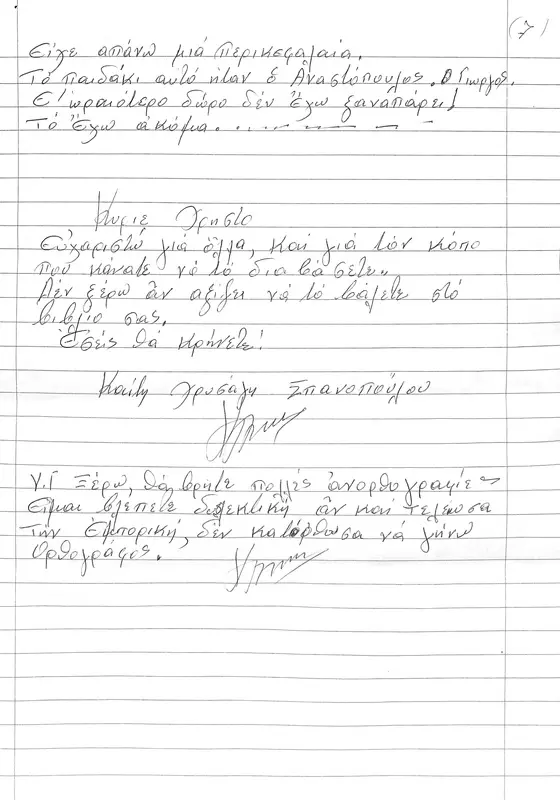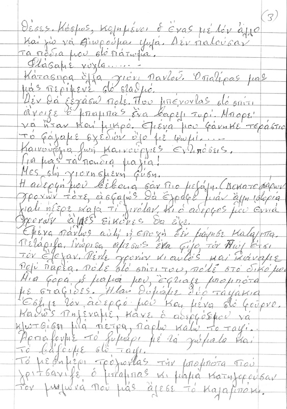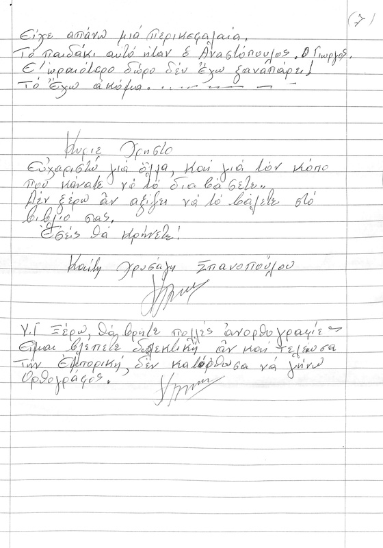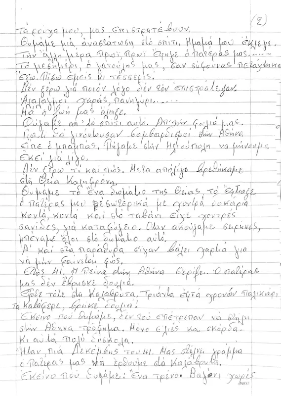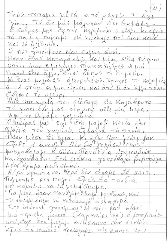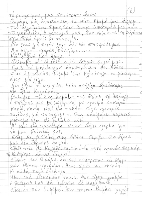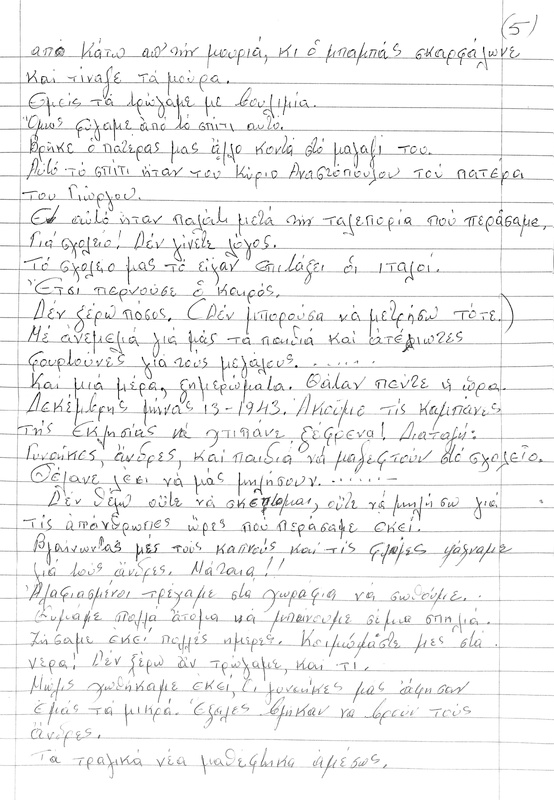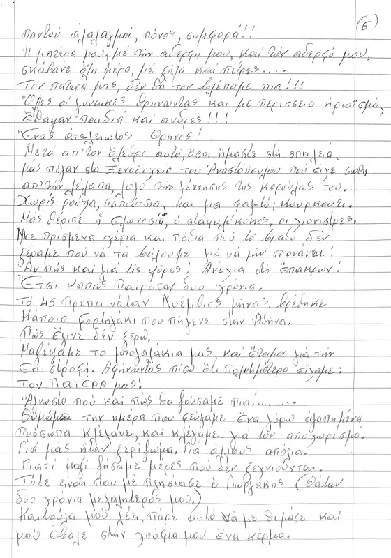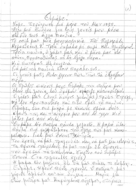 Χειρόγραφο έγγραφο 7 σελίδων που είναι βιωματική αφήγηση της Καίτης Χρυσαγη- Σπανοπούλου