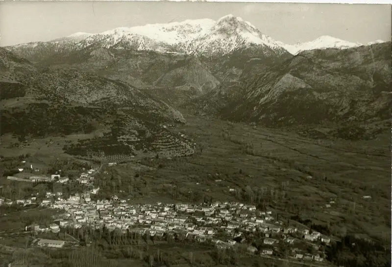 Το χωριό της Κλειτορίας Καλαβρύτων, στο βάθος διακρίνεται ο χιονισμένος Χελμός.