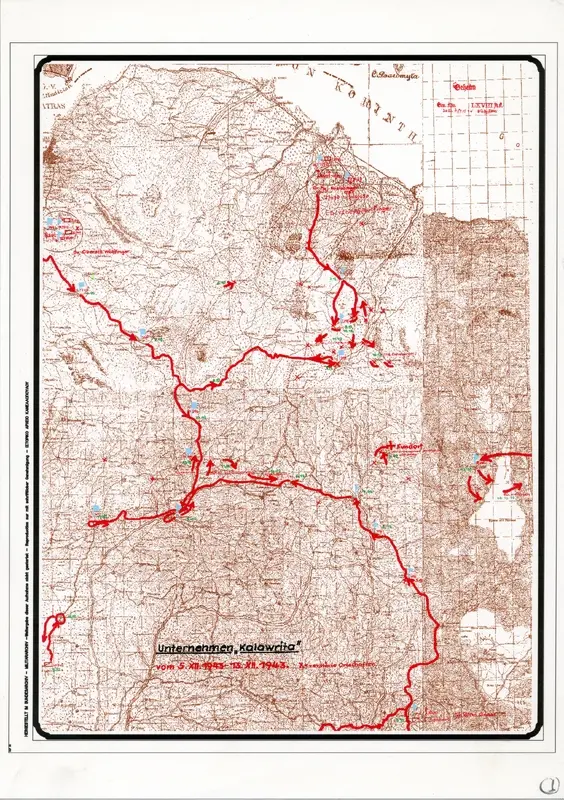 Αντίγραφο του επιτελικού χάρτη της Γερμανικής Στρατιωτικής Επιχείρησης με την ονομασία "Ειπχείρηση Καλάβρυτα".
